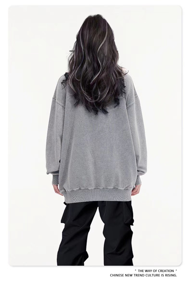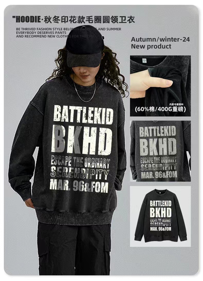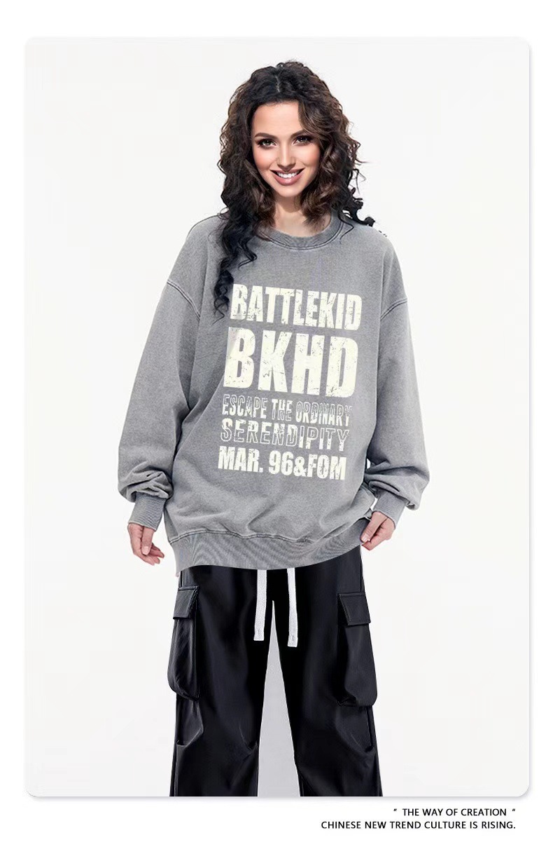 2024 letras de impresión camiseta de moda casual cuello redondo hombre y mujer chaqueta de manga larga abrigo suelto gran camiseta versátil