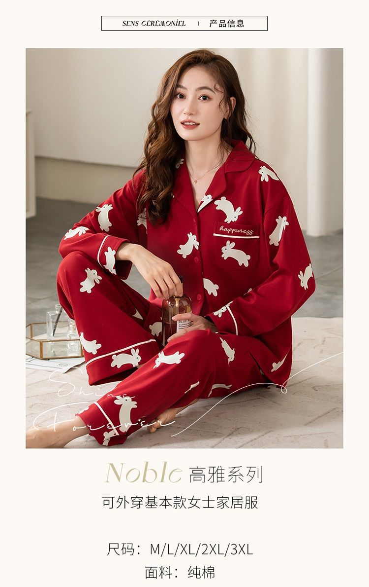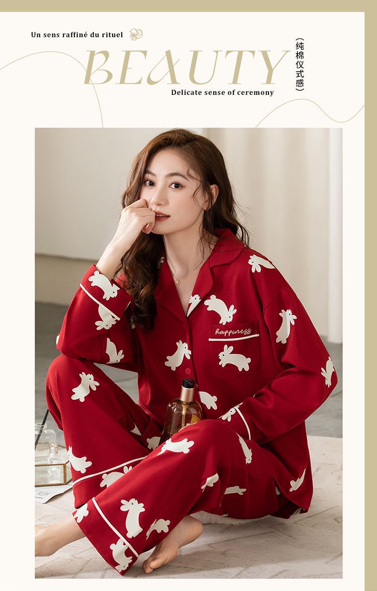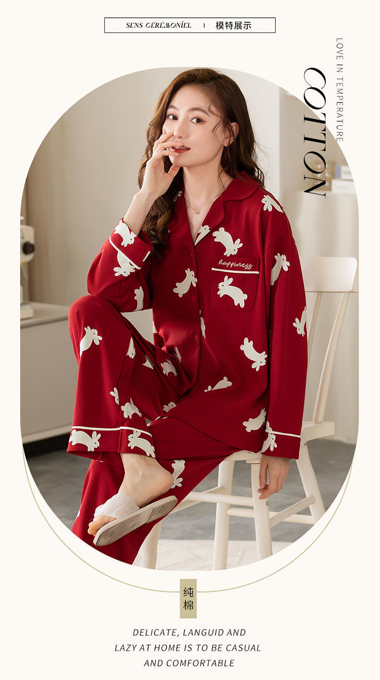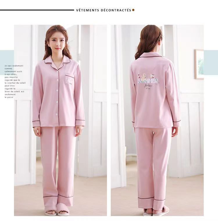 100% pijamas de algodón de primavera y otoño de las mujeres pantalones de manga larga con almohadilla en el pecho conjunto de dos piezas de otoño e invierno Delgado desgaste del hogar al aire libre
