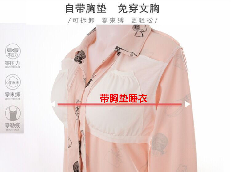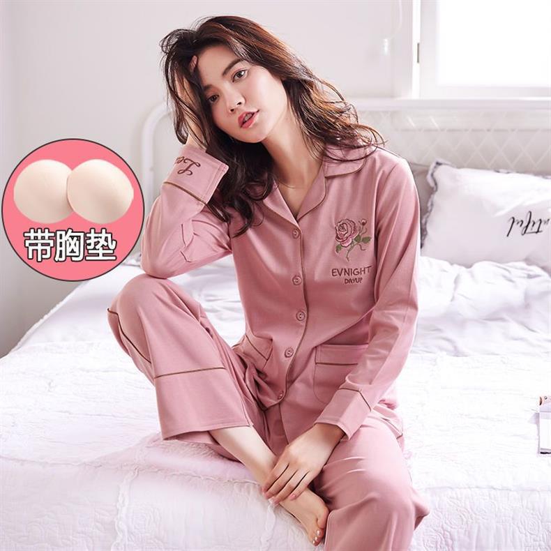 Pijama de algodón 100% para mujer con almohadilla en el pecho Primavera y otoño pantalones de manga larga cardigan Delgado traje suelto otoño ropa para el hogar verano