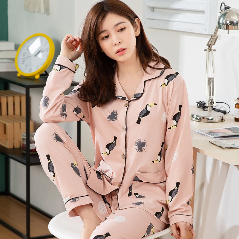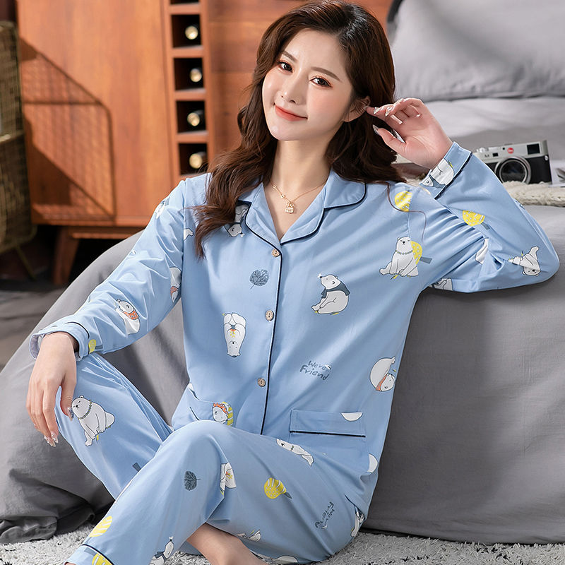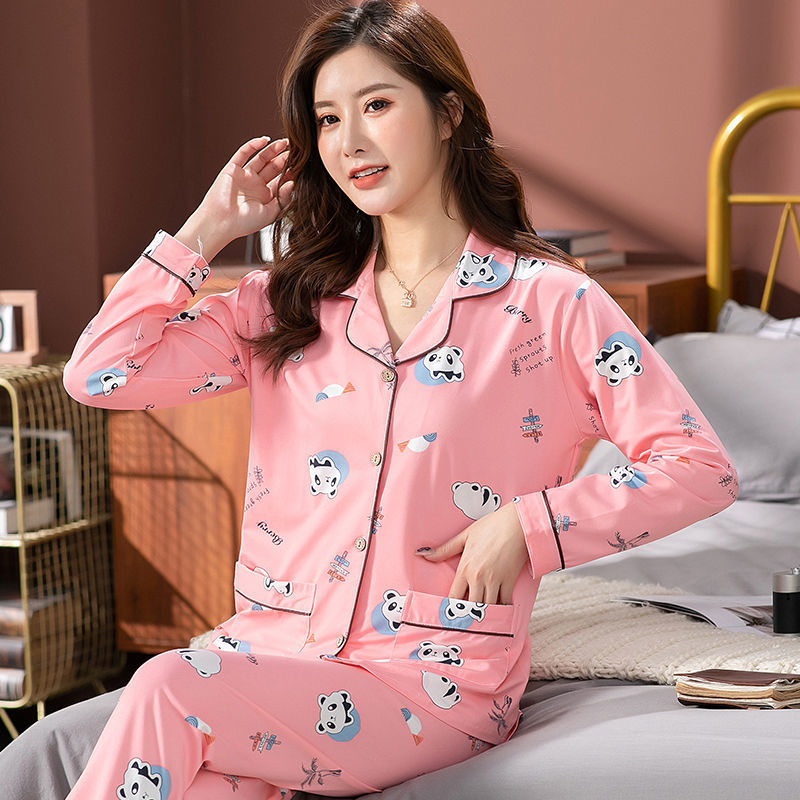 100% algodón más el tamaño de los pijamas de las mujeres Primavera, Otoño e Invierno manga larga suelta de mediana edad y joven confinamiento desgaste del hogar traje de verano