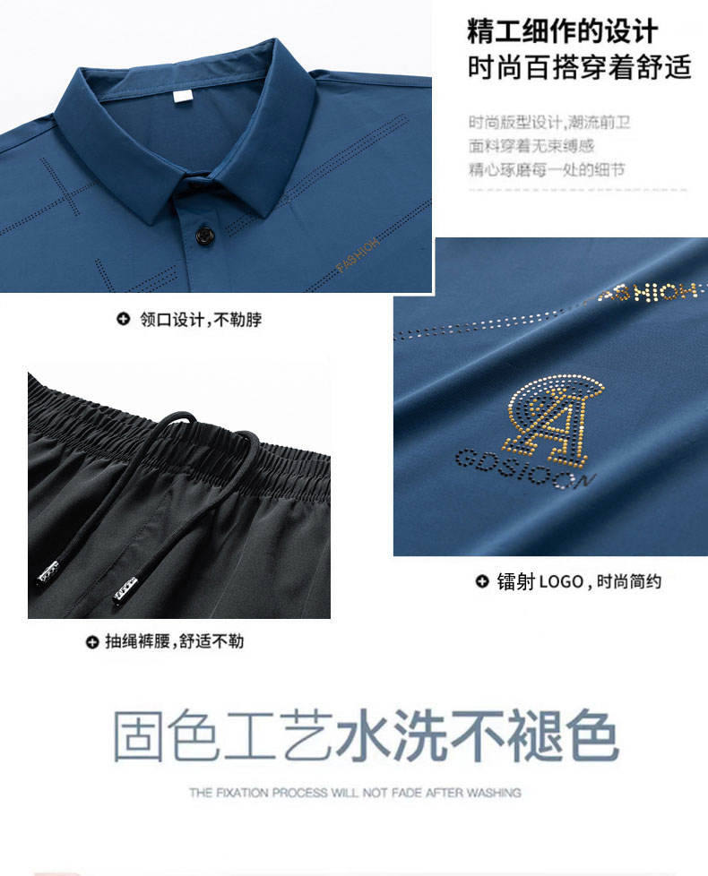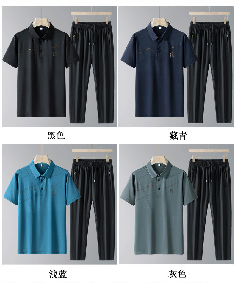 Traje casual de seda de hielo de verano para papá Camisa POLO de manga corta delgada de verano para hombres Traje de dos piezas de deportes de secado rápido para personas mayores y de mediana edad