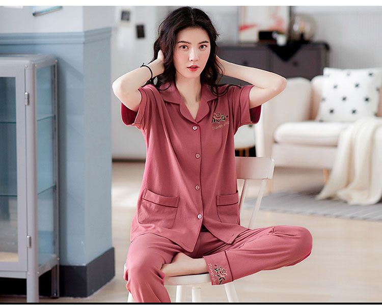 100% pijamas de algodón de las mujeres de verano de mediana edad y ancianos pantalones de manga corta de las mujeres de talla grande verano ancianos ropa de casa traje