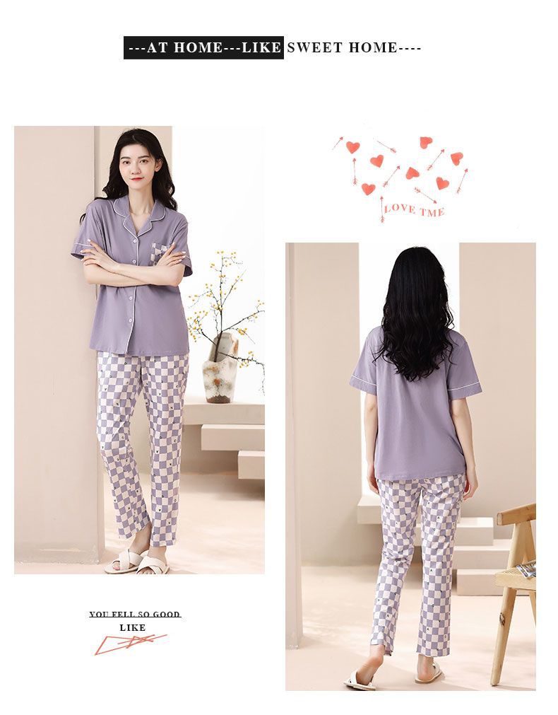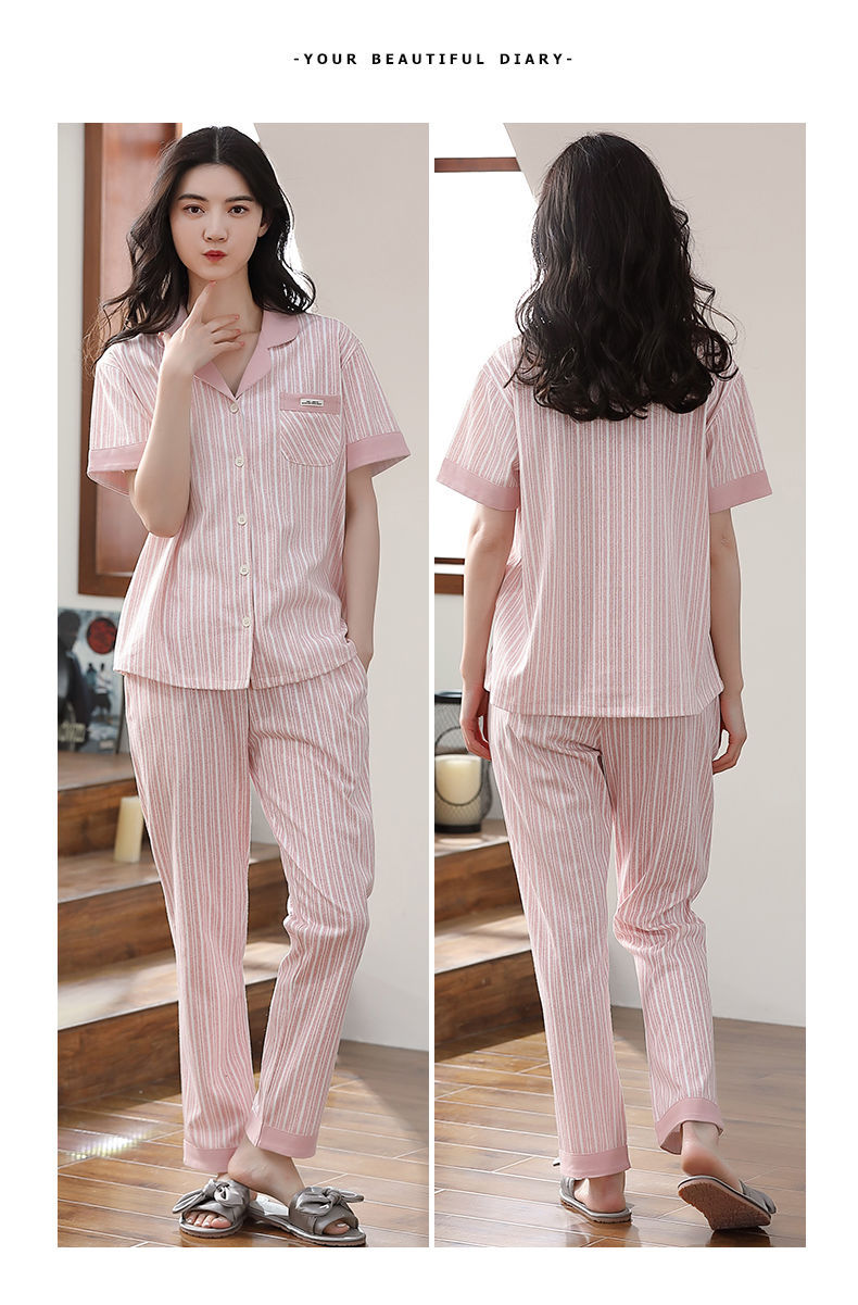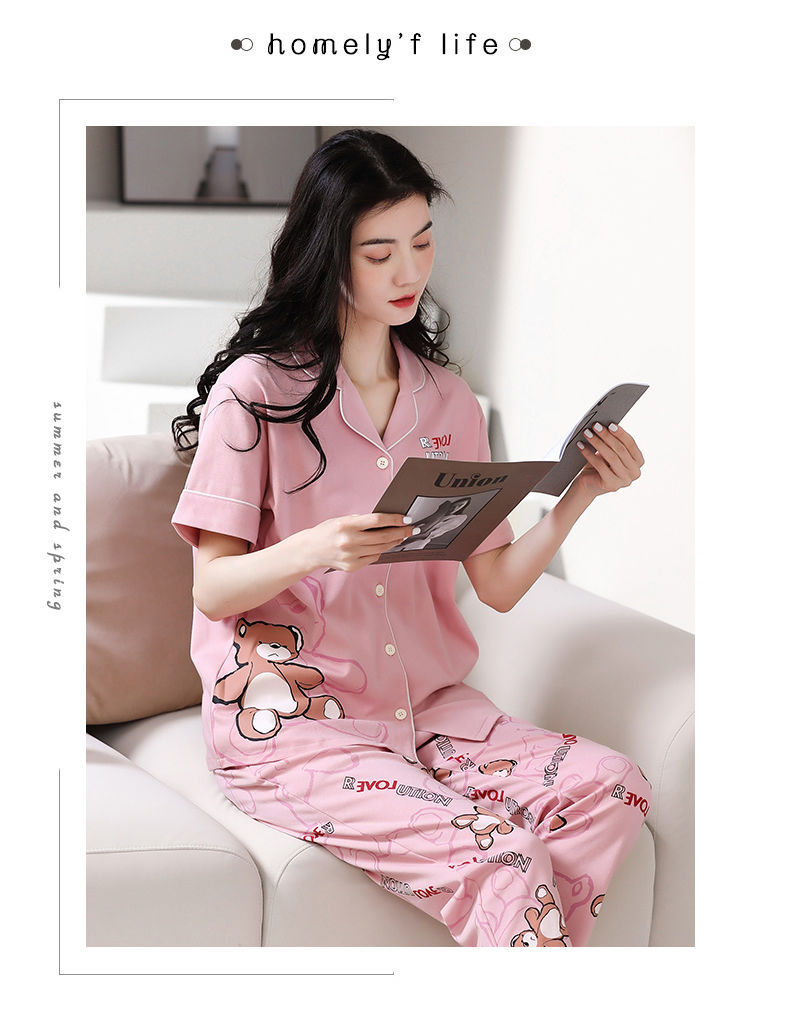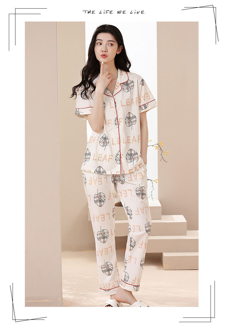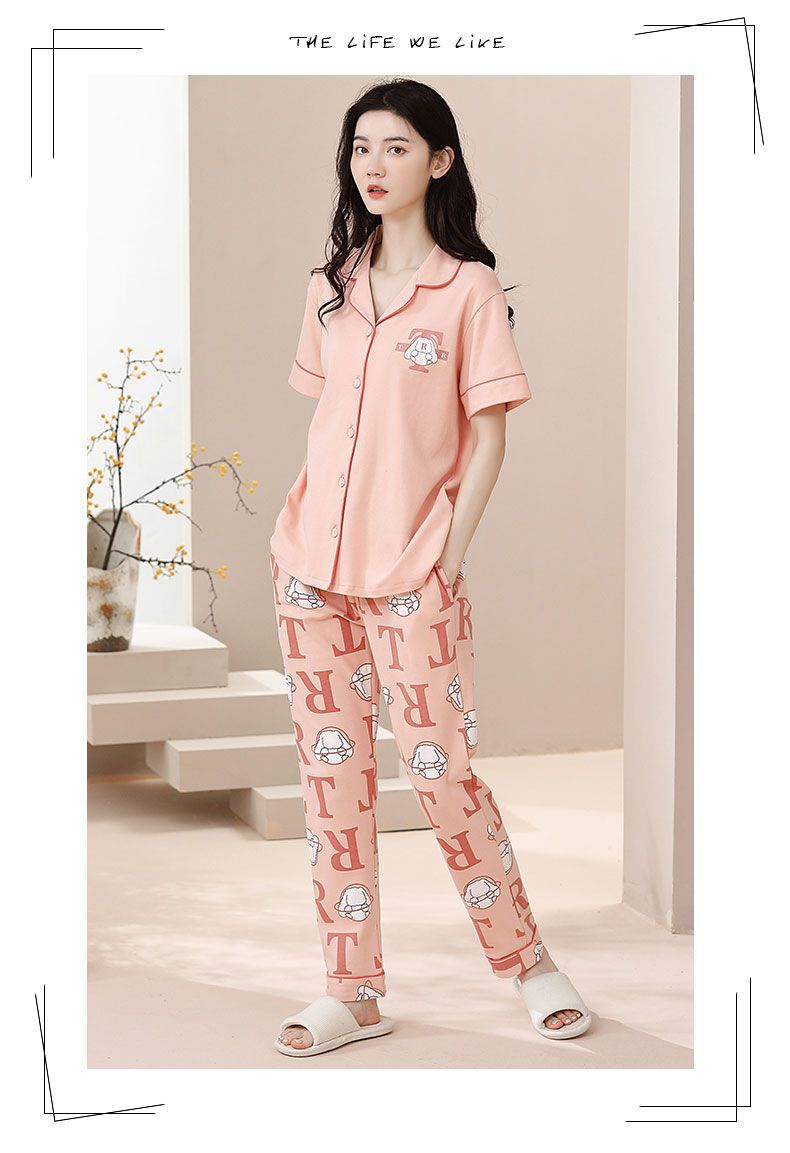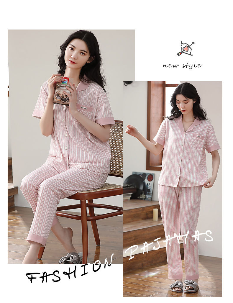 Nuevos pijamas de verano de las mujeres pantalones de manga corta 100% algodón Delgado solapa casual de las mujeres mamá ropa de casa traje de verano