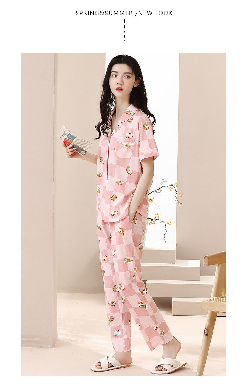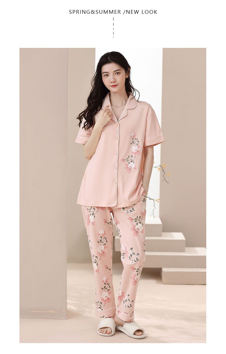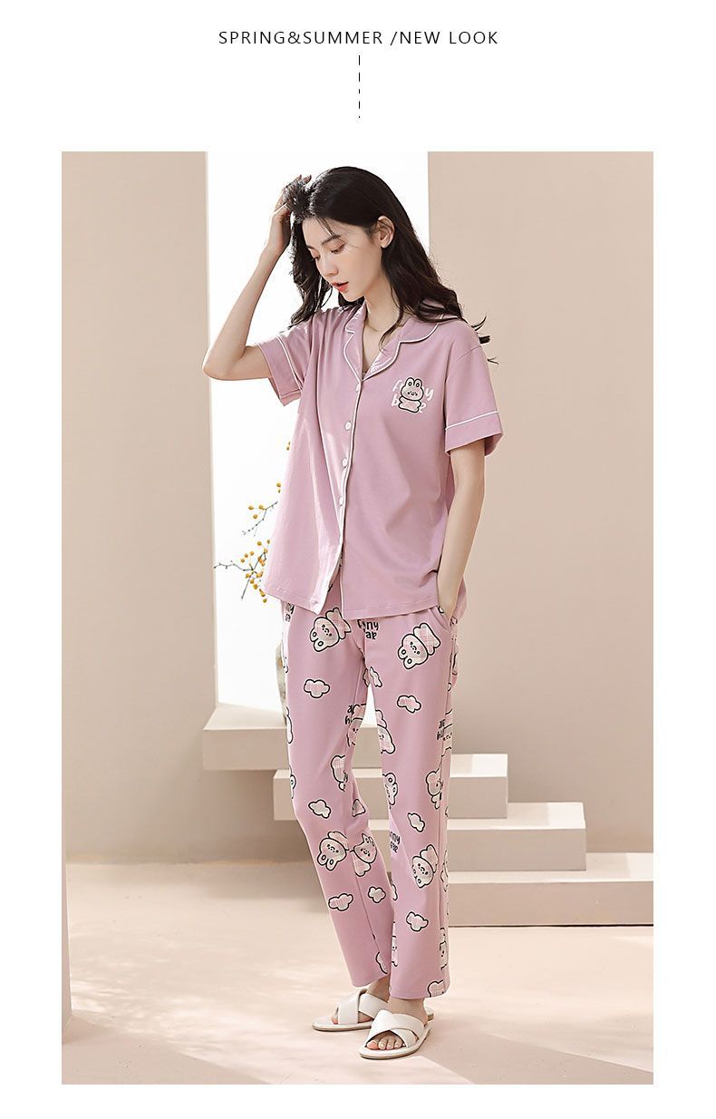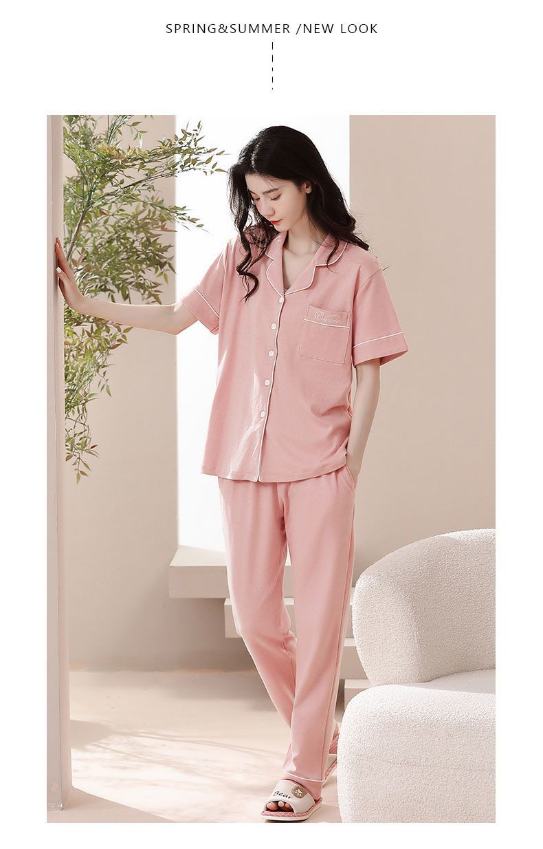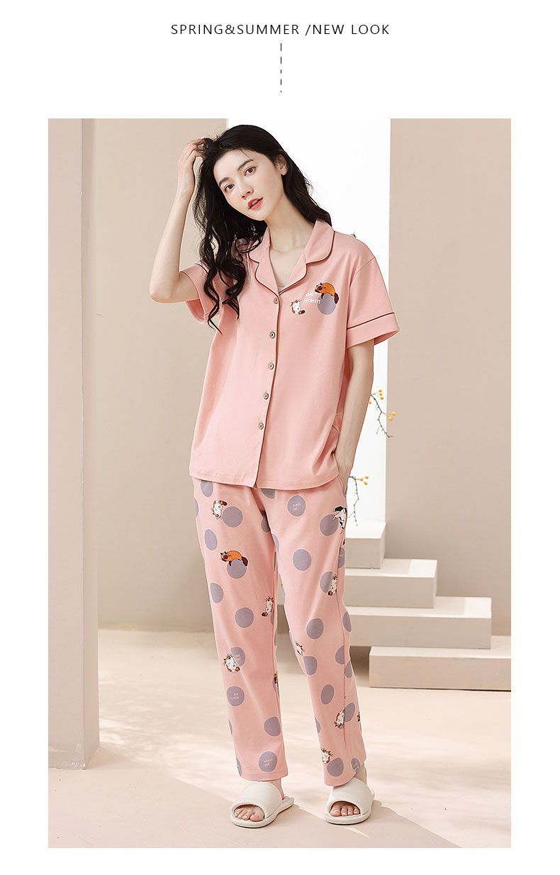 Nuevos pijamas de verano de las mujeres pantalones de manga corta 100% algodón Delgado solapa casual de las mujeres mamá ropa de casa traje de verano