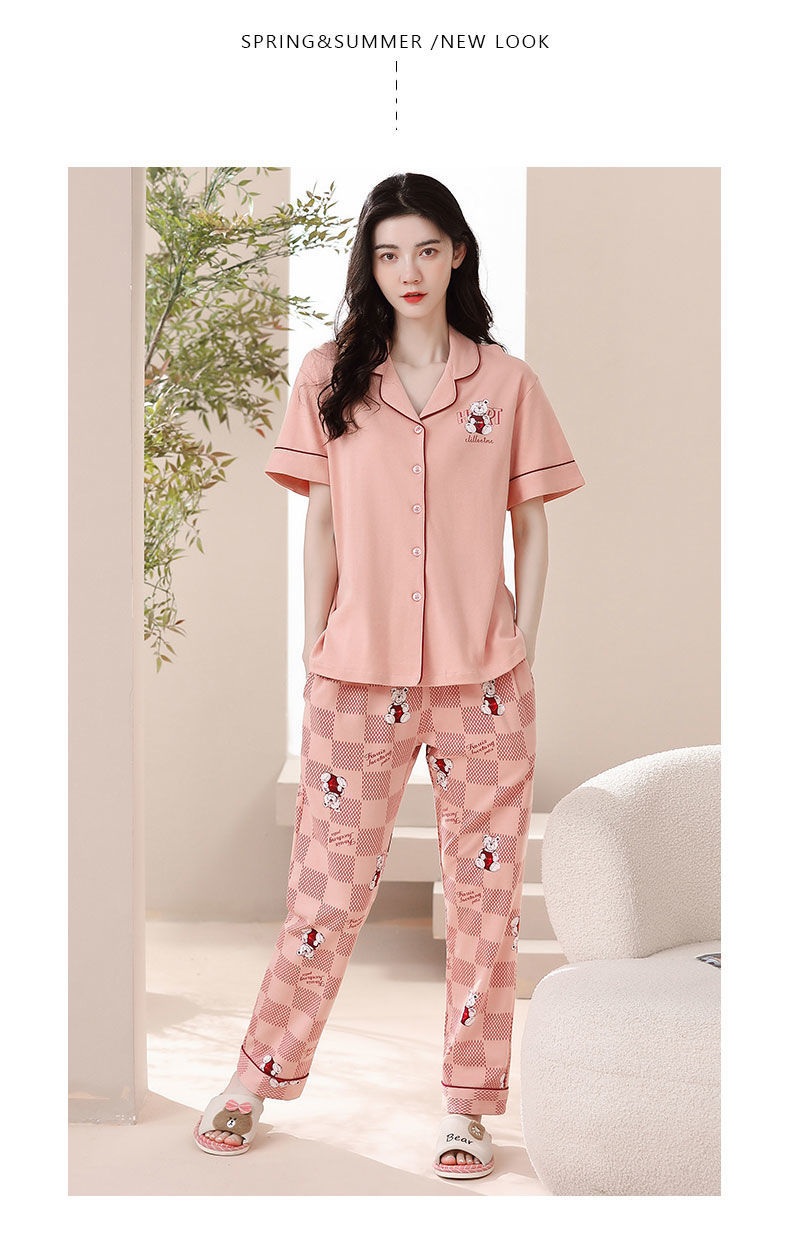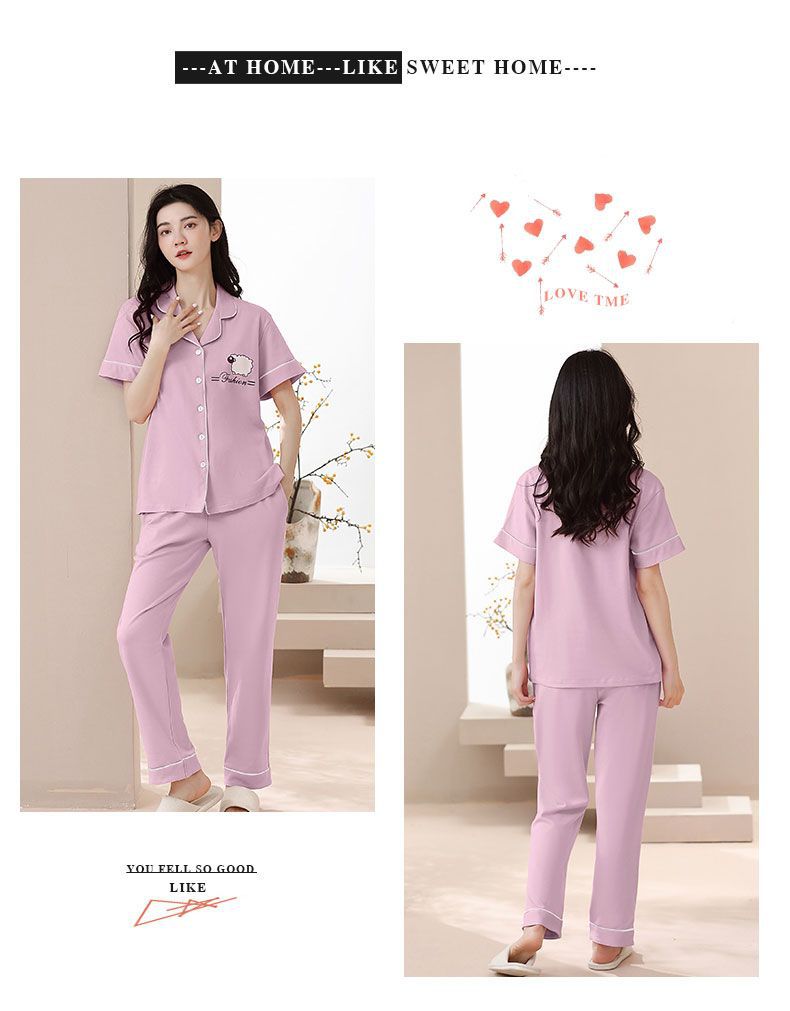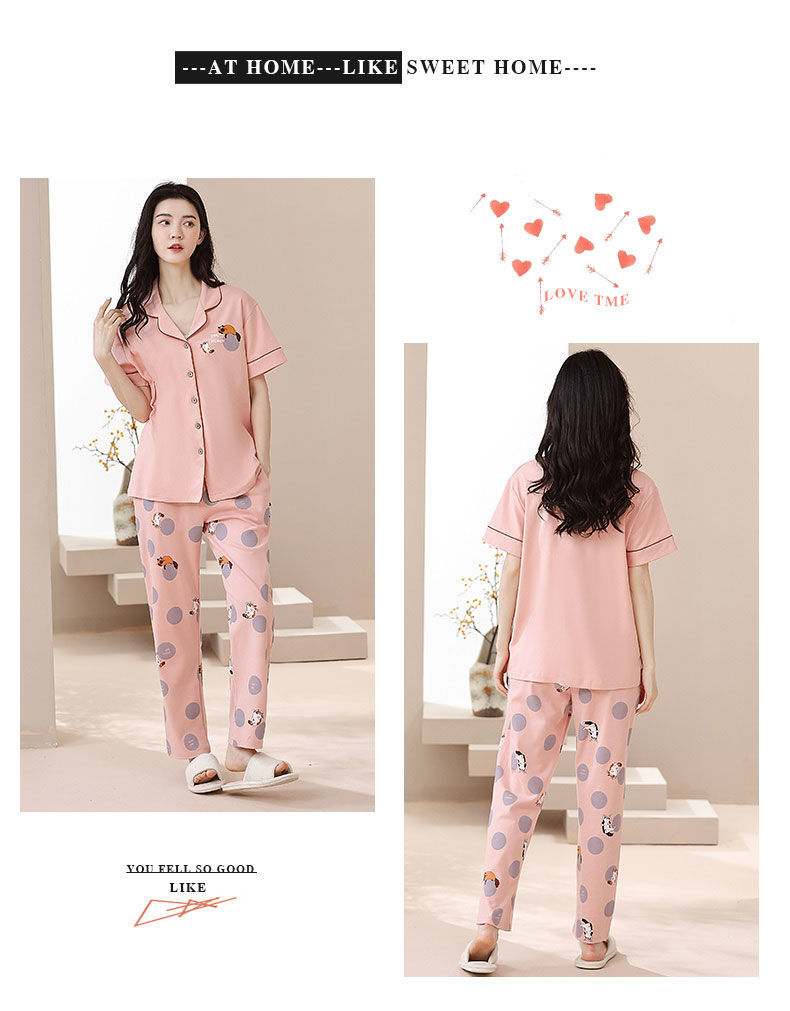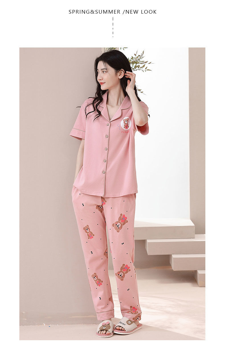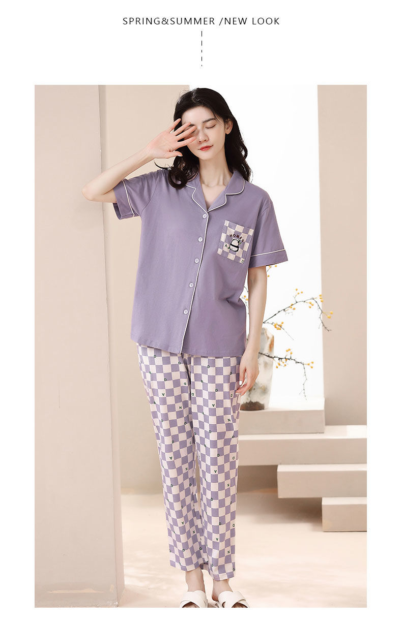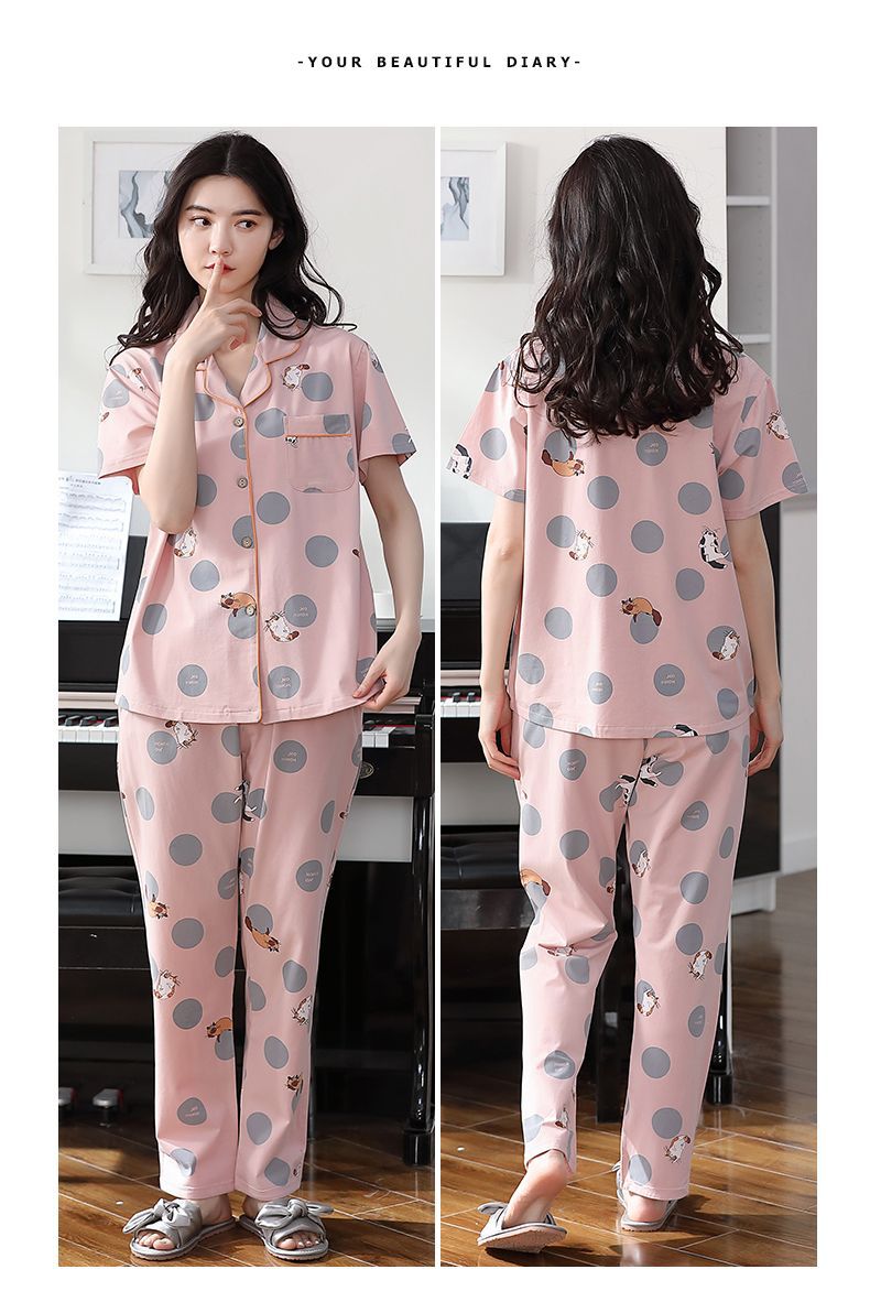 Nuevos pijamas de verano de las mujeres pantalones de manga corta 100% algodón Delgado solapa casual de las mujeres mamá ropa de casa traje de verano