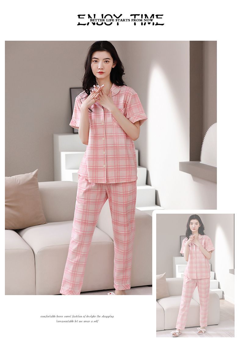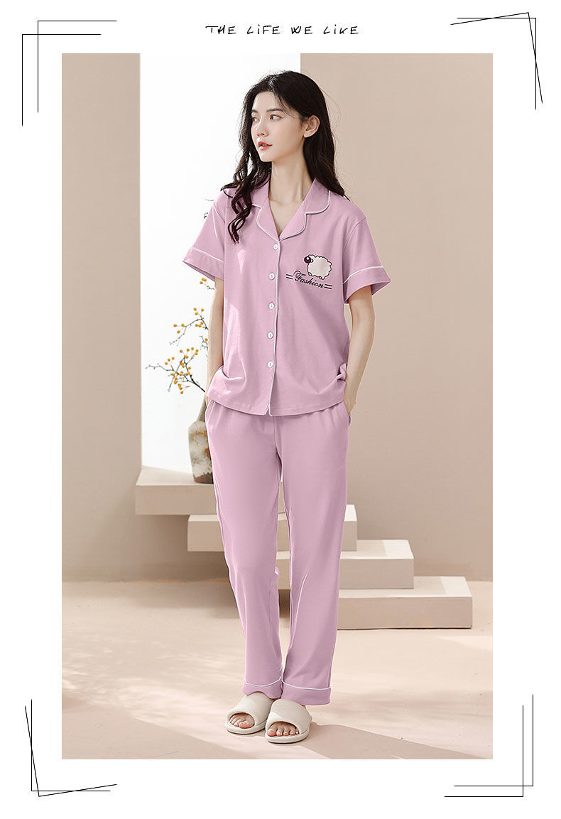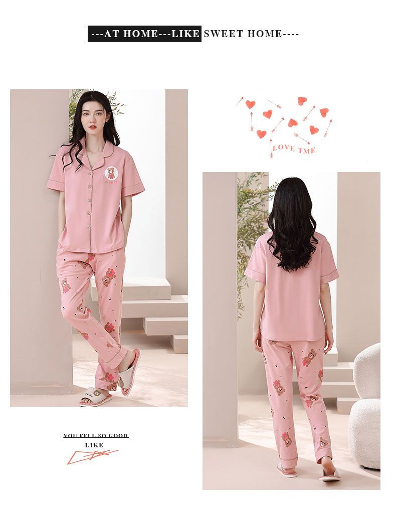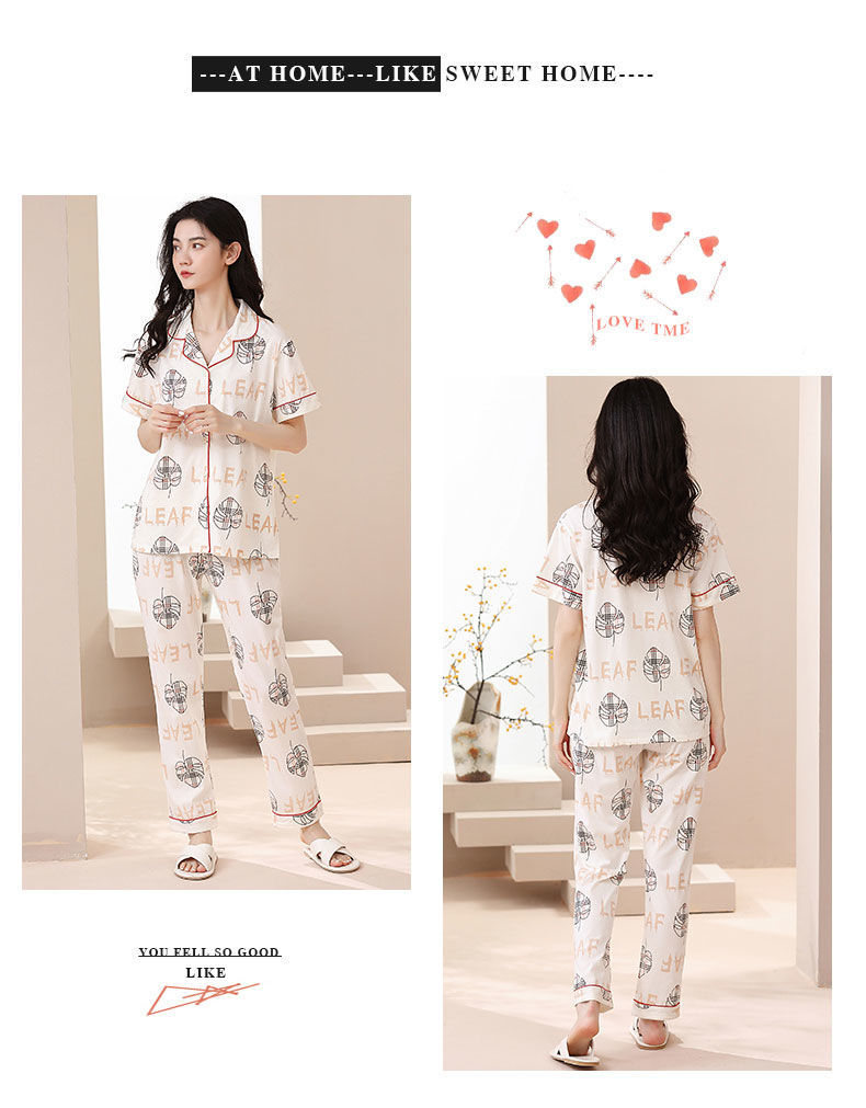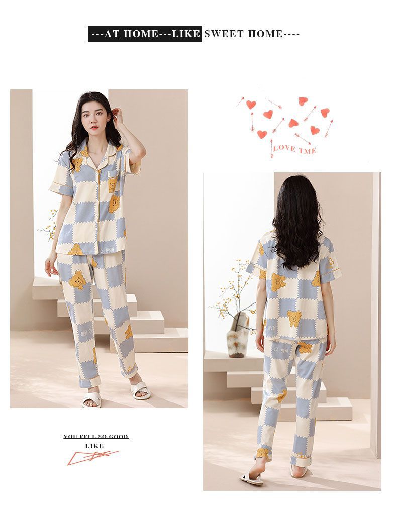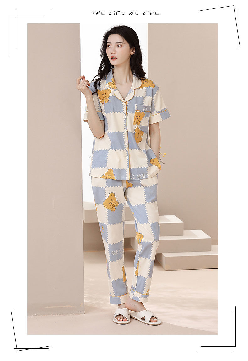 Nuevos pijamas de verano de las mujeres pantalones de manga corta 100% algodón Delgado solapa casual de las mujeres mamá ropa de casa traje de verano