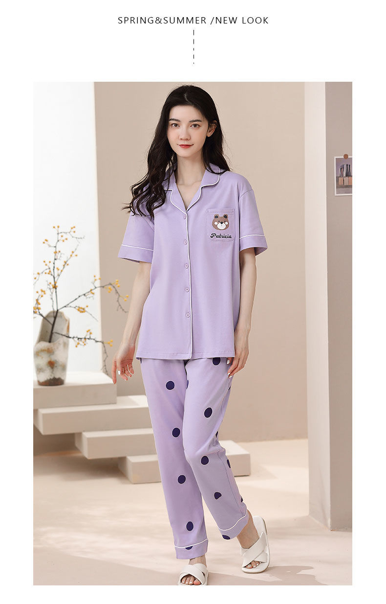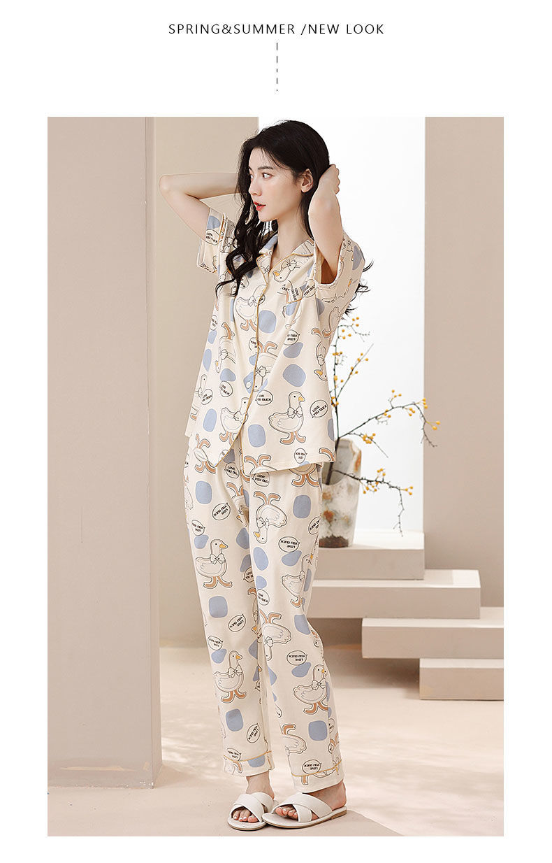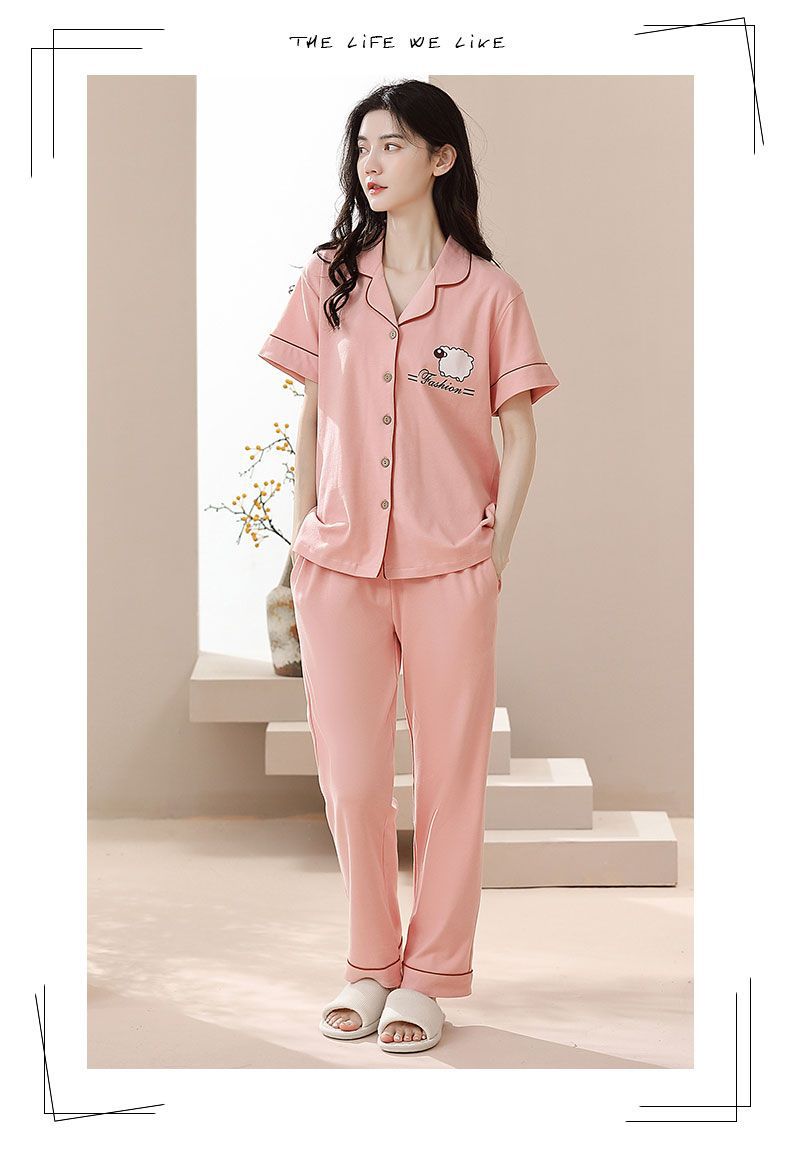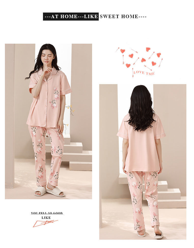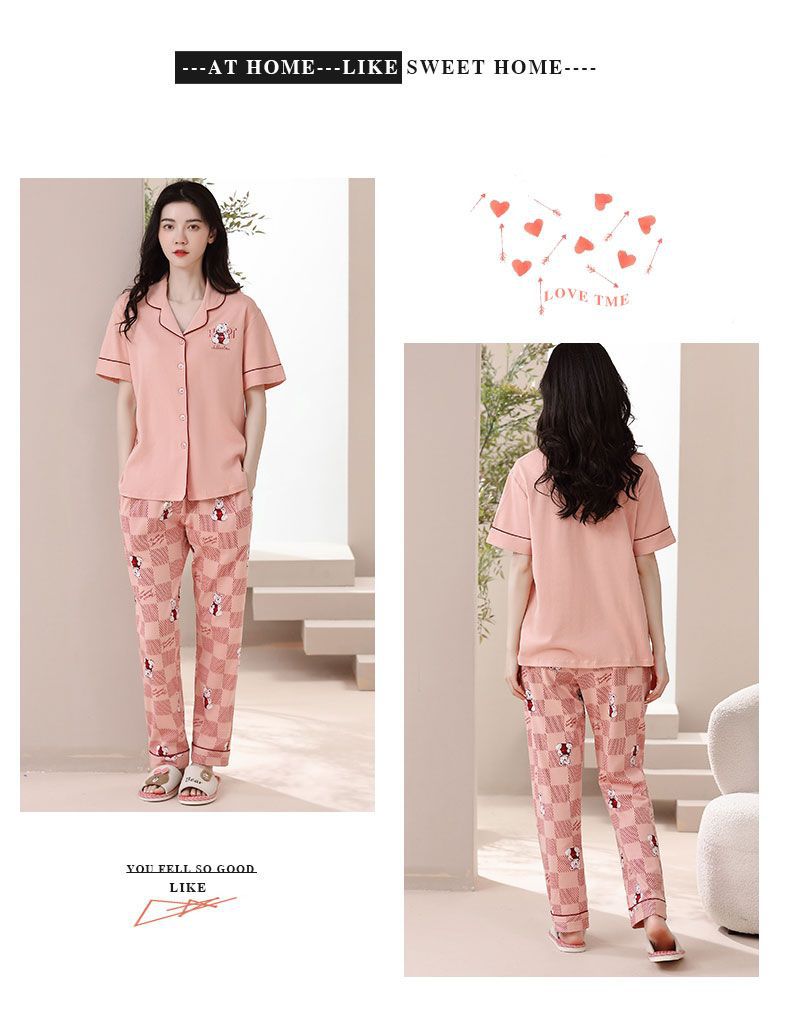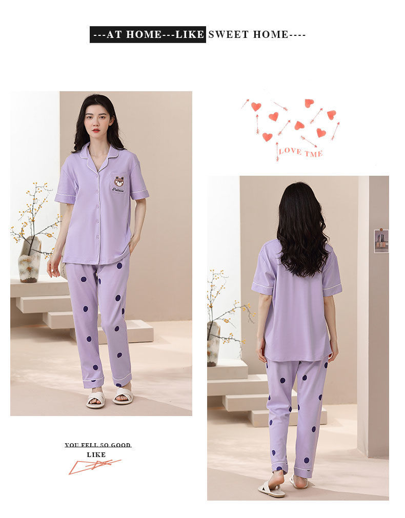 Nuevos pijamas de verano de las mujeres pantalones de manga corta 100% algodón Delgado solapa casual de las mujeres mamá ropa de casa traje de verano