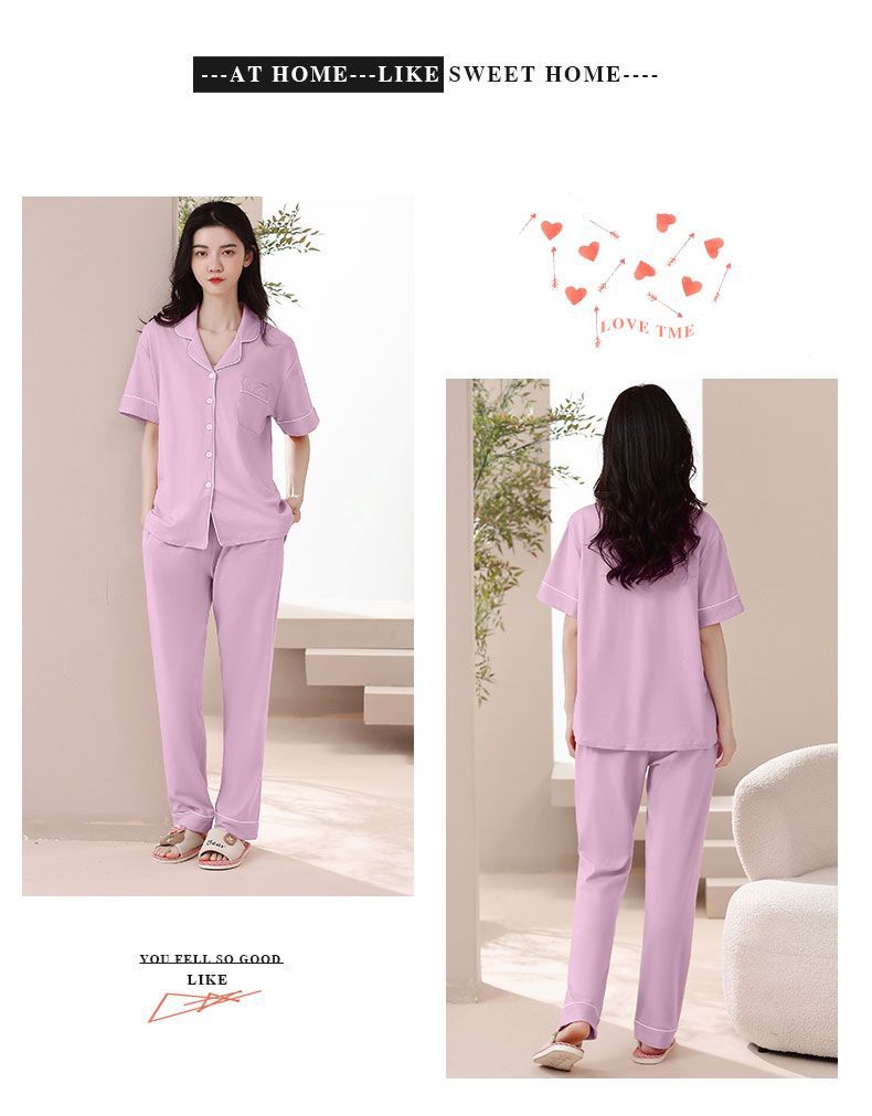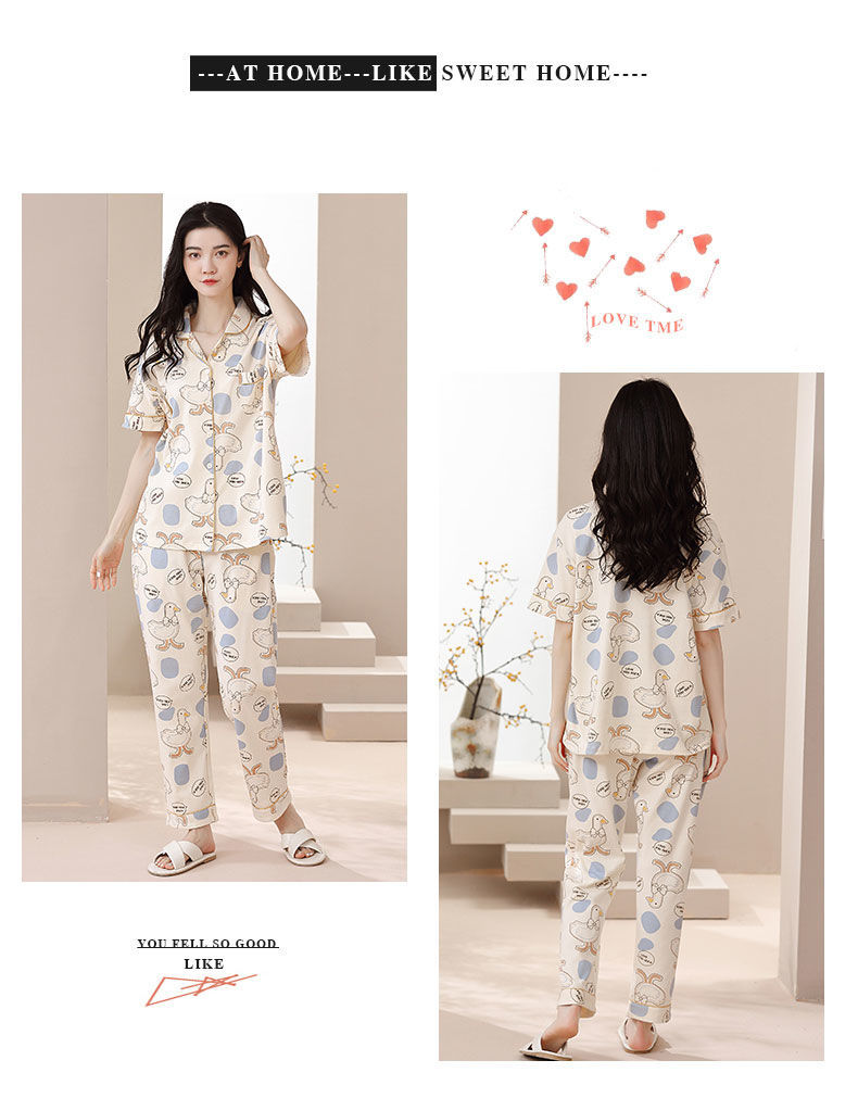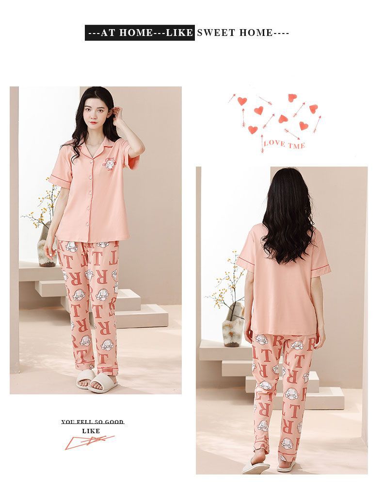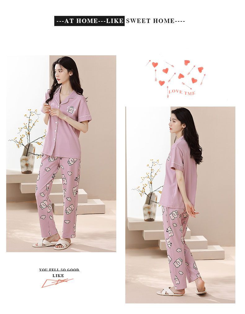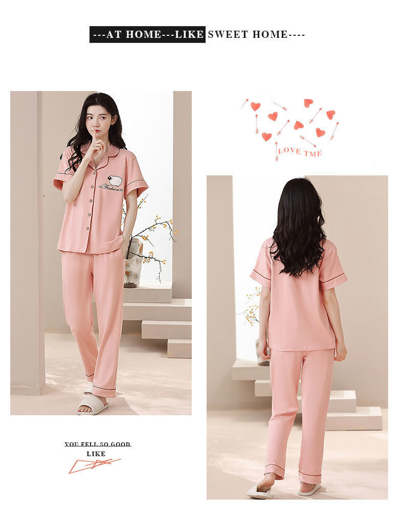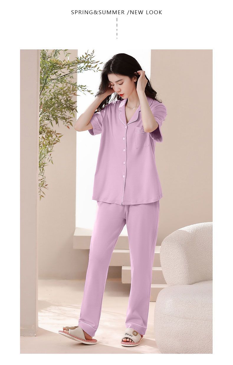 Nuevos pijamas de verano de las mujeres pantalones de manga corta 100% algodón Delgado solapa casual de las mujeres mamá ropa de casa traje de verano