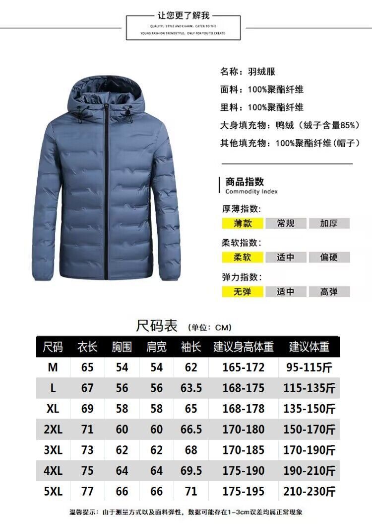 Chaqueta de plumón ligera chaqueta de plumón de color sólido simple a prueba de viento cálida chaqueta de plumón 85% pato blanco chaqueta de plumón para hombre al por mayor