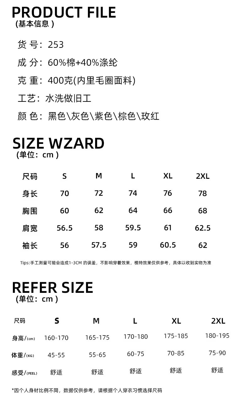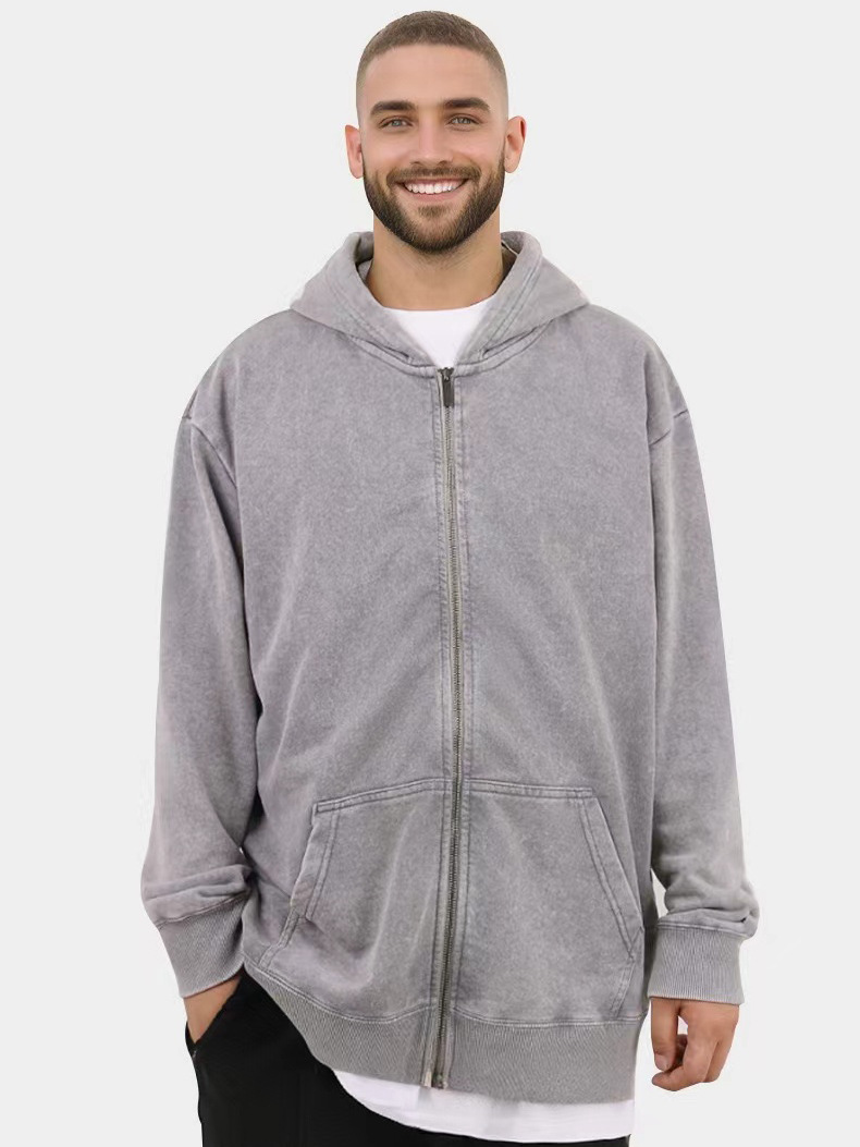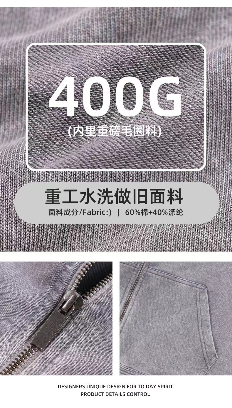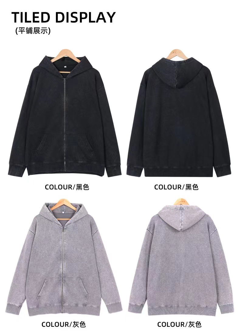 Los pesos estadounidenses de 400 gramos de lazo de cremallera chaqueta de hombre otoño y invierno lavado suelto hacer viejas hoodies pareja camisa con sombrera