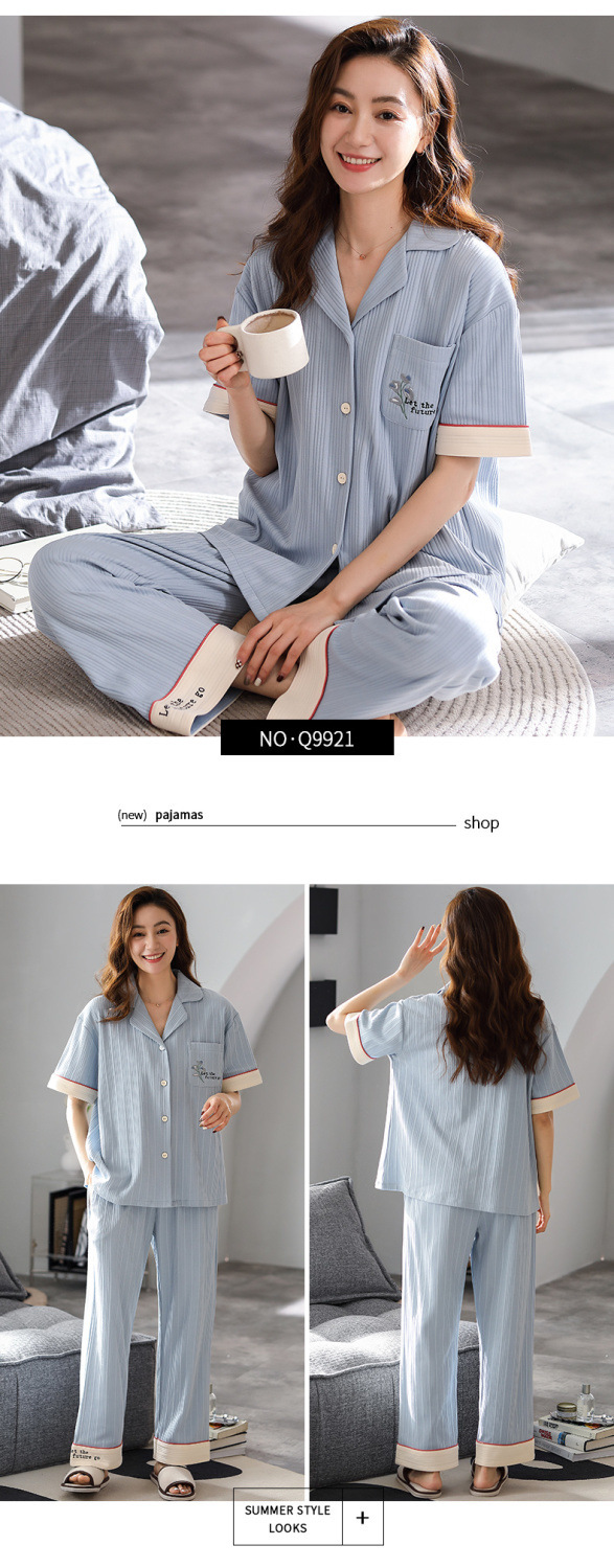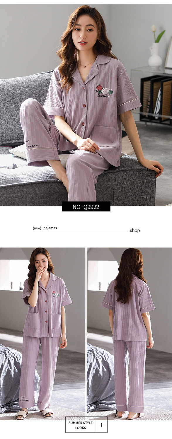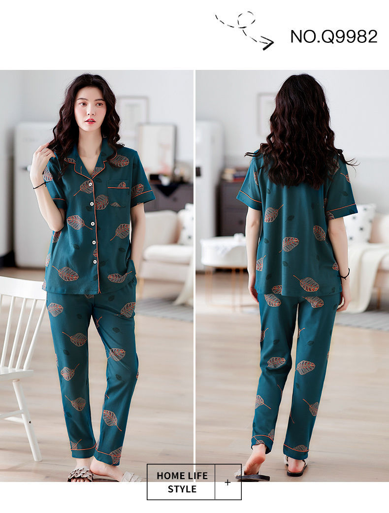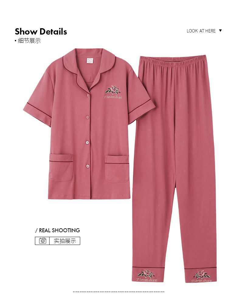Pijamas pantalones de manga corta de algodón de verano para mujer ropa para el hogar delgada madre de mediana edad traje suelto de talla grande