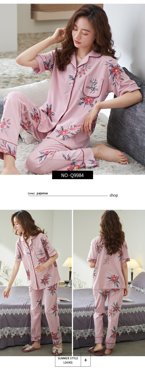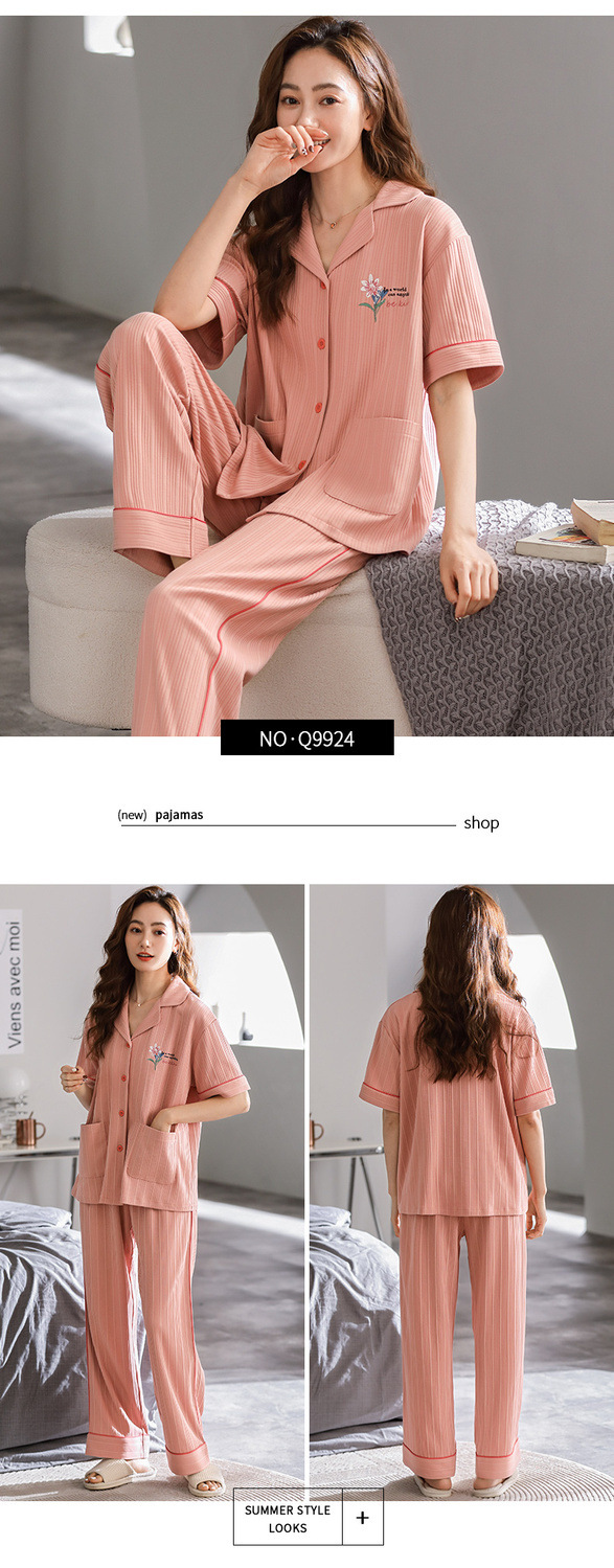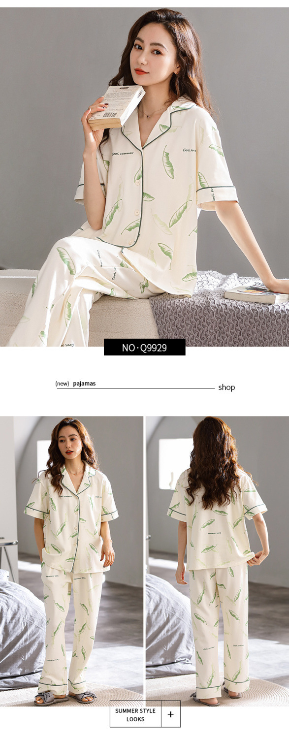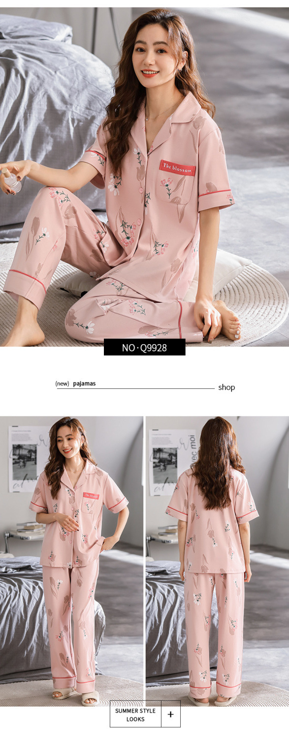Pijamas pantalones de manga corta de algodón de verano para mujer ropa para el hogar delgada madre de mediana edad traje suelto de talla grande