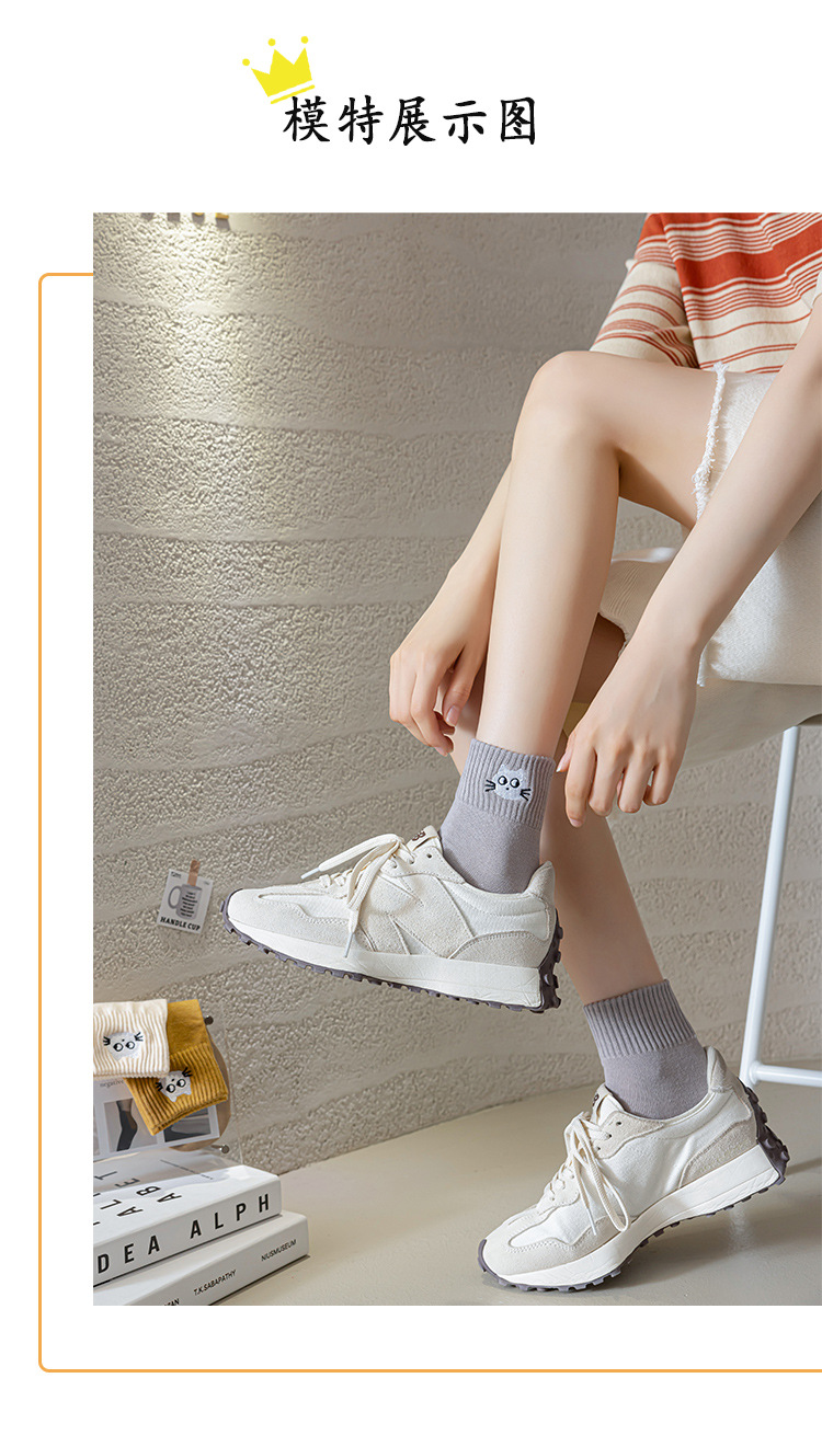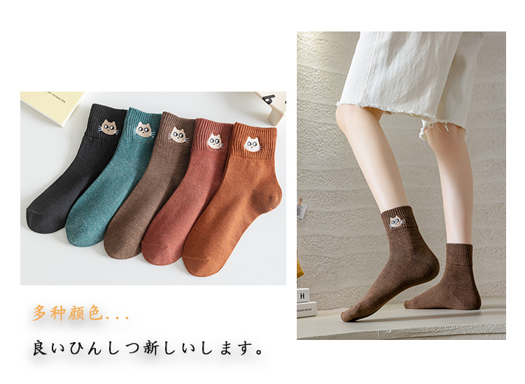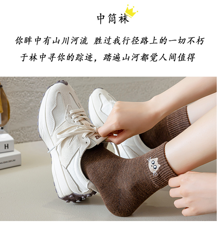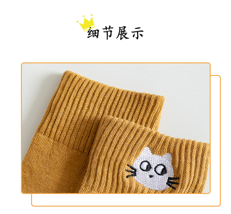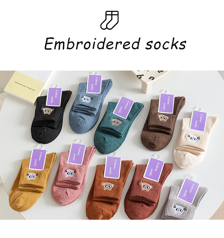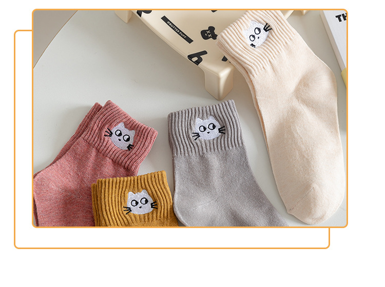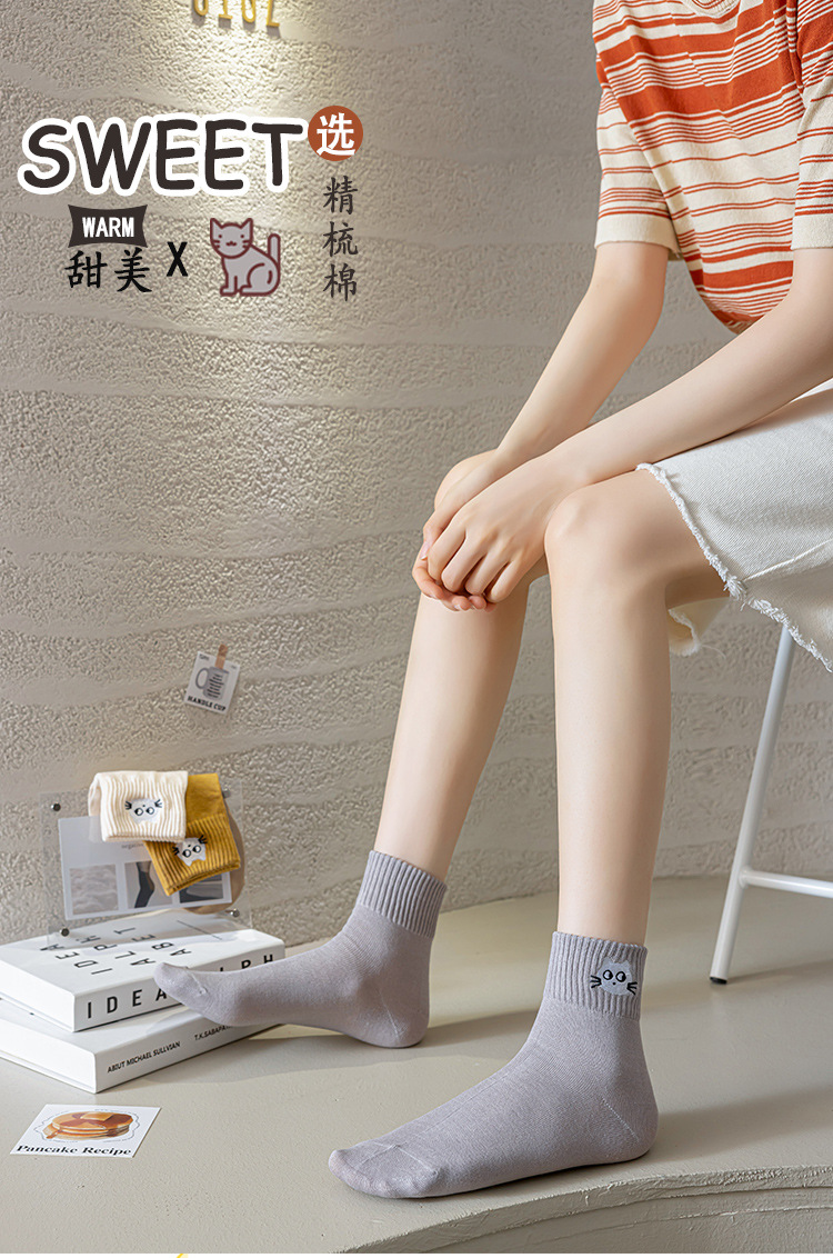 Mediados de la pantorrilla calcetines de algodón de color puro de primavera y otoño de las mujeres calcetines de algodón nuevo gatito bordado medias casuales Zhuji calcetines de las mujeres al por mayor