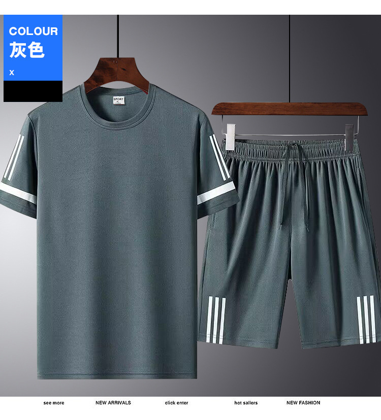 2024 verano hombre juego deportivo casual de cuello redondo camiseta pantalones cortos fitness de dos piezas para correr por la mañana fábrica al por mayor