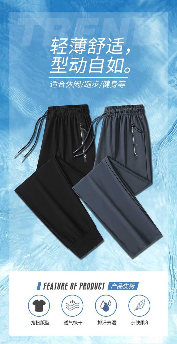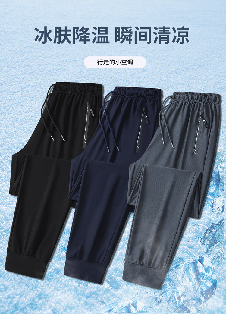 2024 pantalones de seda de hielo de secado rápido de verano para hombres y mujeres pantalones deportivos elásticos casuales de talla grande pantalones deportivos rectos al por mayor de fábrica