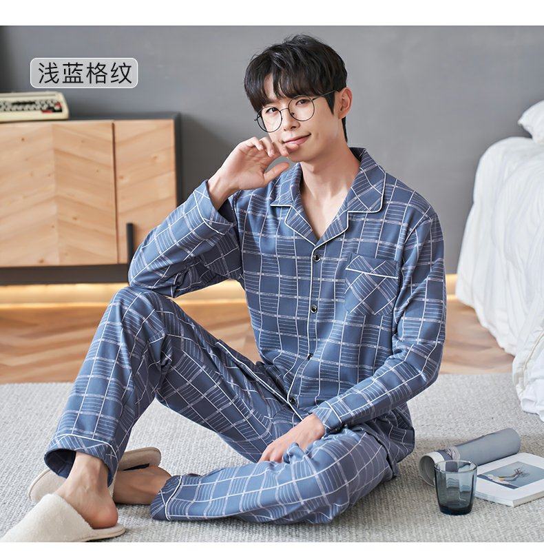 Pijamas de los hombres primavera y otoño más tamaño % algodón manga larga 2022 nuevo traje casual desgaste del hogar se puede usar fuera