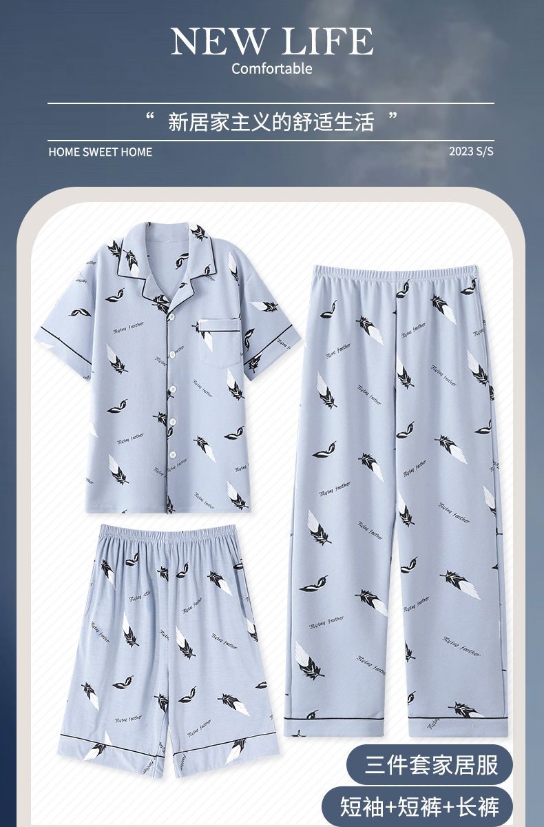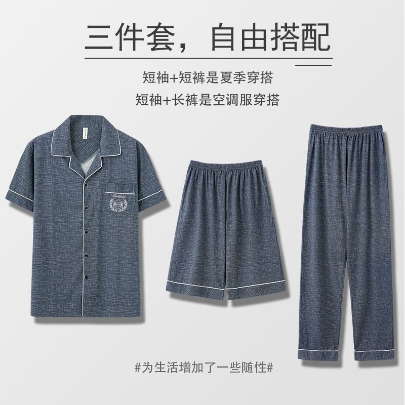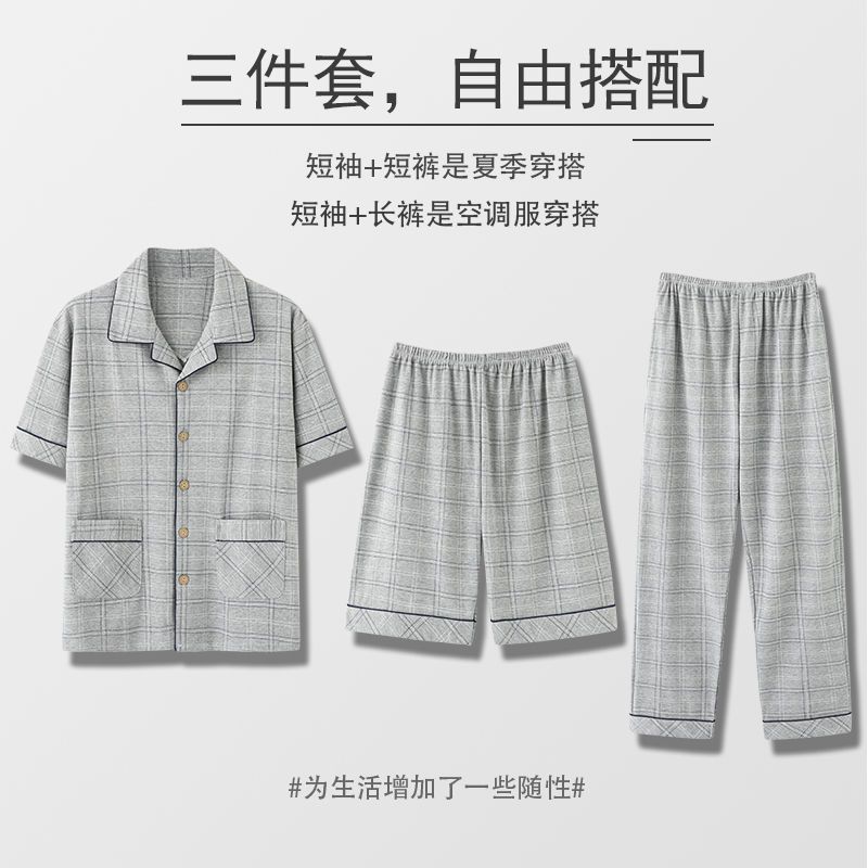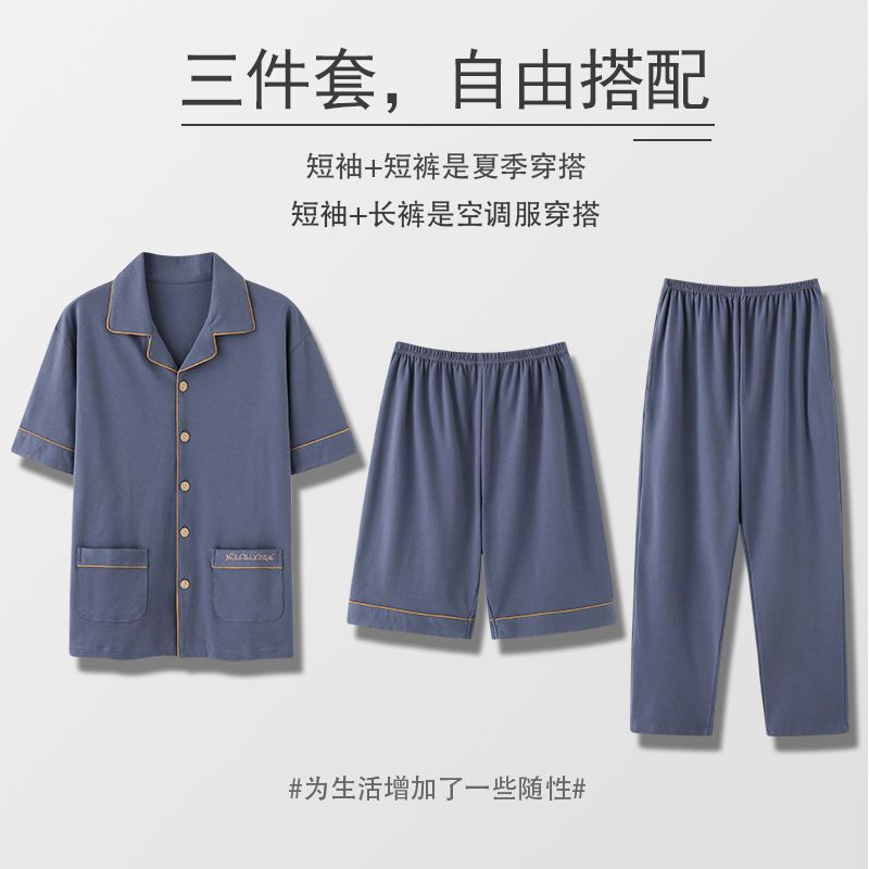 100% algodón pijamas de los hombres pantalones cortos de manga corta pantalones traje de tres piezas cardigan casual más tamaño ropa para el hogar