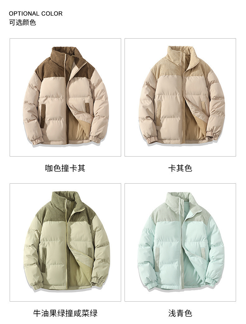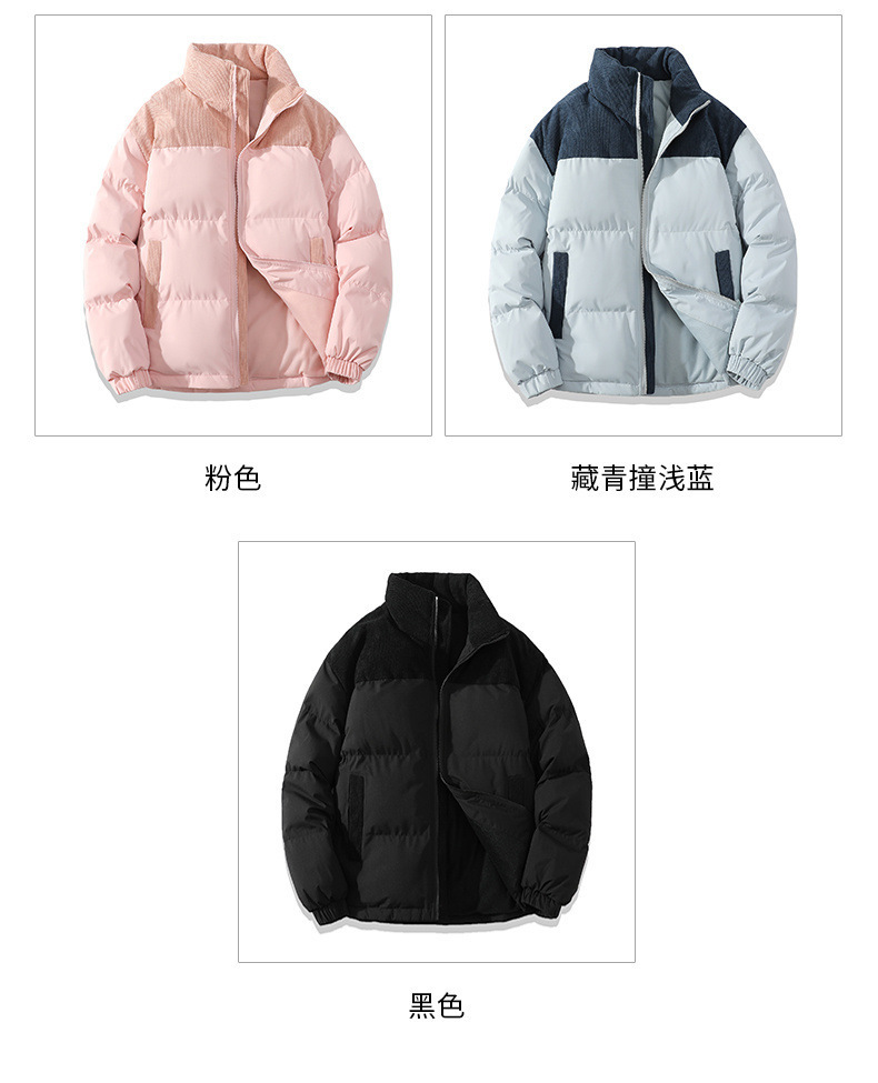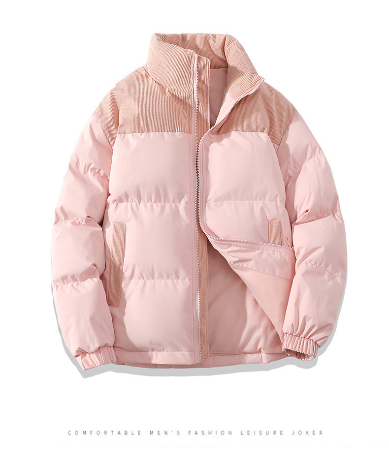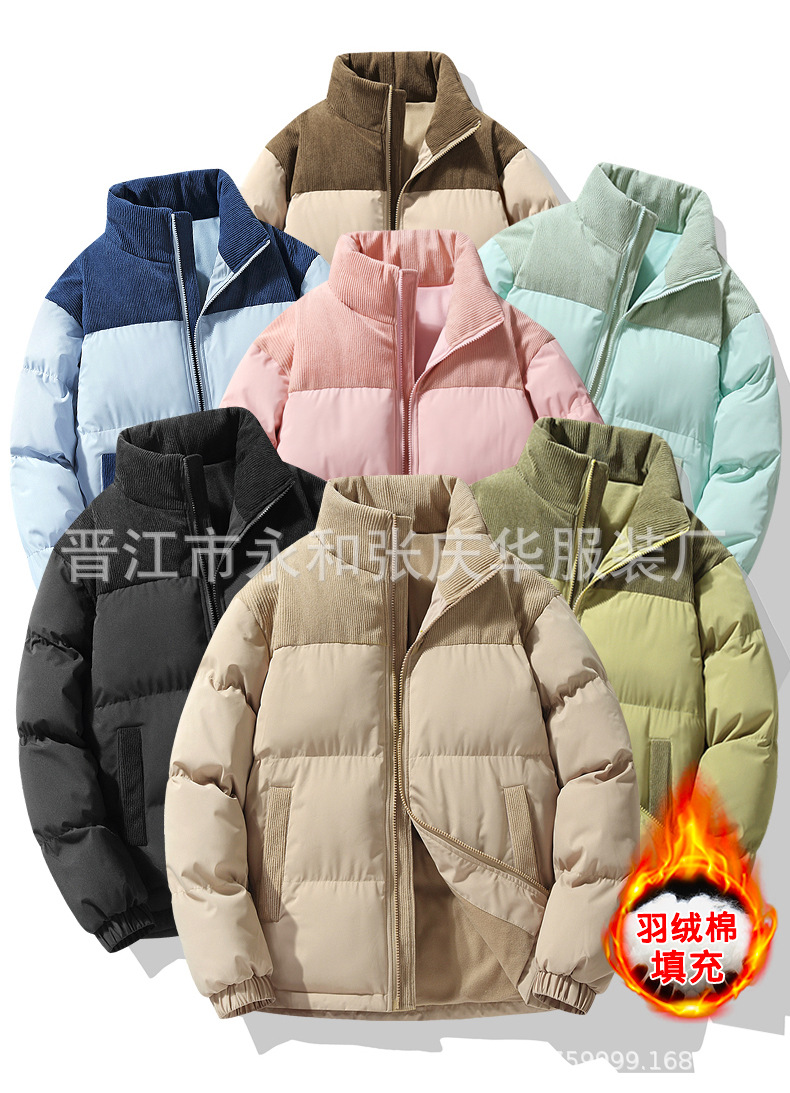 Chaqueta acolchada de algodón chaqueta acolchada de algodón de los hombres de invierno suelta más tamaño de la pareja colorido collar de pie chaqueta acolchada de algodón engrosada fábrica al por mayor