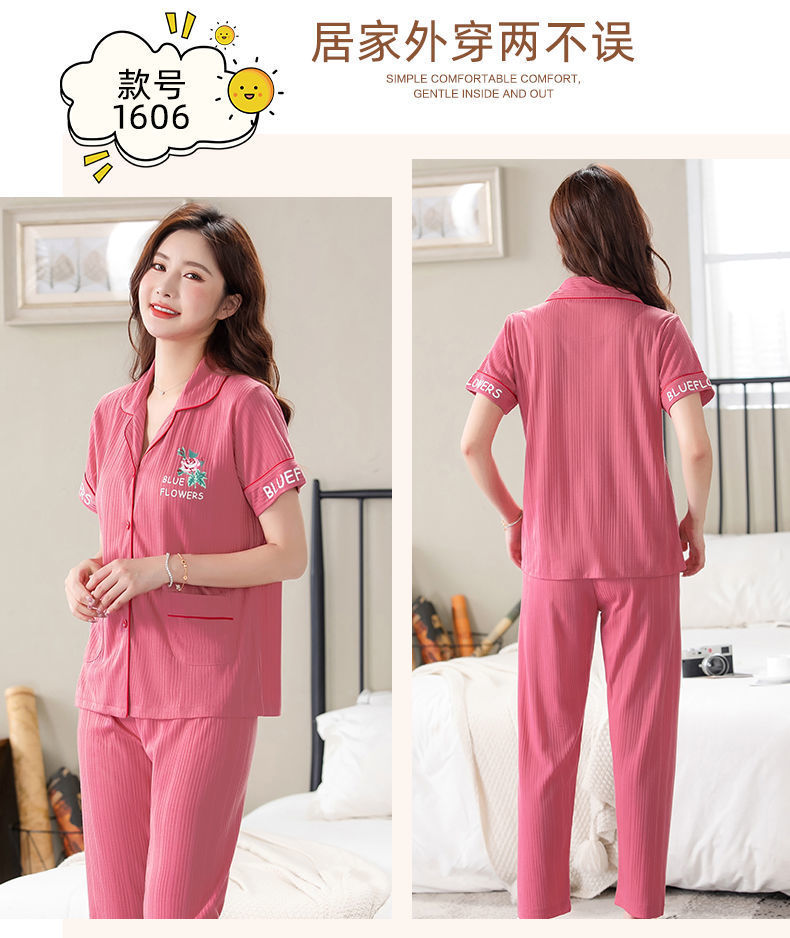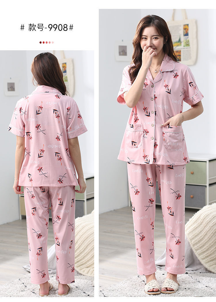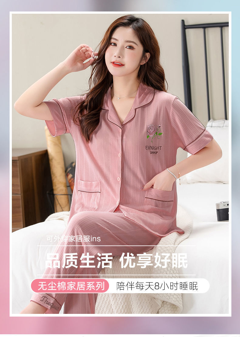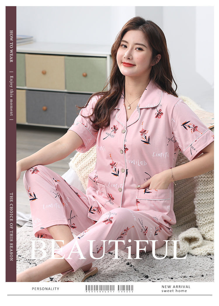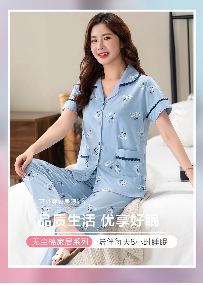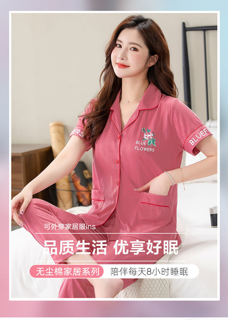 Pijama de algodón de verano Pantalones de manga corta para mujer de mediana edad traje de Rebeca de talla grande Delgado homewear