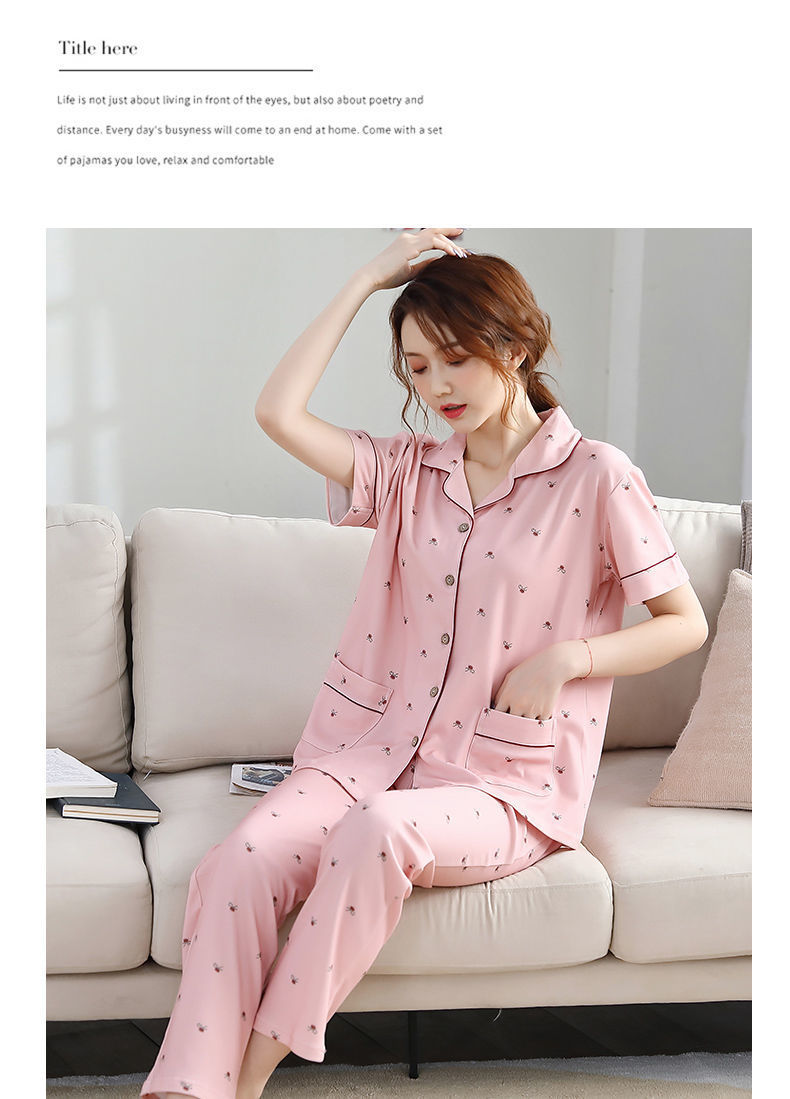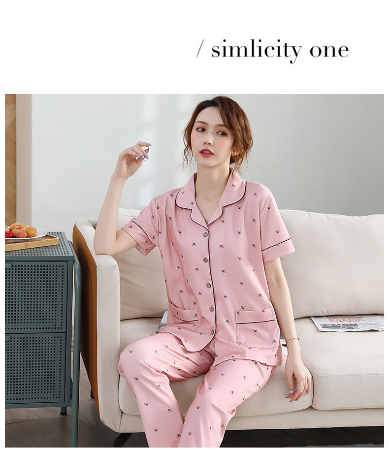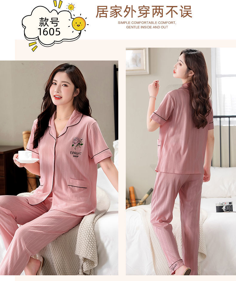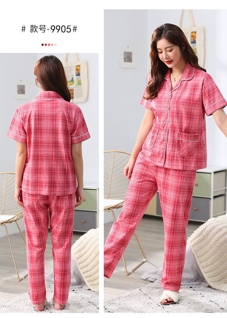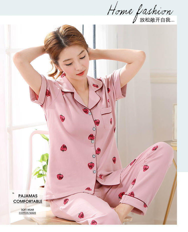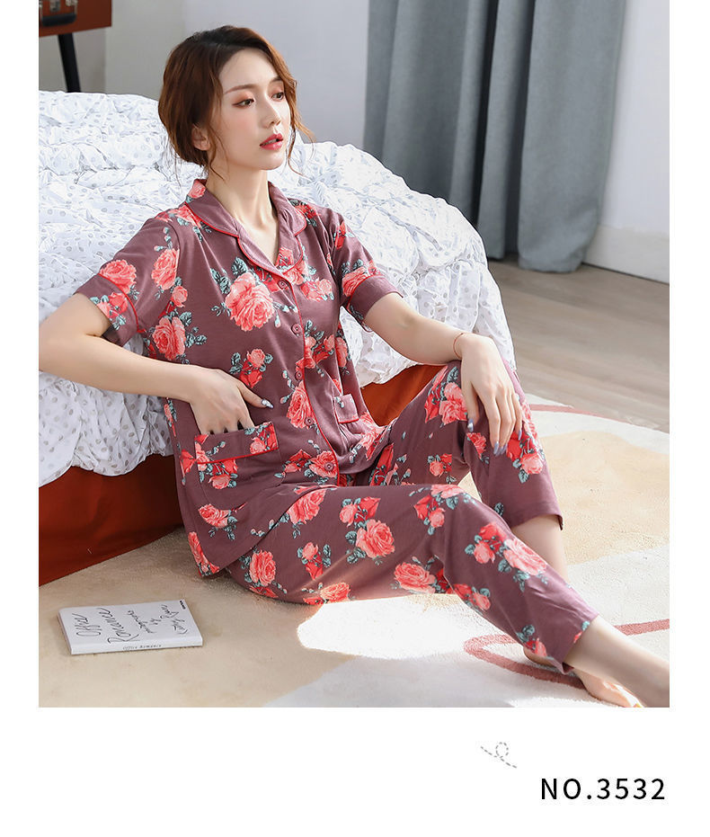Pijama de algodón de verano Pantalones de manga corta para mujer de mediana edad traje de Rebeca de talla grande Delgado homewear
