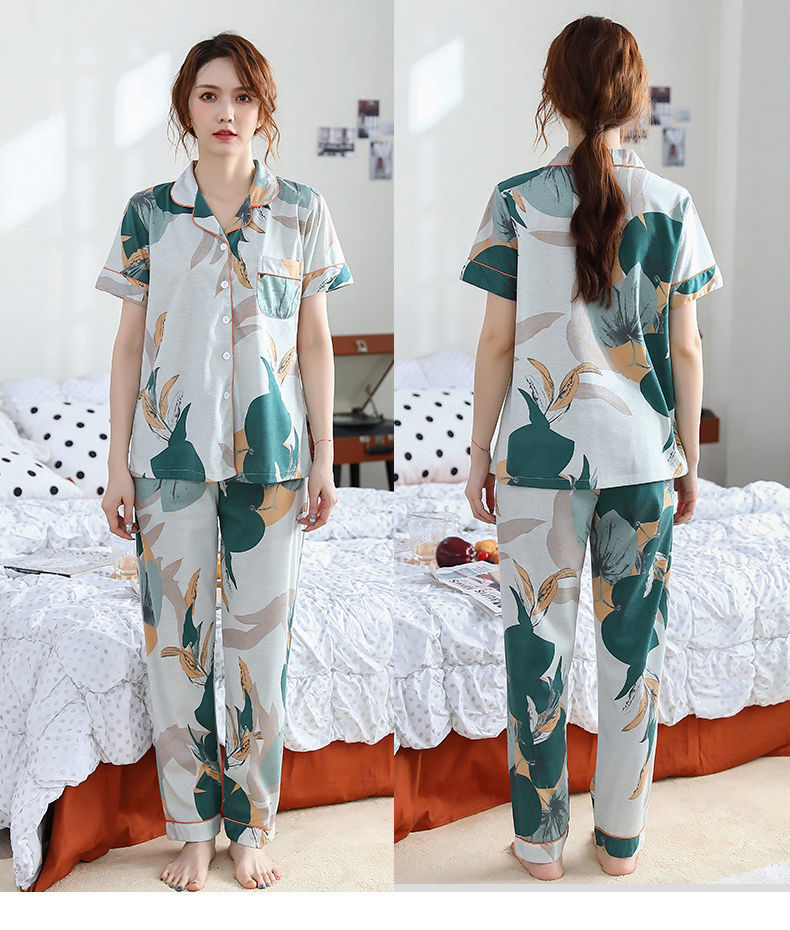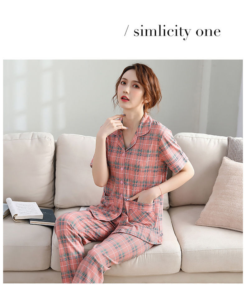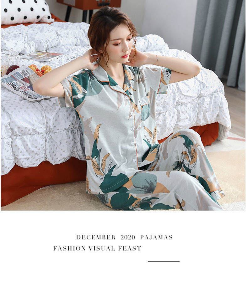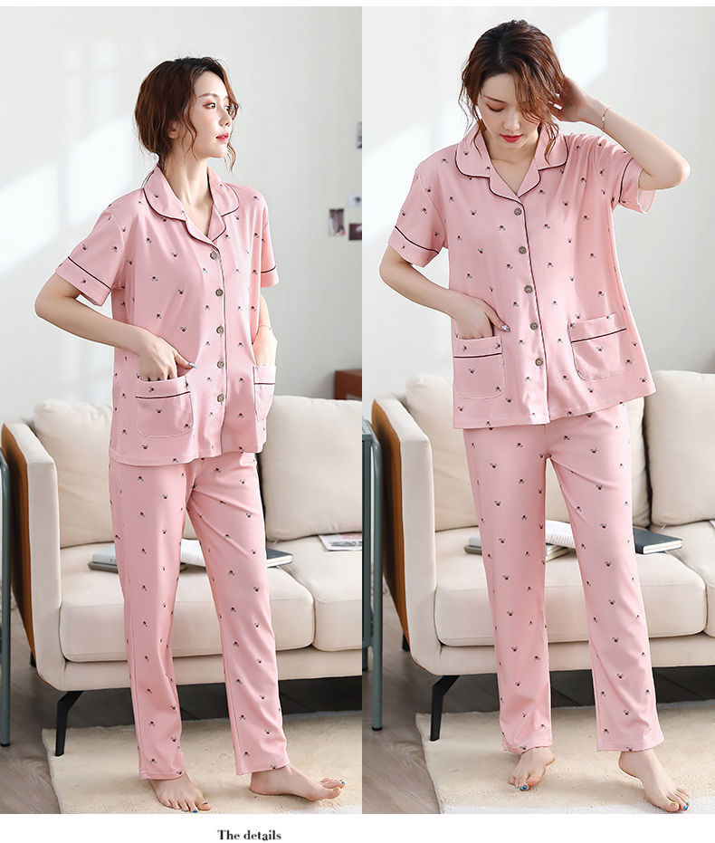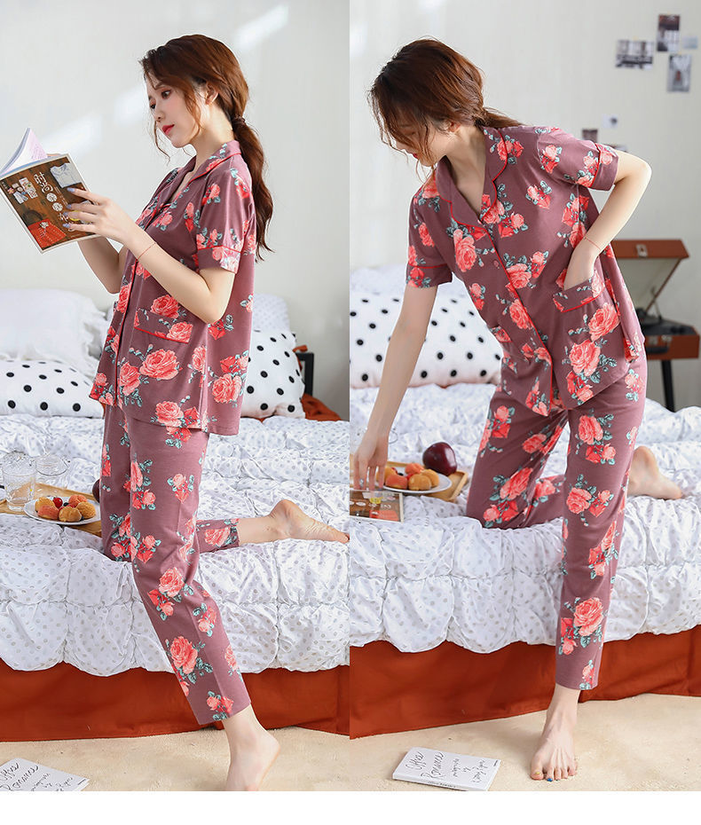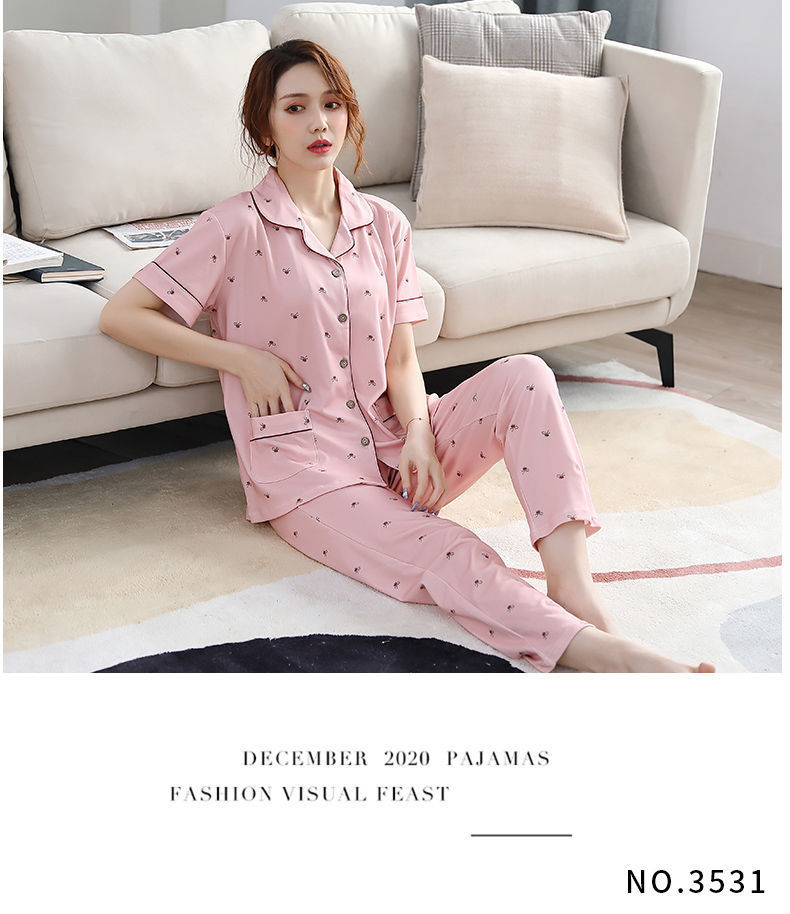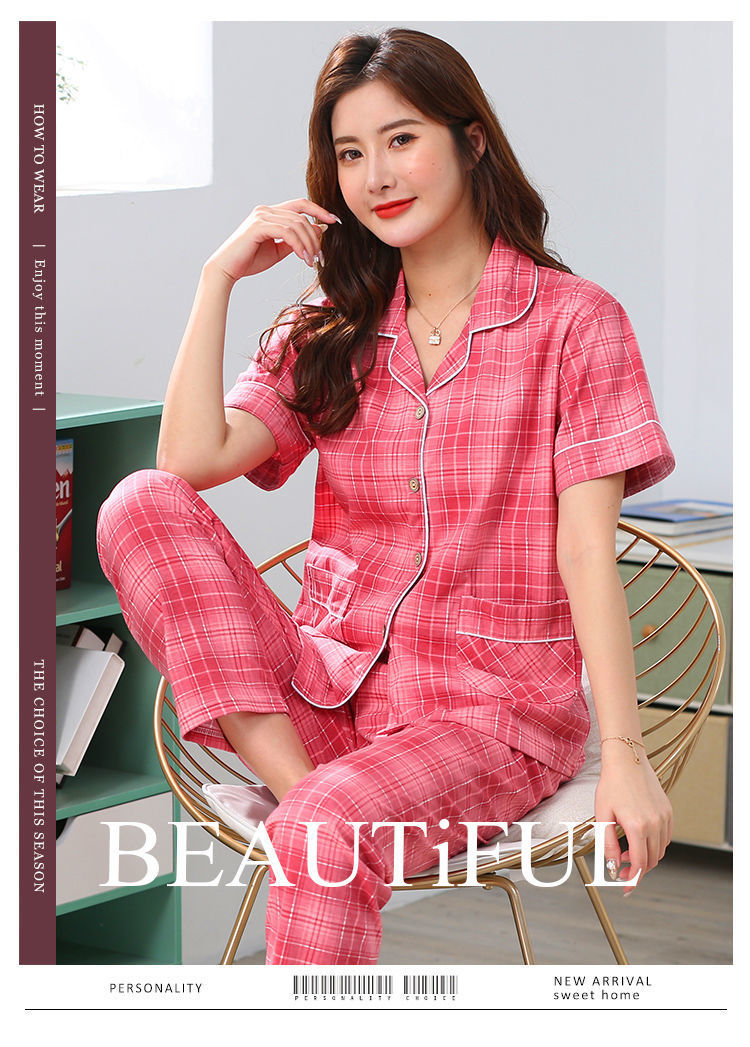 Pijama de algodón de verano Pantalones de manga corta para mujer de mediana edad traje de Rebeca de talla grande Delgado homewear