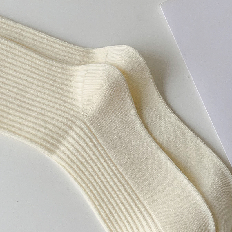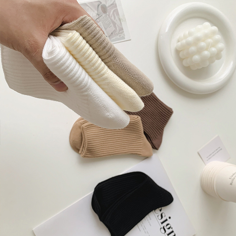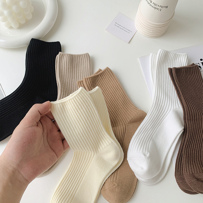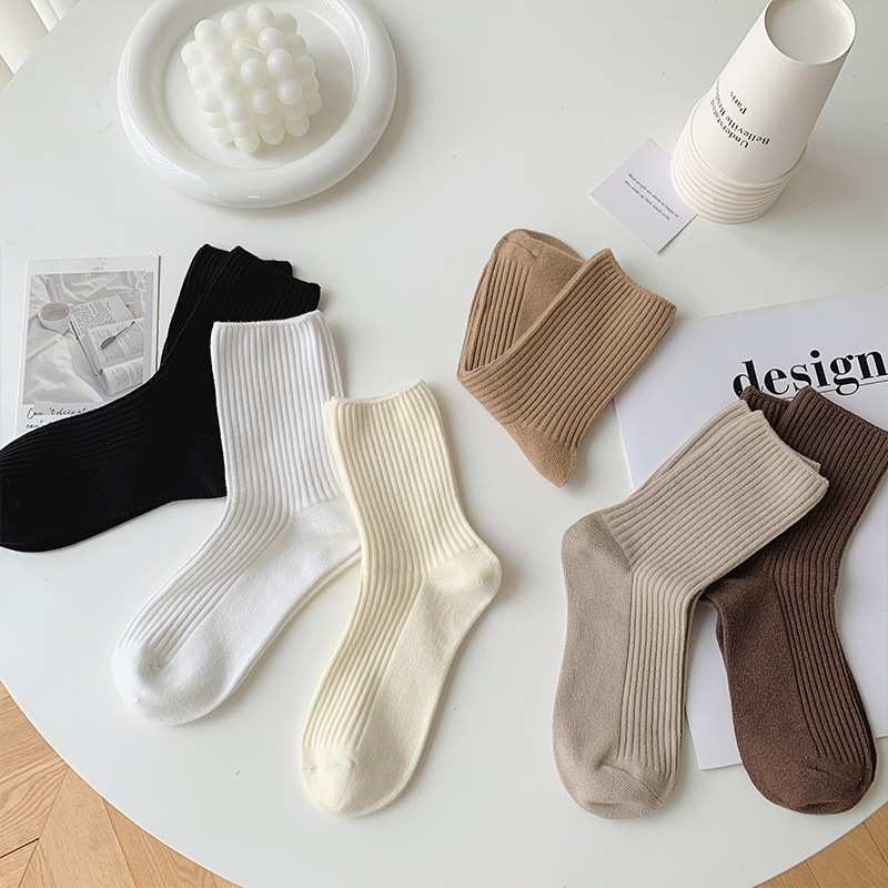 Calcetines de mujer primavera y otoño color sólido calcetines de algodón fino calcetines de media pantorrilla calcetines japoneses de doble aguja rayas verticales calcetines de mujer de moda calcetines de pila al por mayor