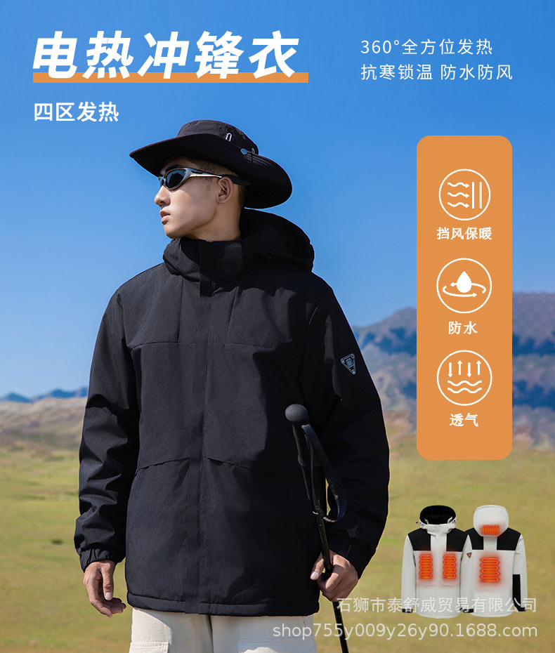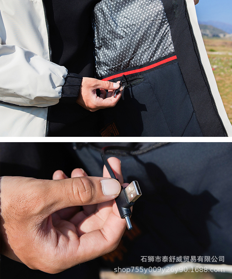 Suministro de fábrica nueva chaqueta de calefacción inteligente chaqueta de calefacción eléctrica de cuatro zonas de tres controles al aire libre de invierno