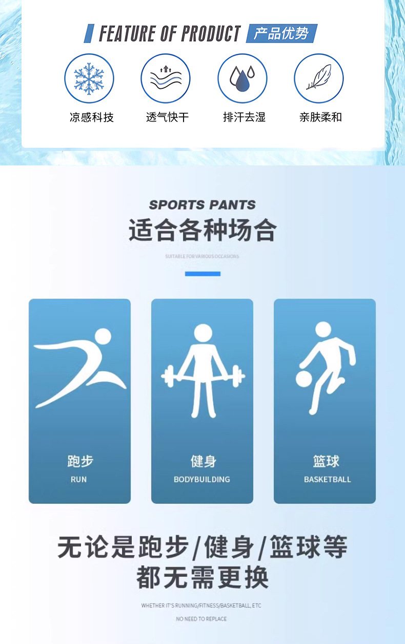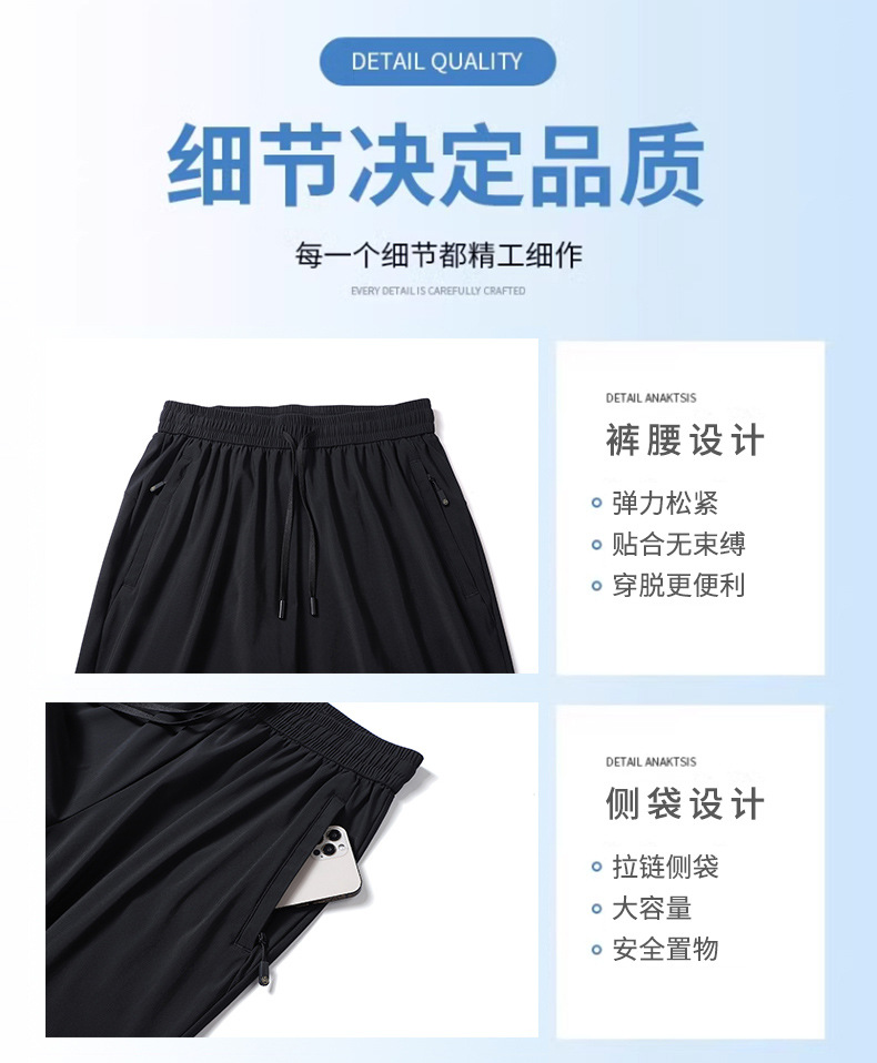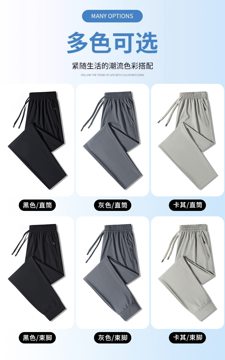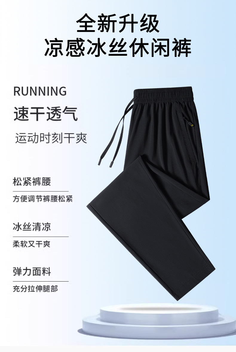 Verano hielo deportivo casual pantalones recto hombre moda versátil casual sensación fresca transpirable cómodo pantalones de cintura al por mayor