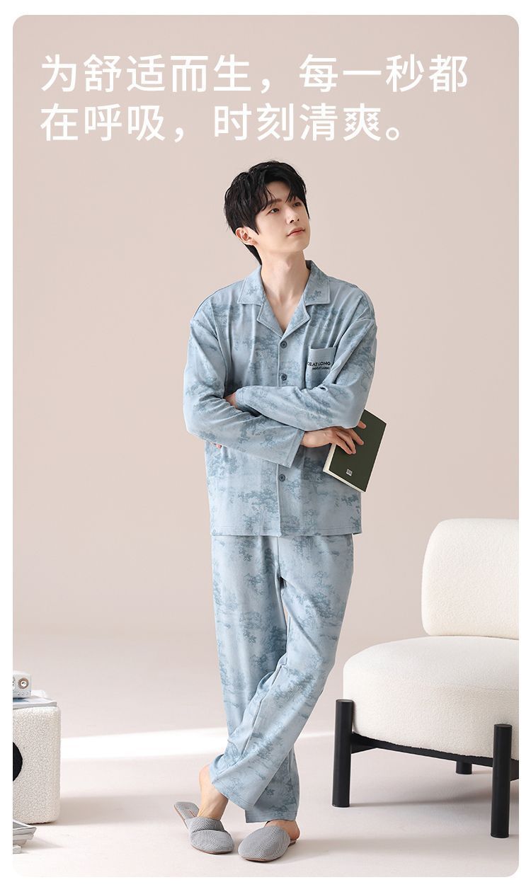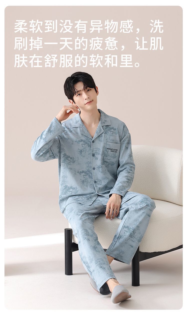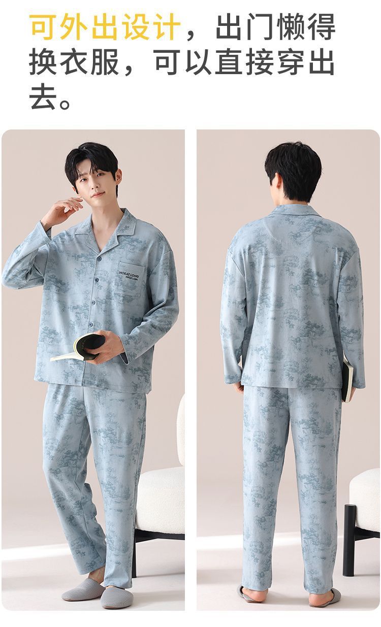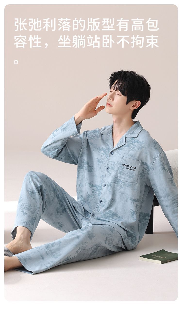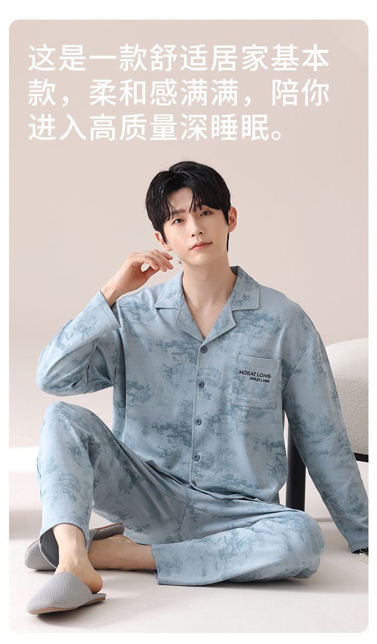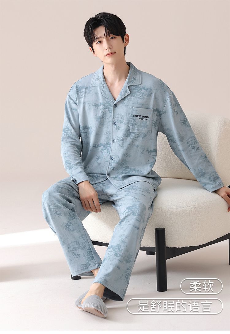 Pijama de hombre de algodón otoño juvenil pantalones de manga larga cardigan sueltos primavera y otoño set de ropa para el hogar