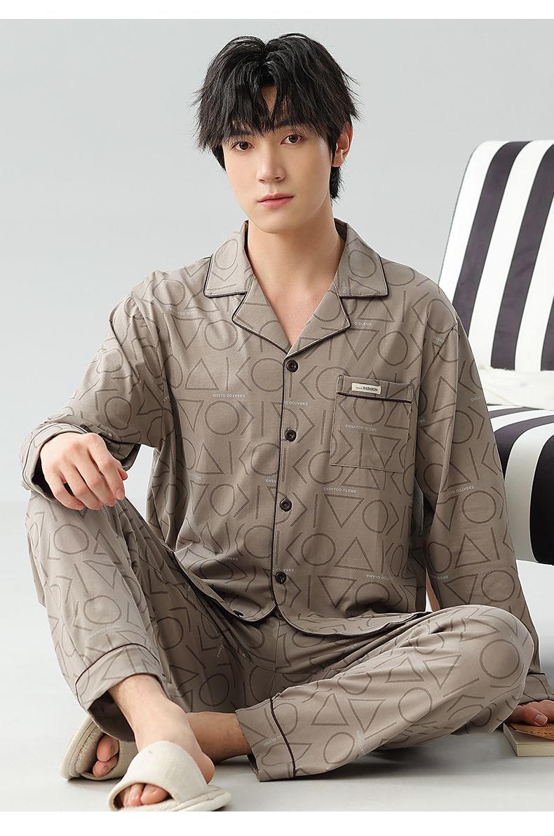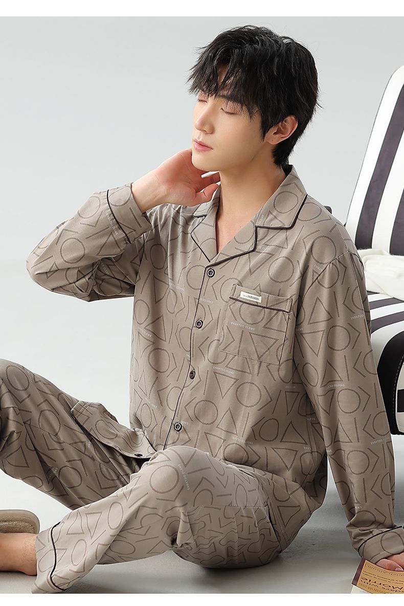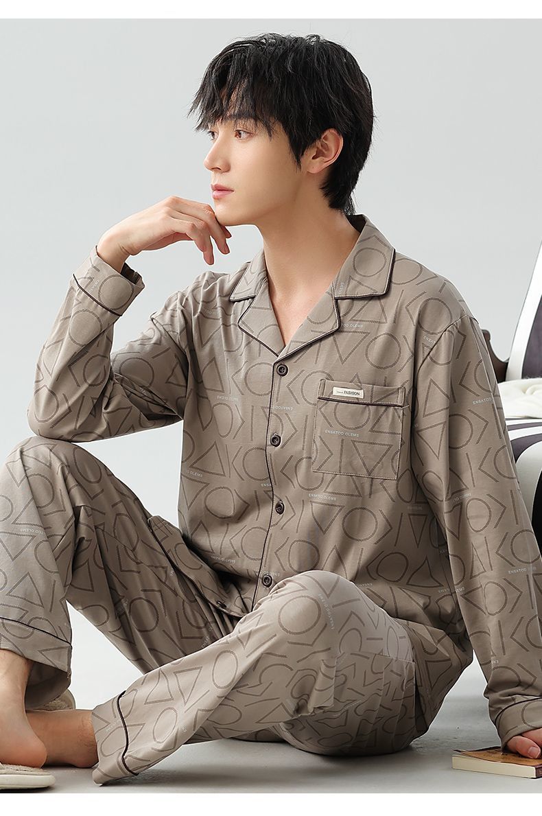Nuevos pijamas de algodón para hombres primavera y otoño set de mangas largas estilo coreano ropa de hogar suelta para hombres se puede usar fuera