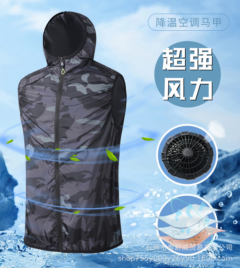 enfriamiento de verano chaleco de aire acondicionado encapuchado trabajo al aire libre deportes enfriamiento de aire acondicionado chaleco de refrigeración delgado protector solar