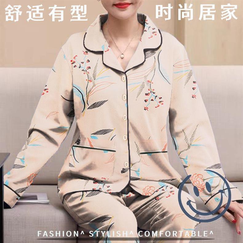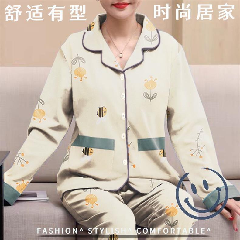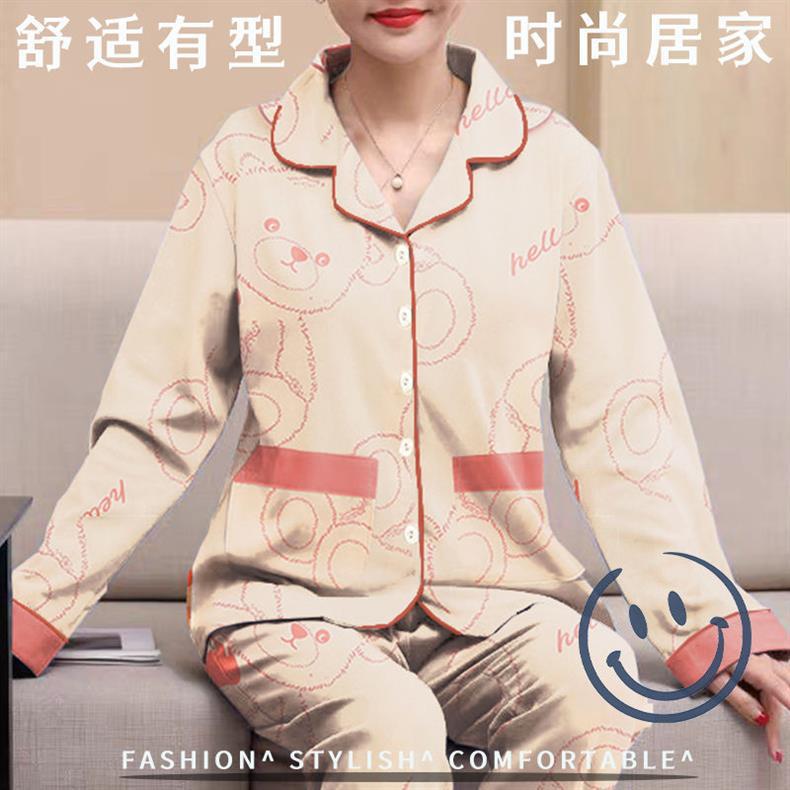 Nuevo pijama de algodón de alta calidad damas primavera y otoño ropa de hogar de mangas largas cardigan dos piezas set