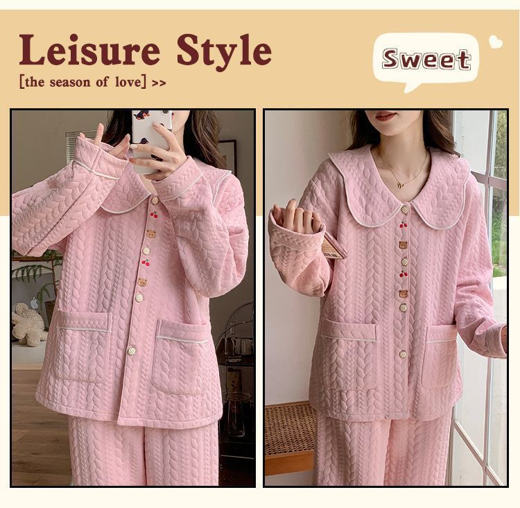 Pijamas de mujeres otoño invierno 2024 nuevo aire caliente invierno de algodón intercalado grueso manga larga se puede usar fuera conjunto de ropa de hogar