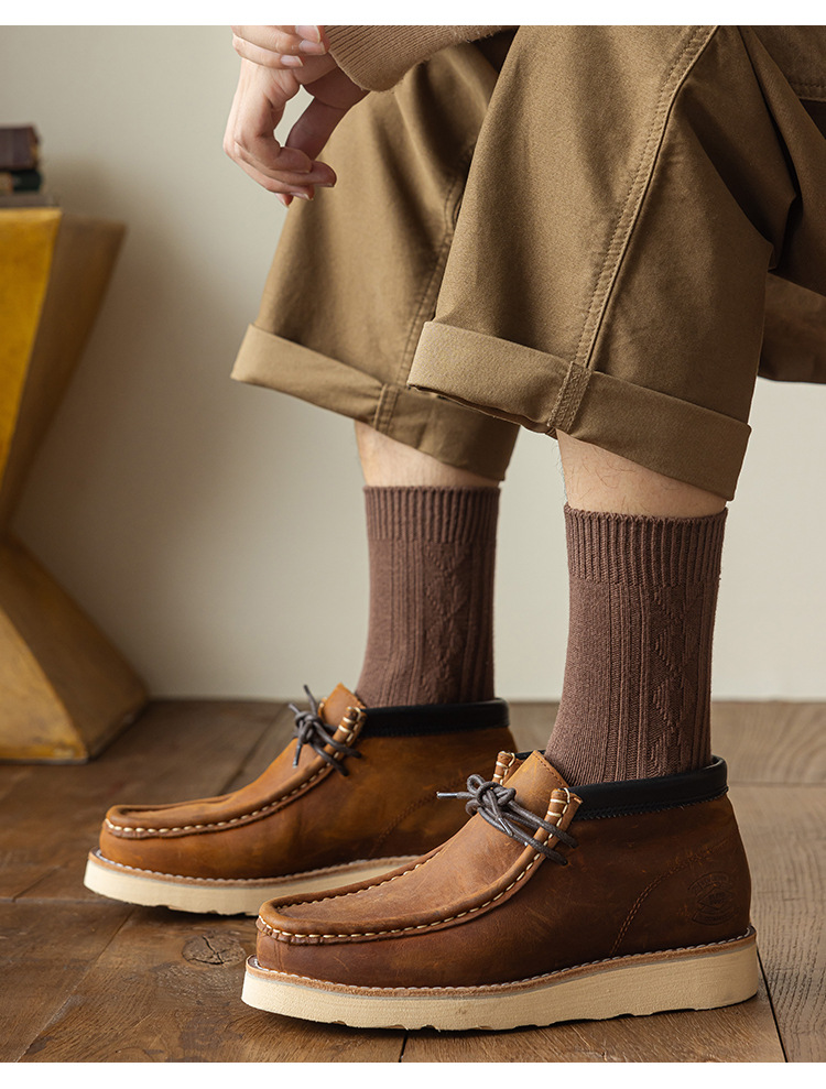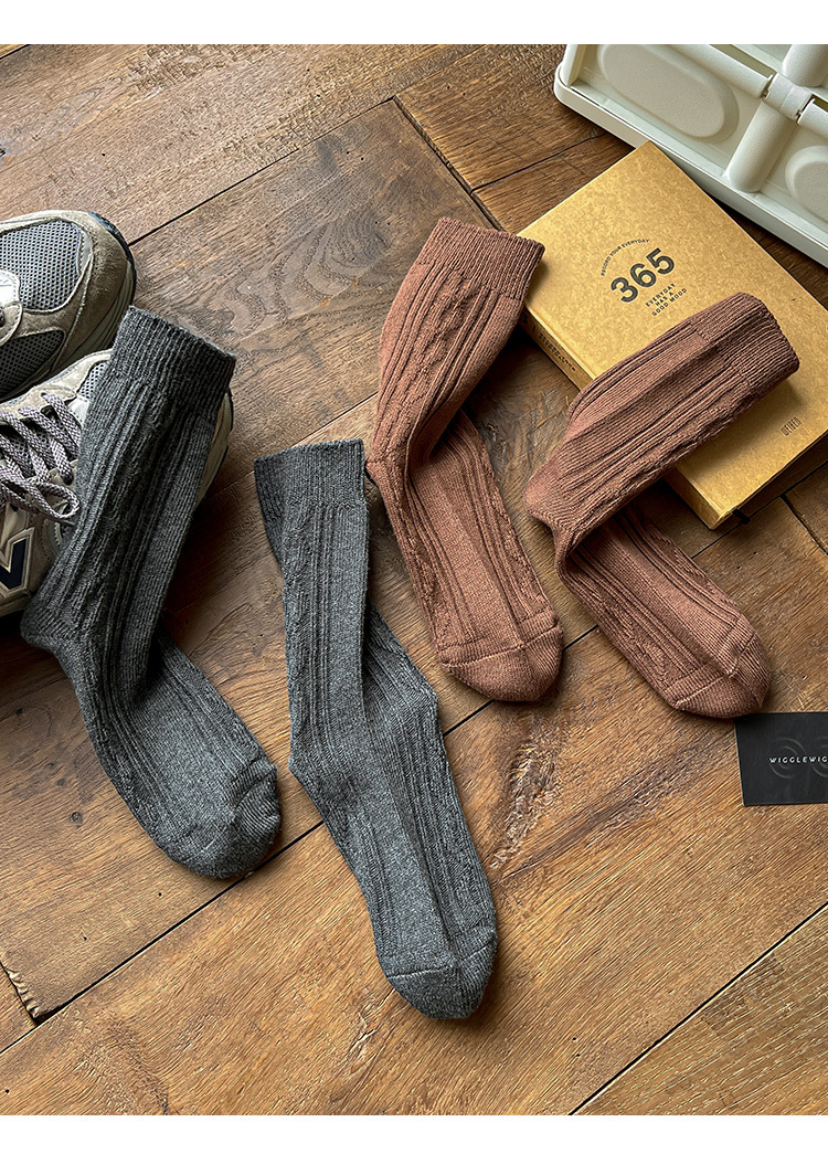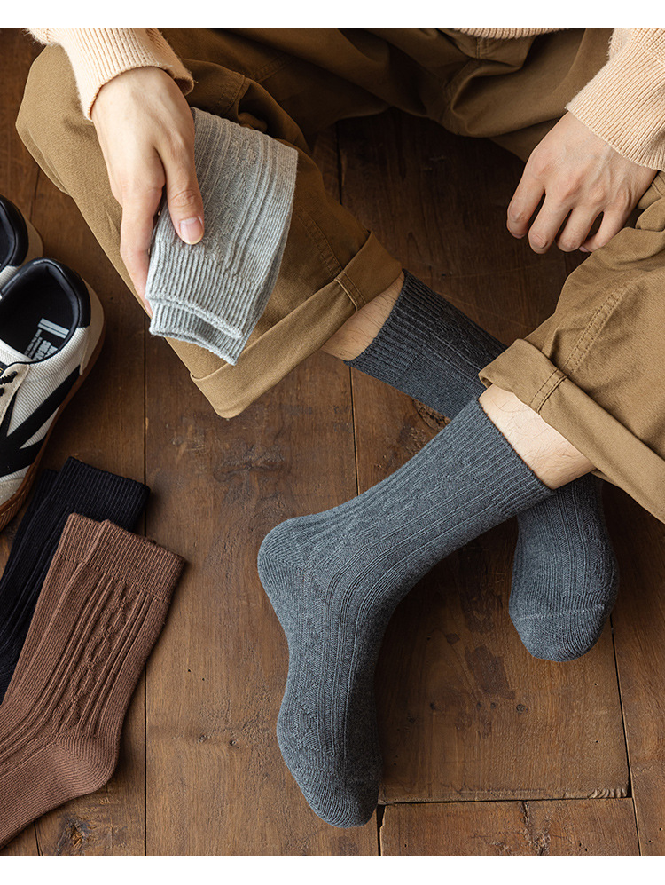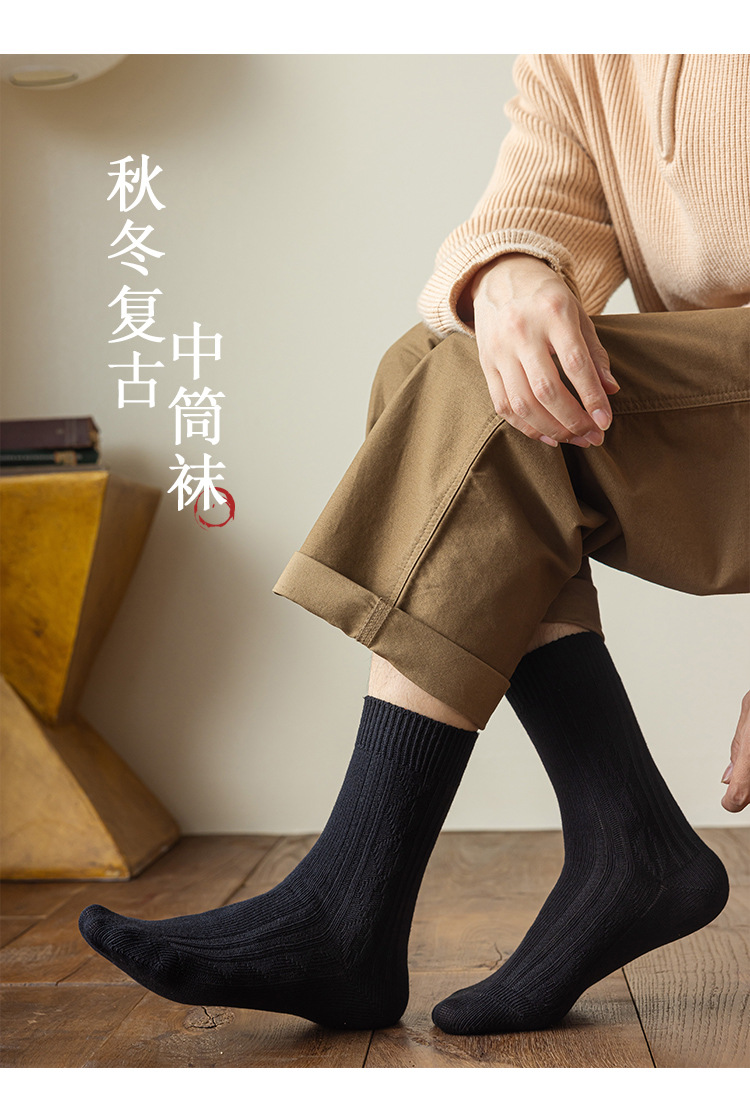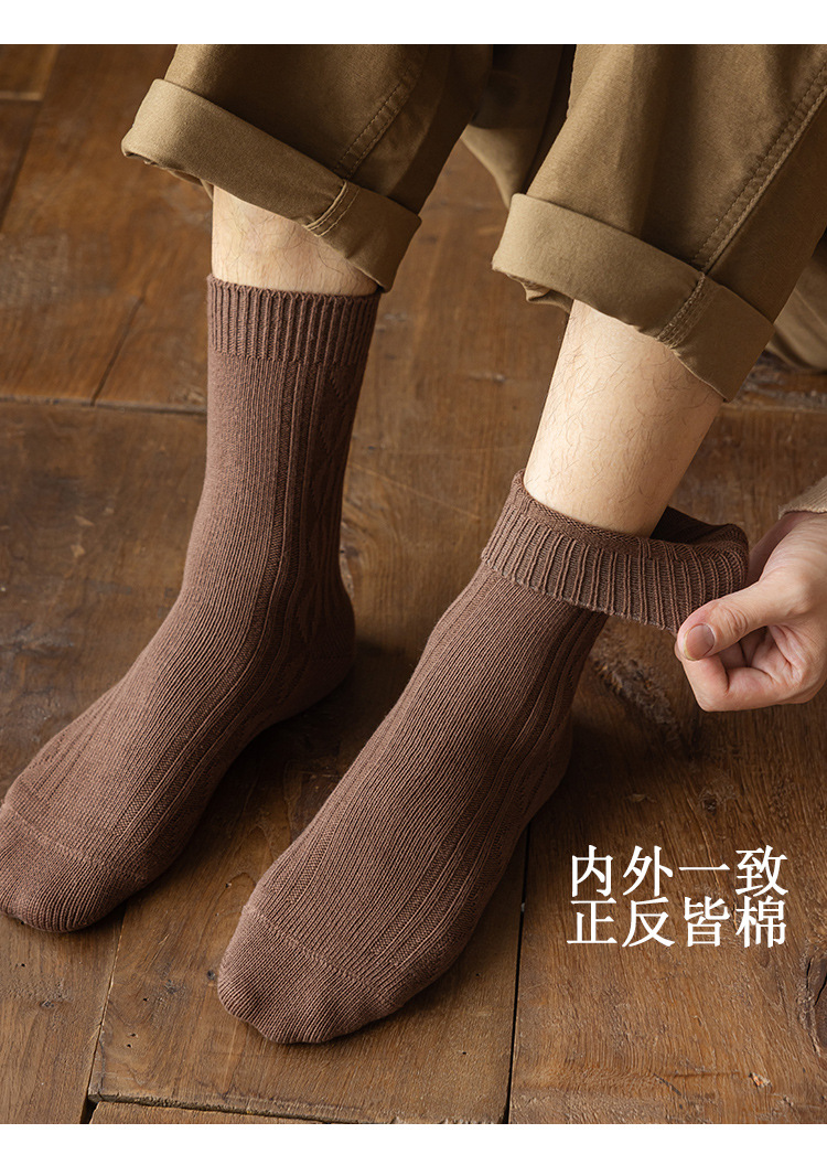 Calcetines de primavera y otoño calcetines de algodón de color sólido para hombre medias vintage aguja gruesa transpirable Calcetines de media pantorrilla para hombre