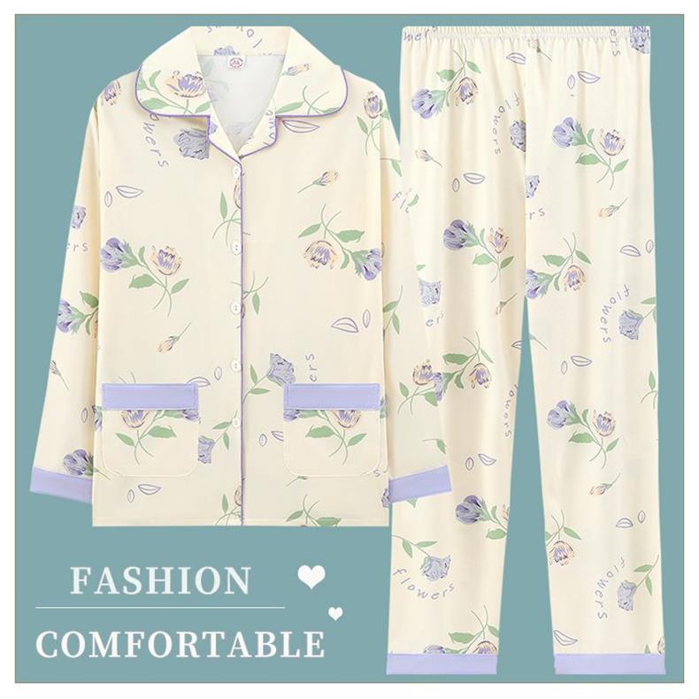 Pijama de algodón femenino primavera y otoño cardigan de manga larga 2024 nuevo conjunto de ropa de hogar de madres de alta calidad