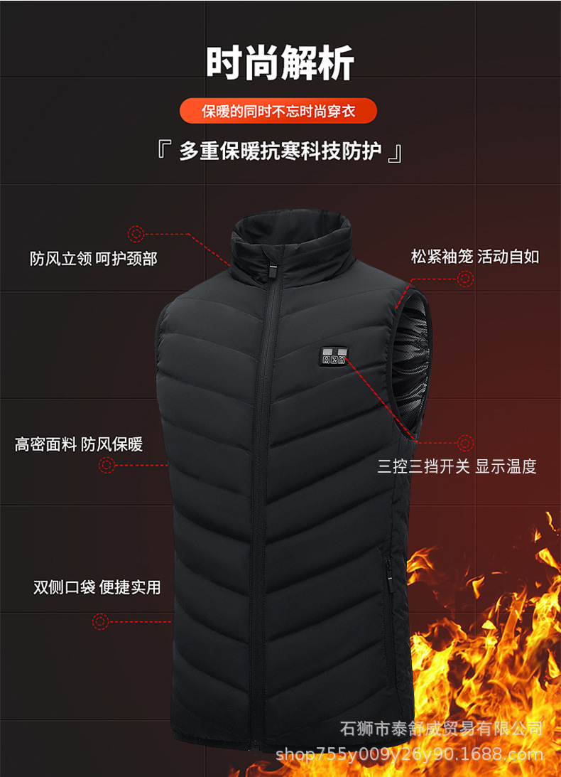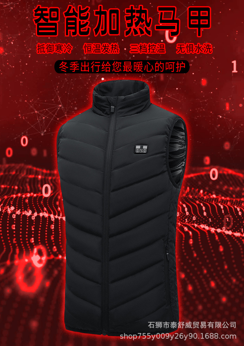 Nuevo chaleco calefactor inteligente de invierno Chaleco calefactor eléctrico con temperatura de visualización Chaleco calefactor eléctrico para hombre con estampado
