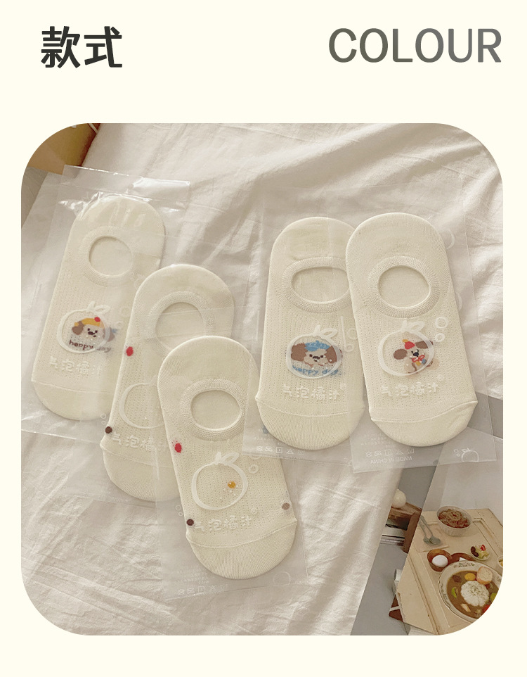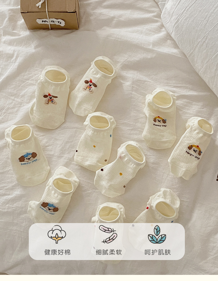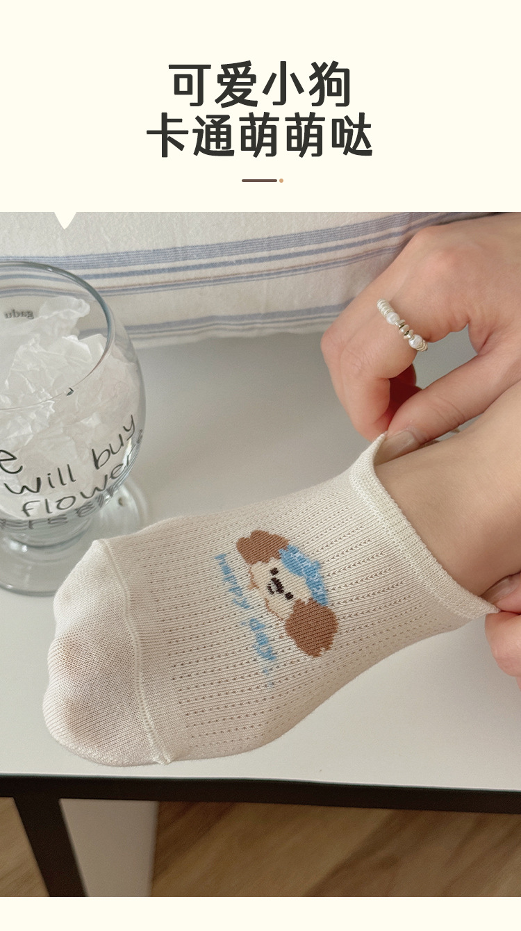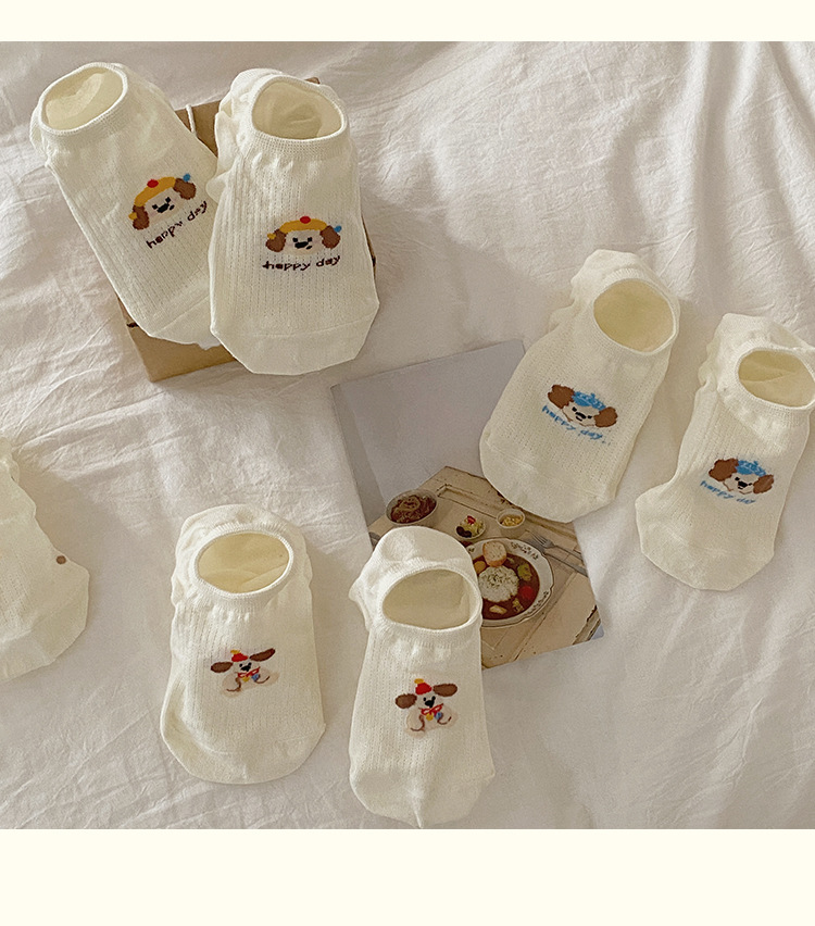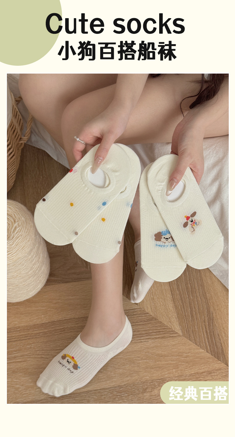 Calcetines Zhuji Calcetines finos de verano para mujer Calcetines invisibles transpirables Boca baja Antideslizante Calcetines lindos para mujer cachorro
