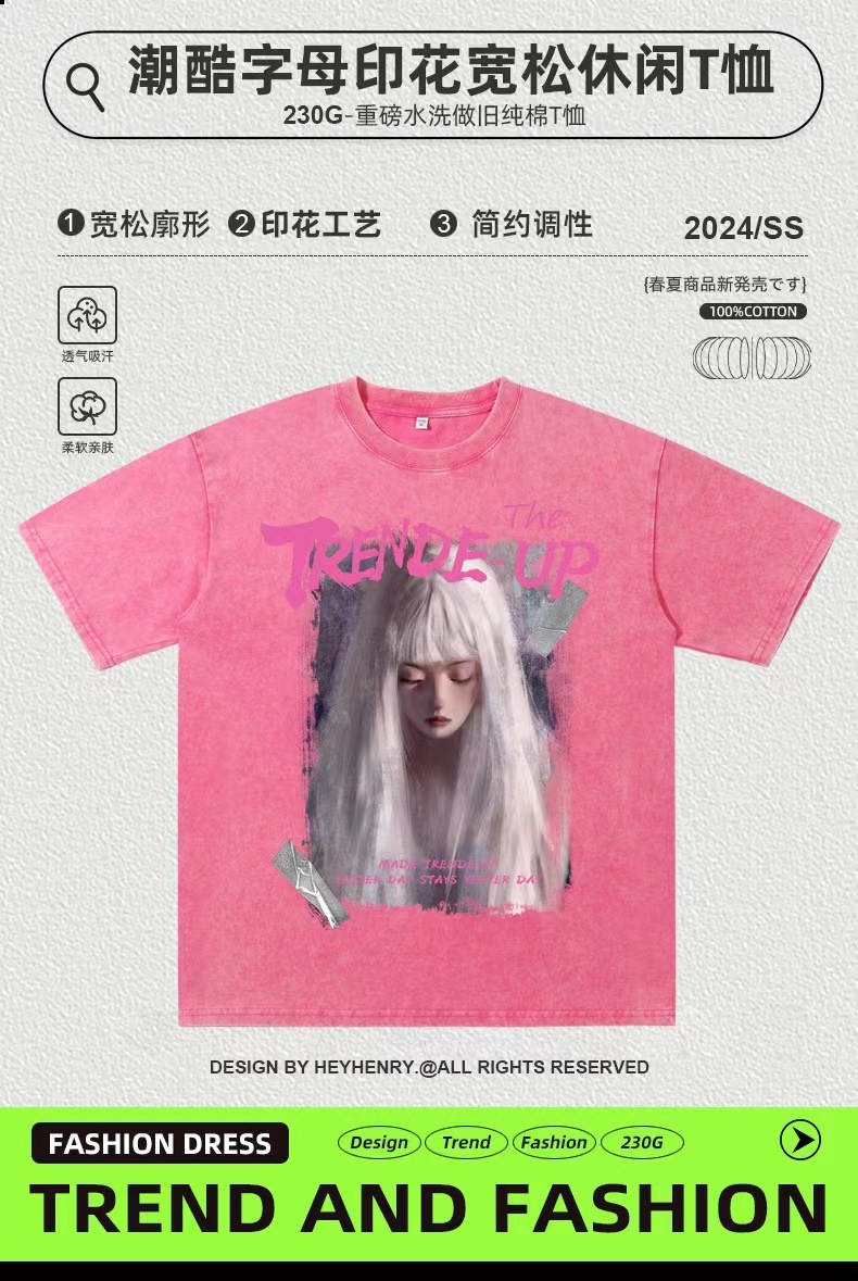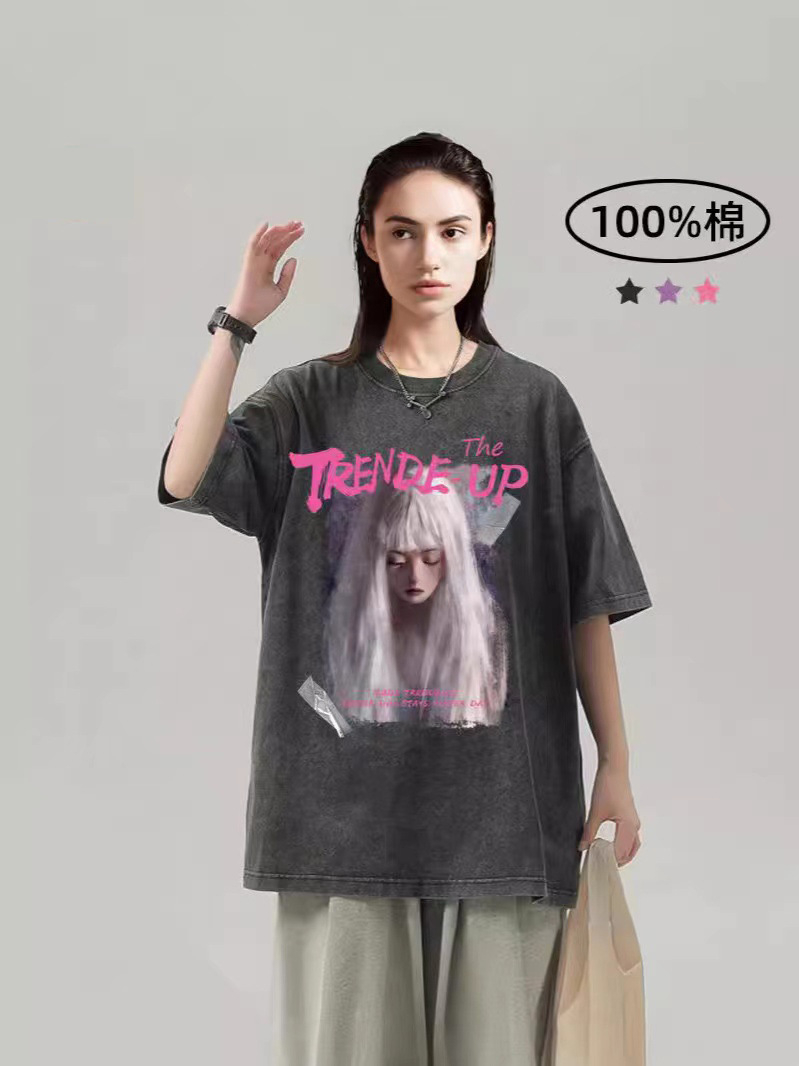 Comercio exterior hacer vieja camiseta de manga corta hombre verano cuello redondo suelto oversize vintage marca de moda chaqueta vintage marca de moda