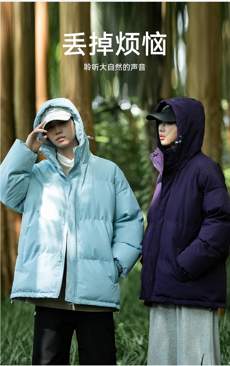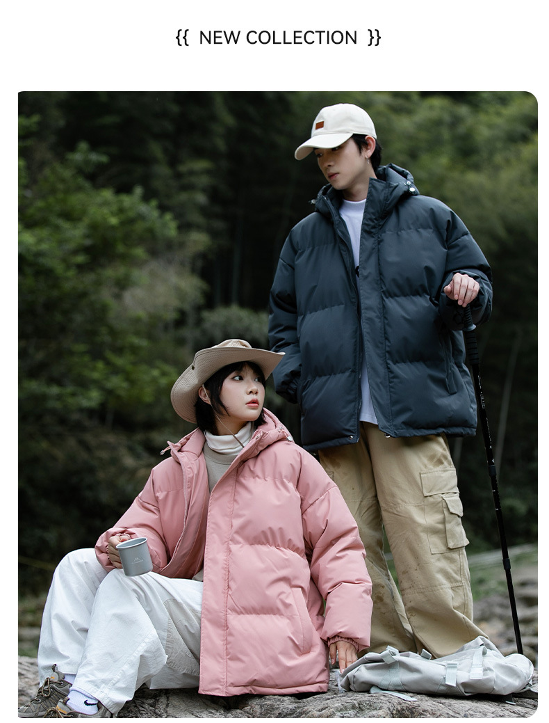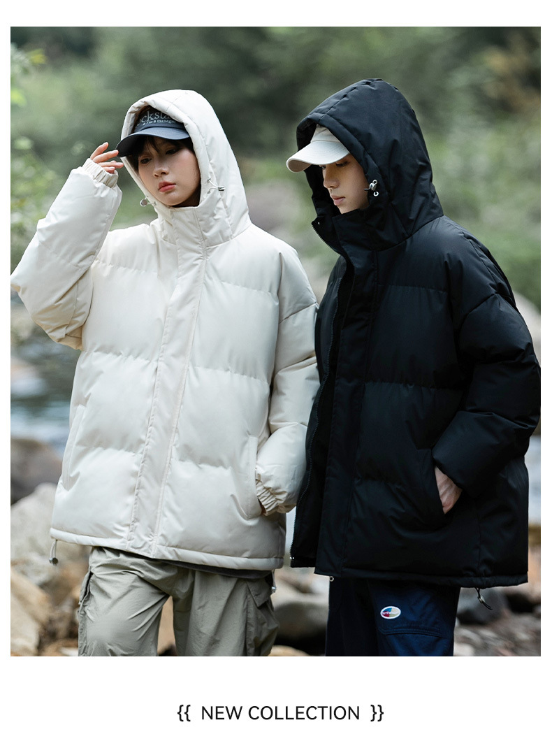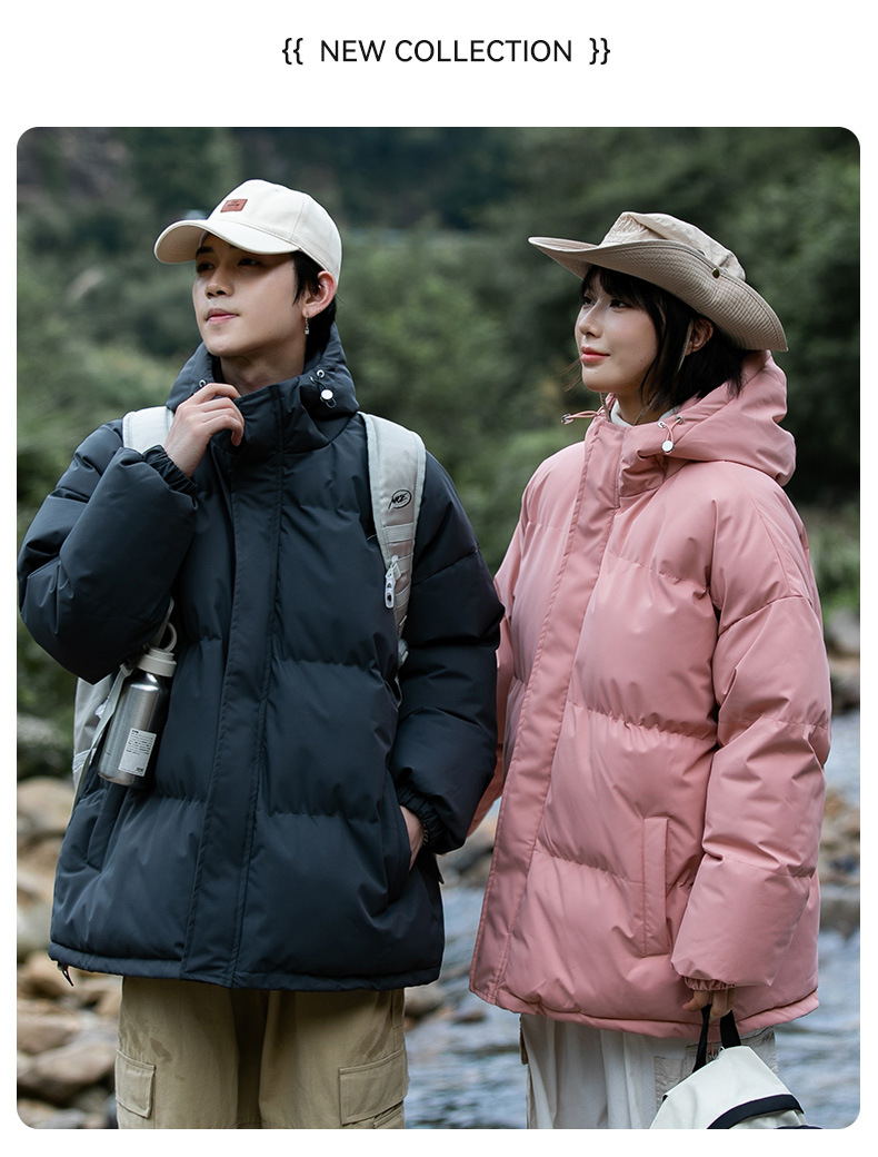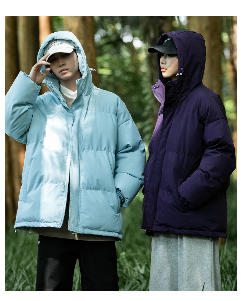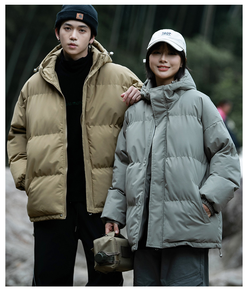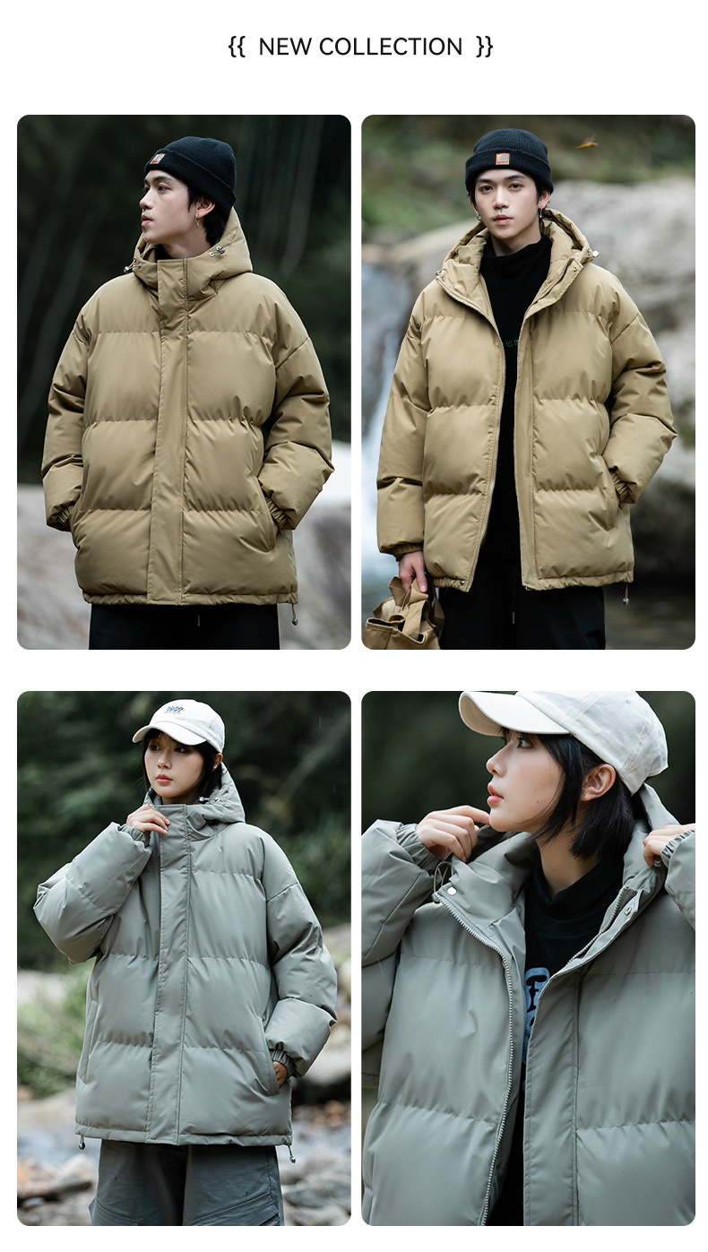 Ropa de algodón para hombre 2024 invierno nuevo estilo suelto con capucha color sólido grueso cálido grueso pareja abrigo de pan abrigo de algodón