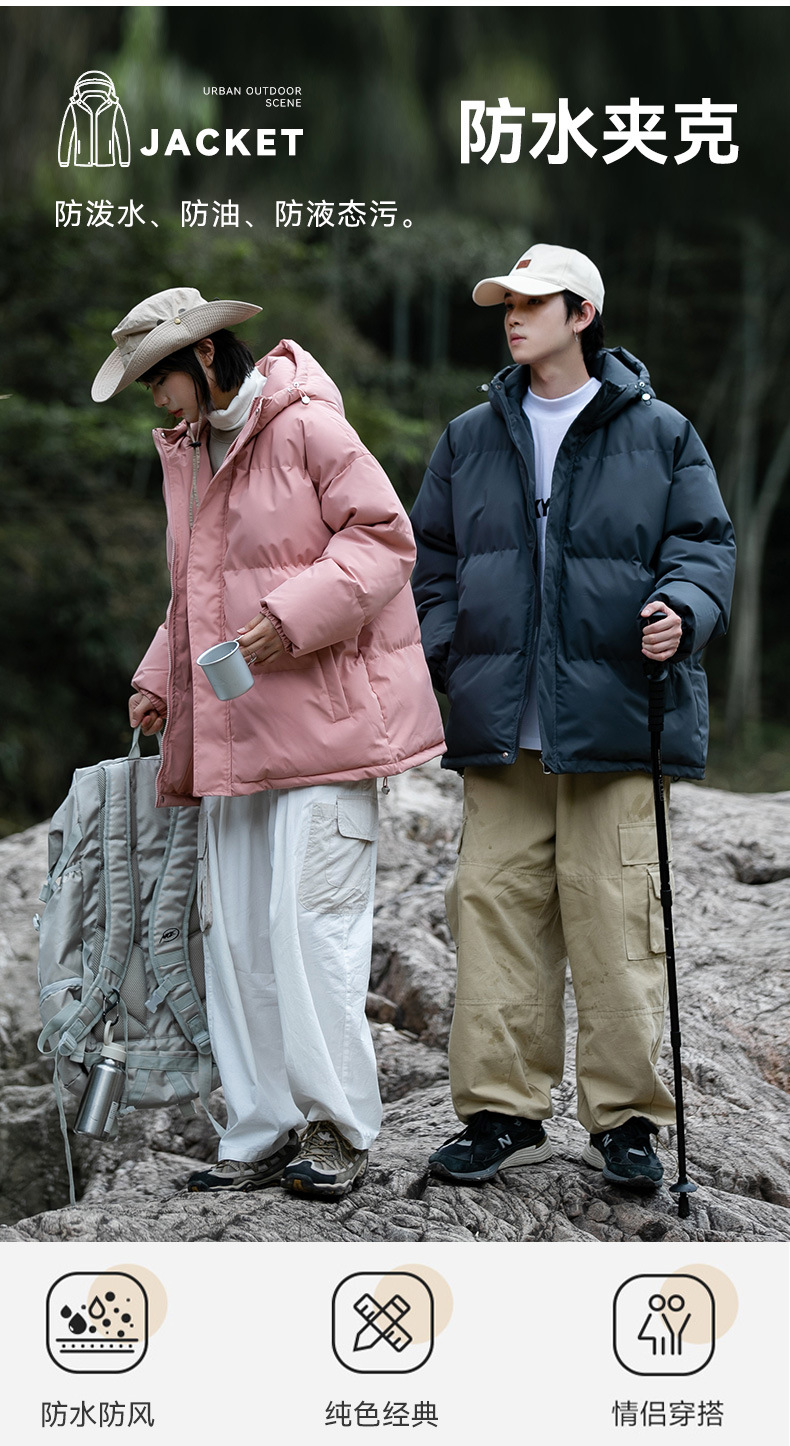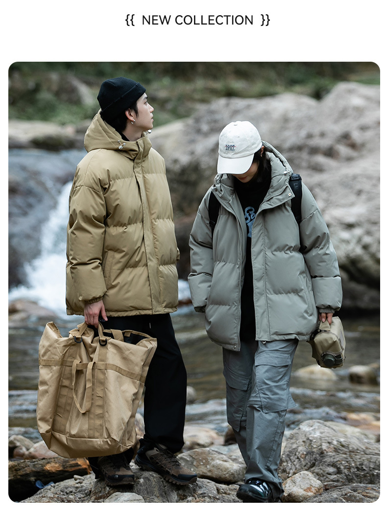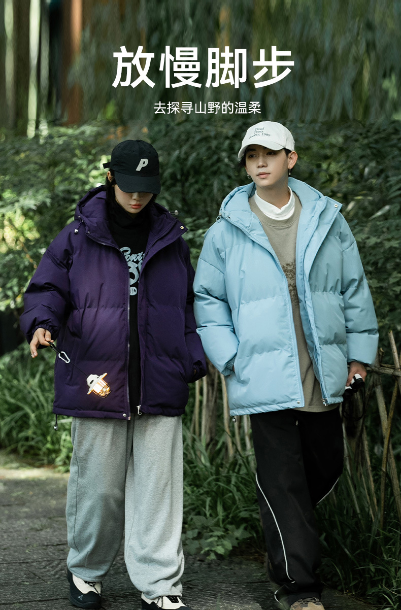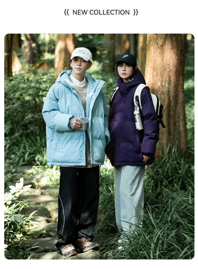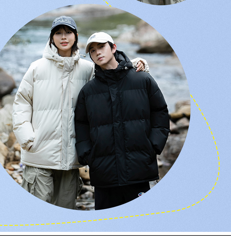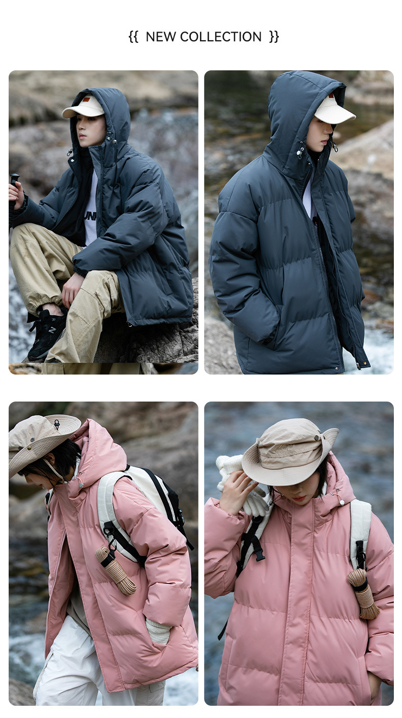 Ropa de algodón para hombre 2024 invierno nuevo estilo suelto con capucha color sólido grueso cálido grueso pareja abrigo de pan abrigo de algodón