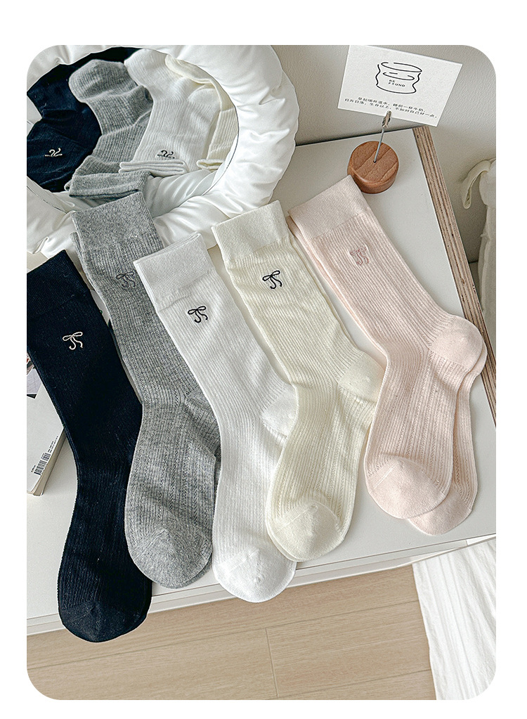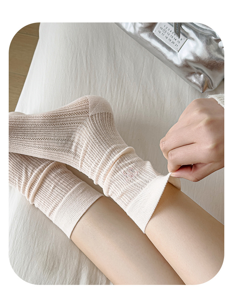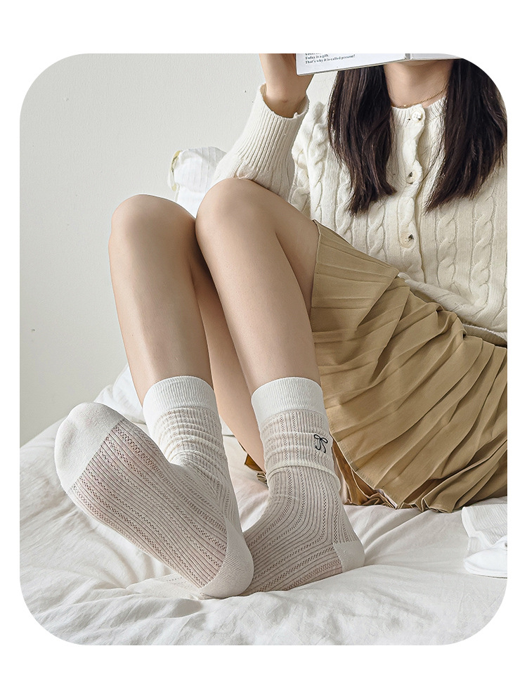YX pila calcetines mujeres verano delgado estilo ballet arco bordado calcetines de malla transpirable pantorrilla versátil calcetines
