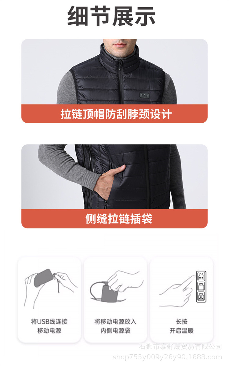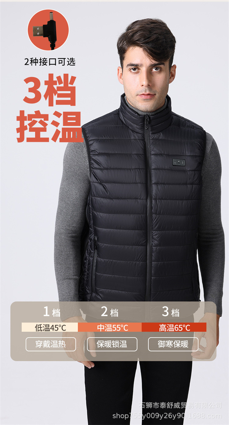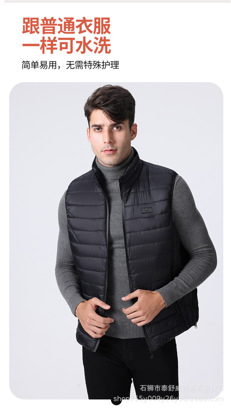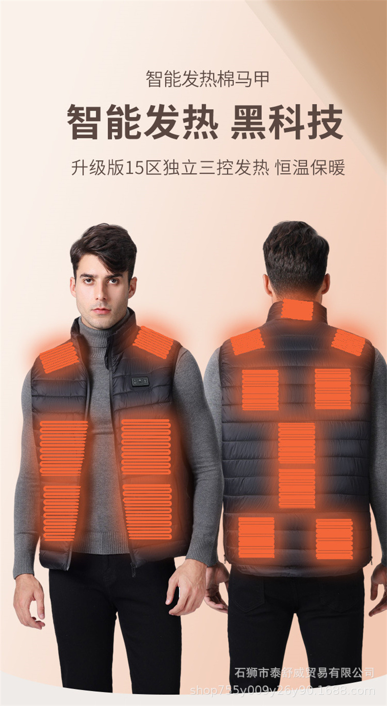 Chaleco térmico inteligente transfronterizo para hombre chaqueta calefactora suelta con cuello alto calefacción eléctrica USB temperatura constante chaleco calefactor cálido