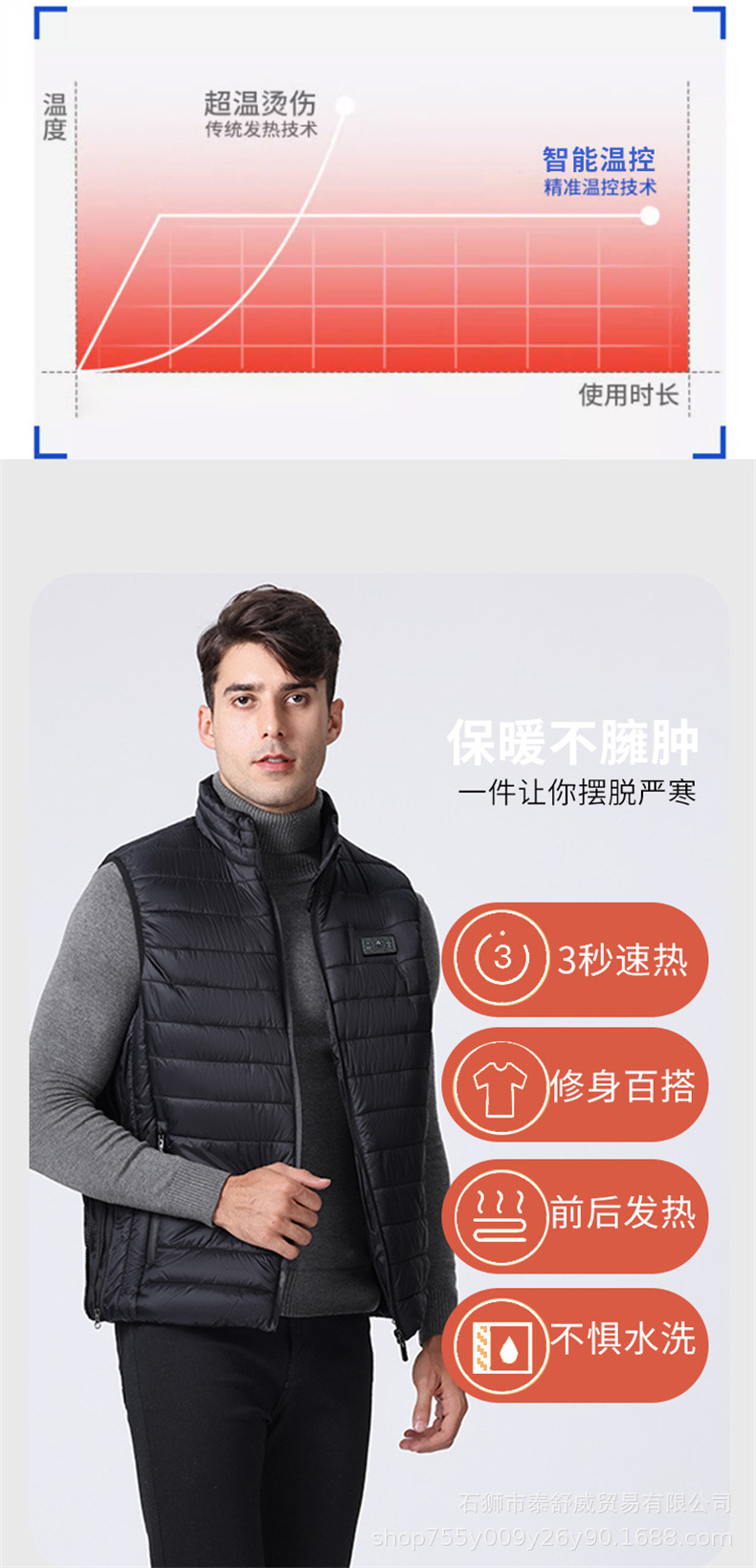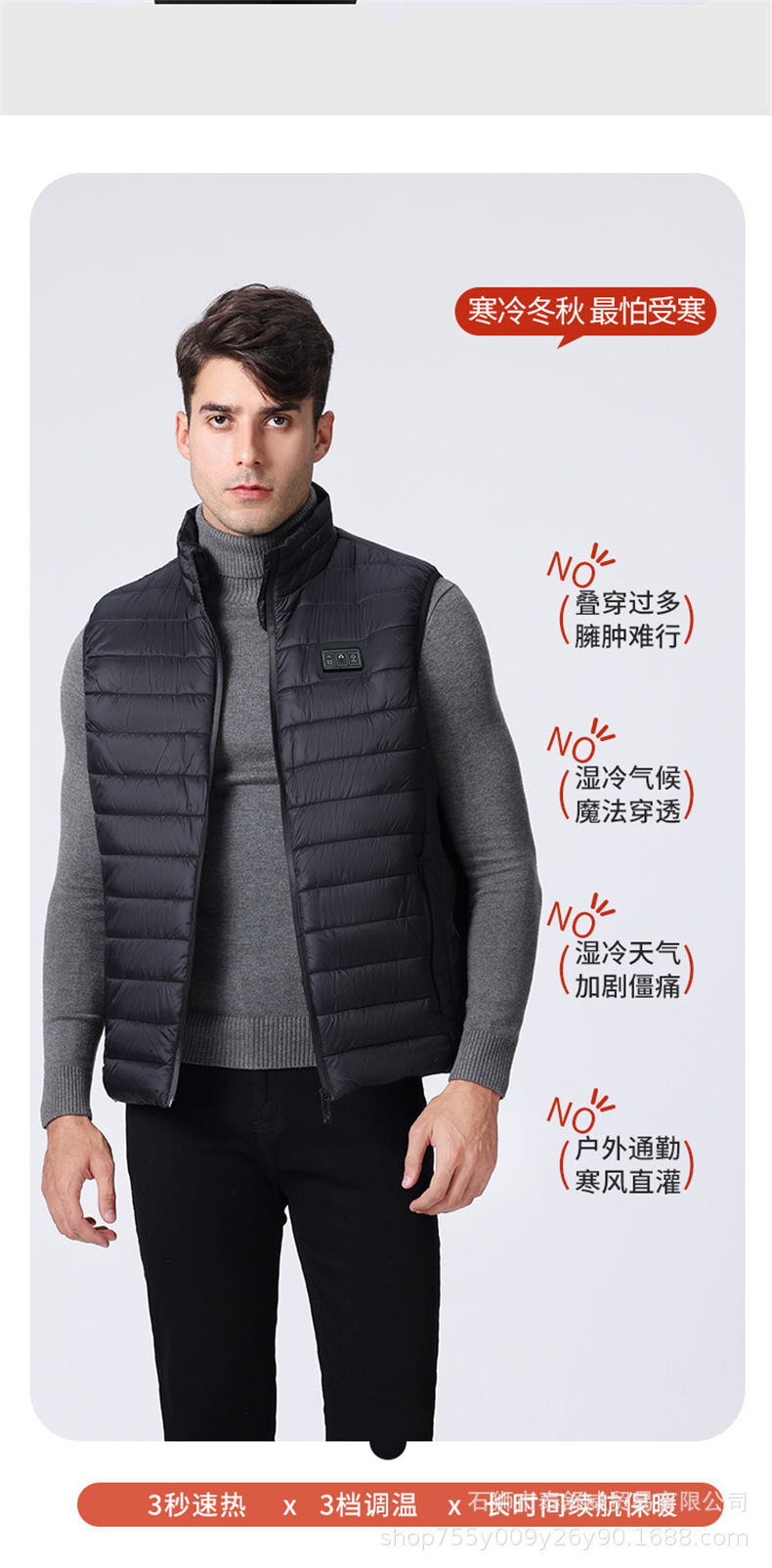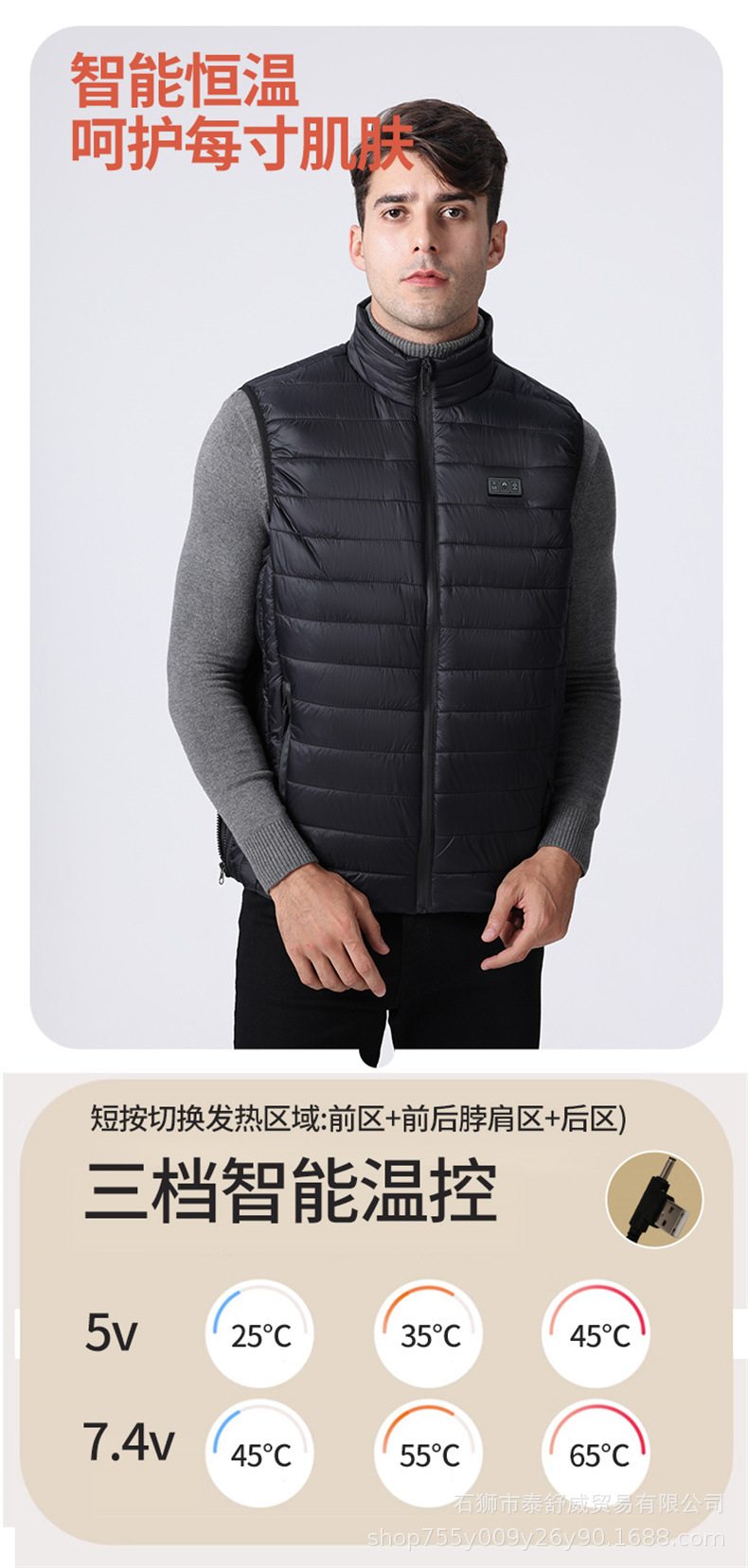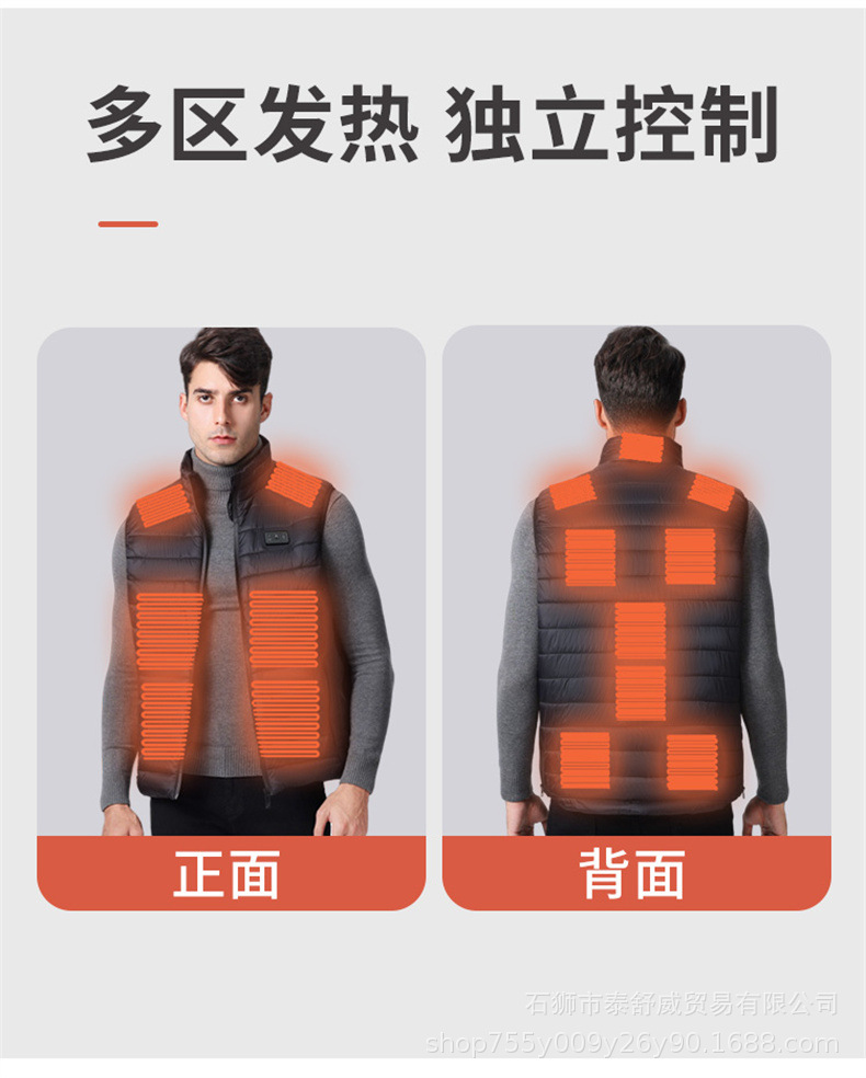 Chaleco térmico inteligente transfronterizo para hombre chaqueta calefactora suelta con cuello alto calefacción eléctrica USB temperatura constante chaleco calefactor cálido
