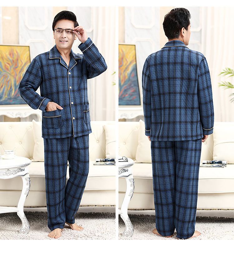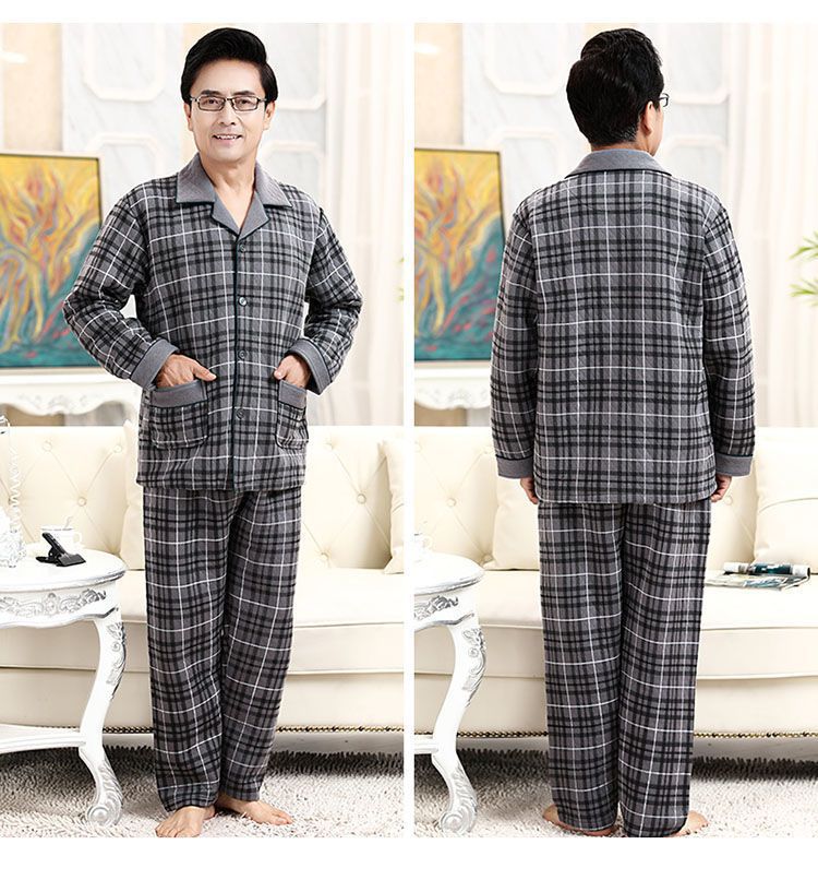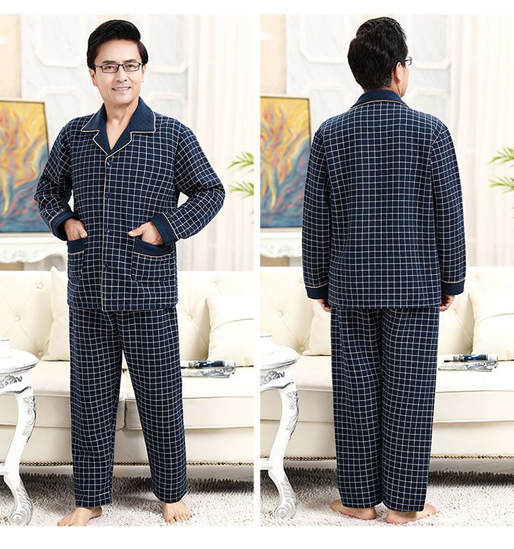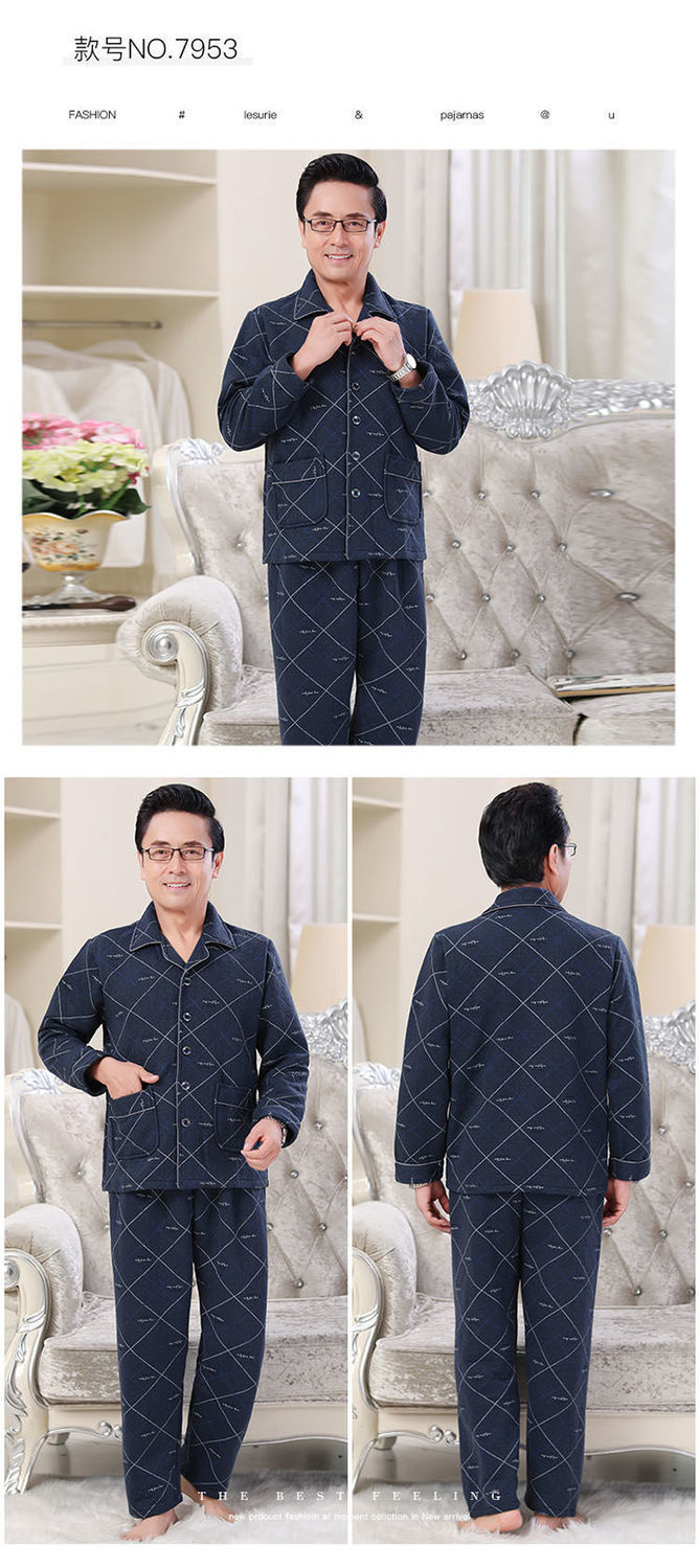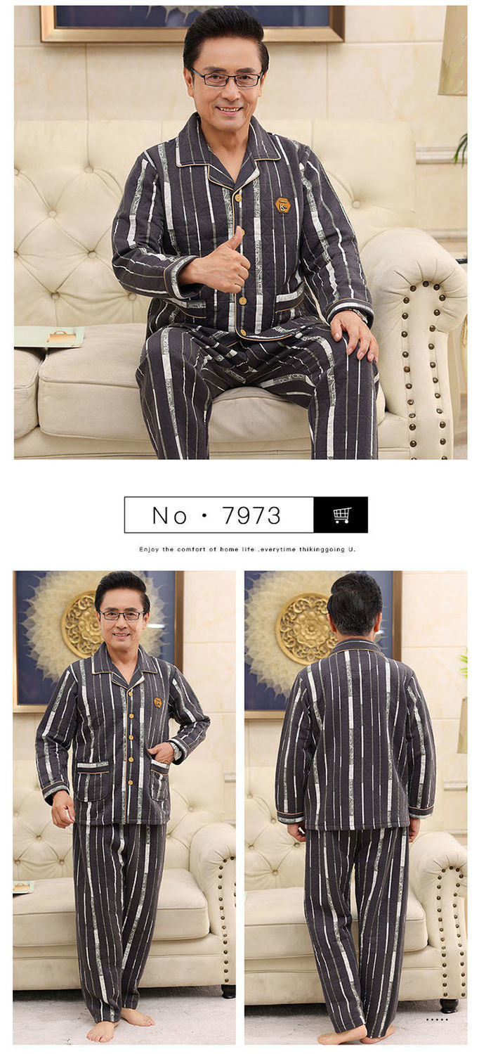 Algodón de aire pijama hombre otoño invierno de mediana edad ropa de hogar sándwich primavera y otoño engrosado conjunto de papá