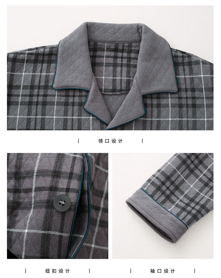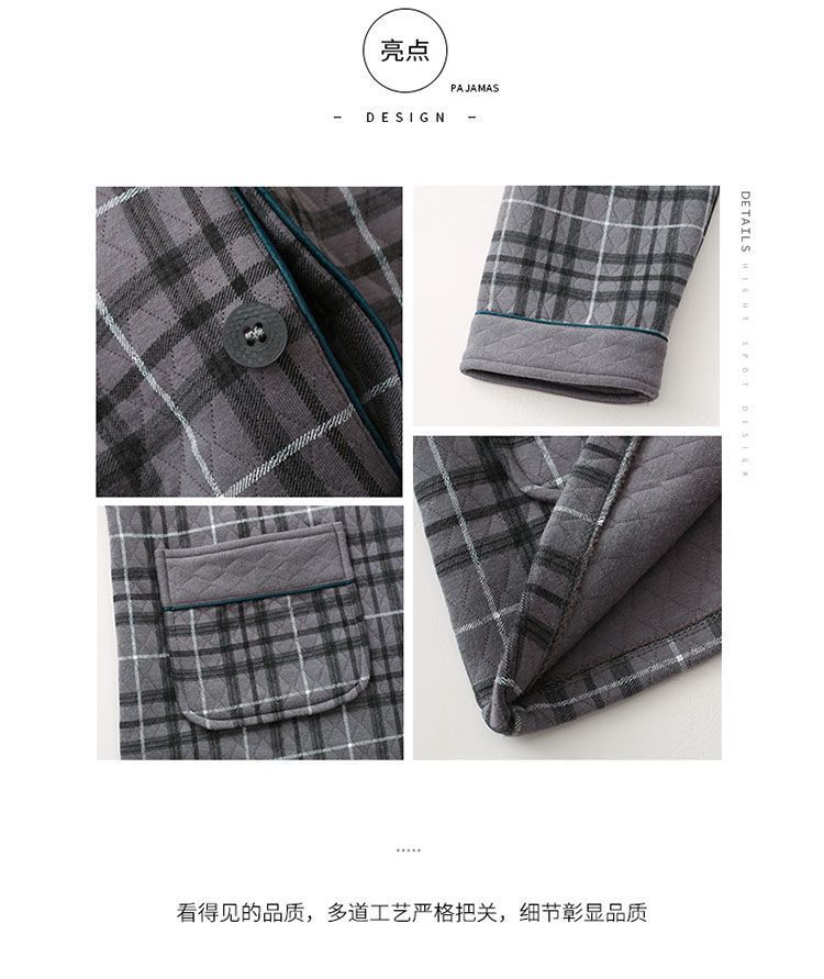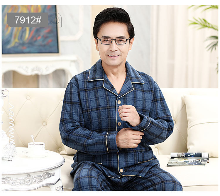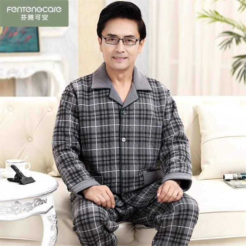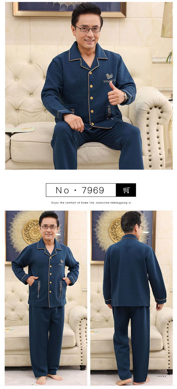 Algodón de aire pijama hombre otoño invierno de mediana edad ropa de hogar sándwich primavera y otoño engrosado conjunto de papá