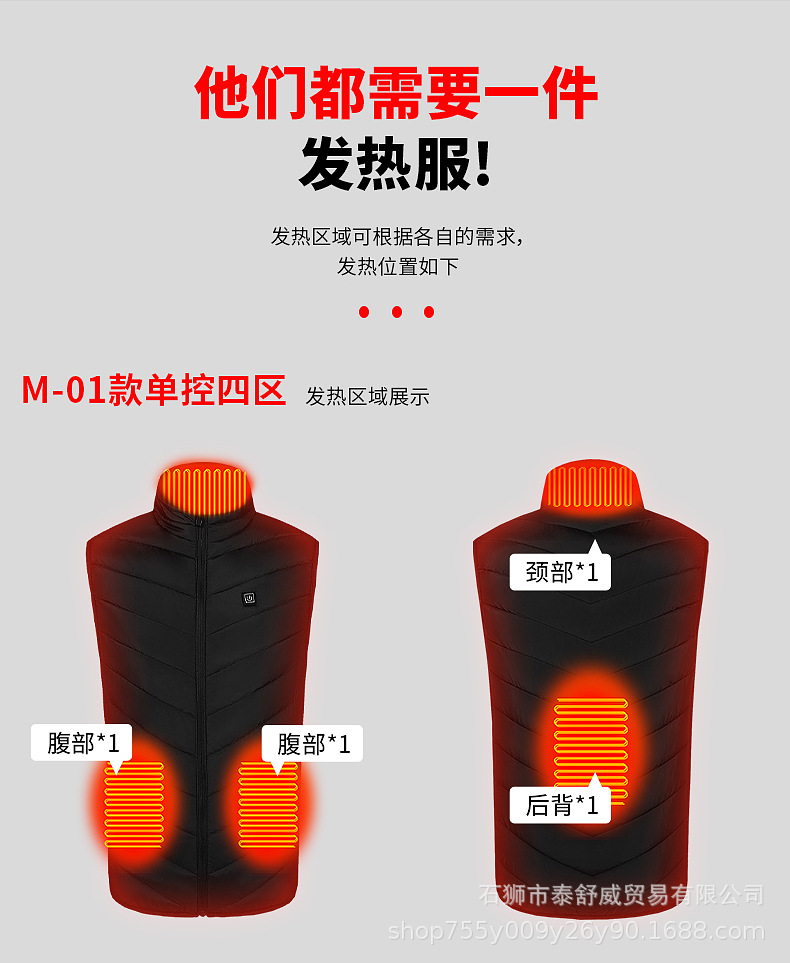 Chaleco de calefacción de cuatro zonas inteligente del fabricante Chaleco de calefacción al por mayor Chaleco de calefacción eléctrica Carga de calefacción de temperatura constante Ropa de calefacción