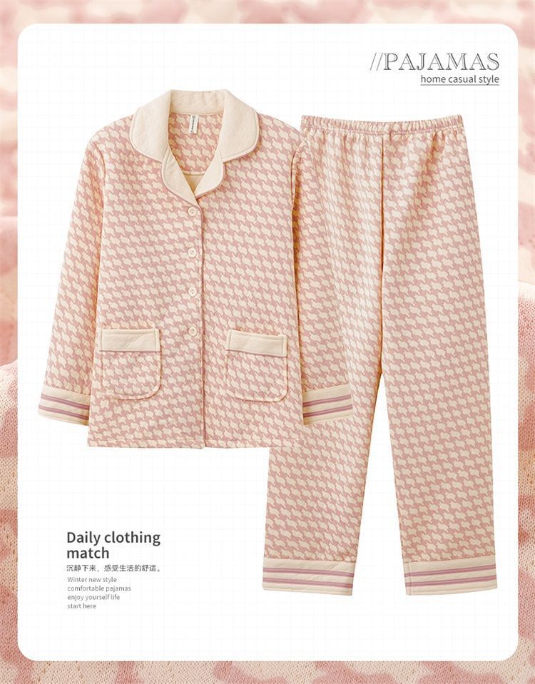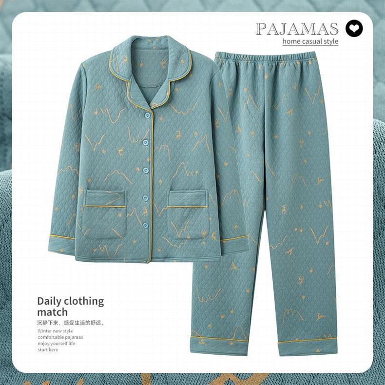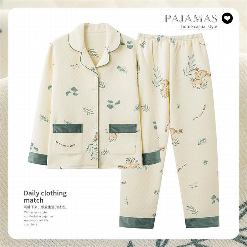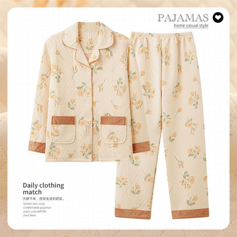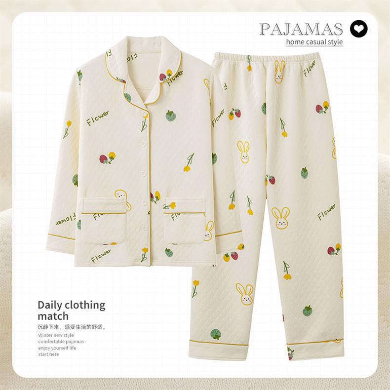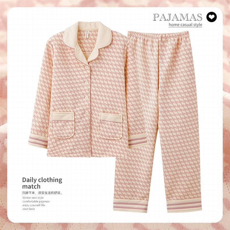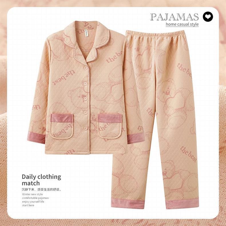 Algodón de aire de mujer engrosado otoño-invierno pijama intercalado invierno se puede usar ropa doméstica caliente de gran tamaño para mujeres