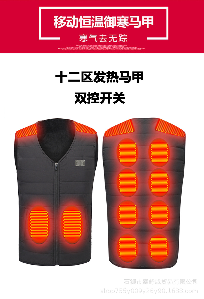 Los fabricantes venden al por mayor el nuevo chaleco de calentamiento inteligente de 12 zonas de ocio chaleco de calentamiento cálido de doble control para hombres de invierno