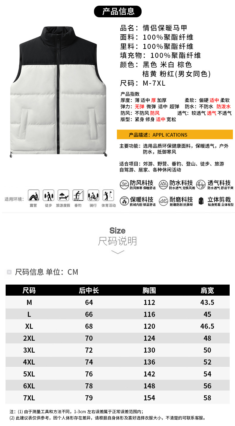 Invierno de collar sin mangas chaleco pareja de hombre y mujer caliente ocio relajado gran collar de algodón clip al por mayor