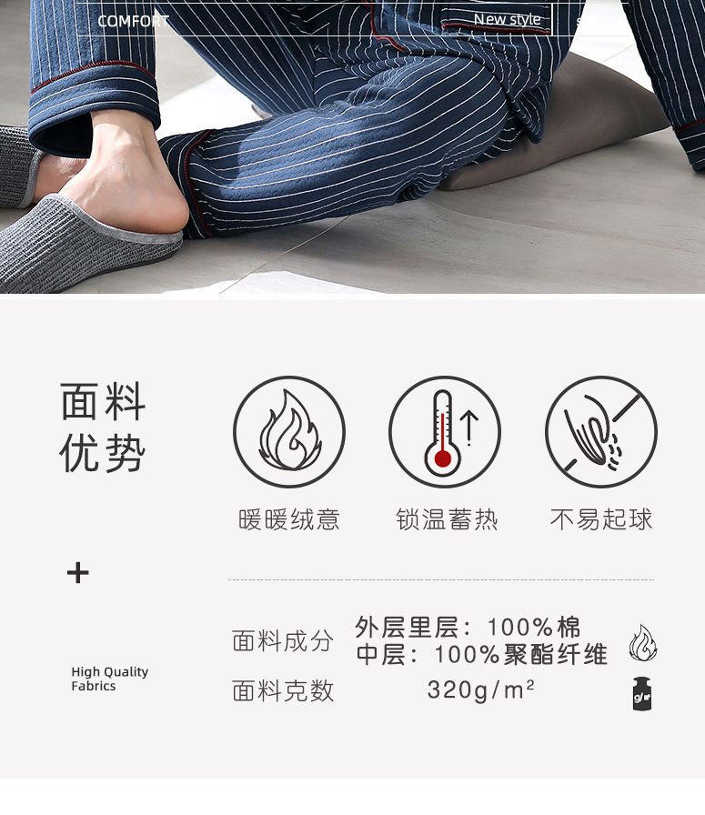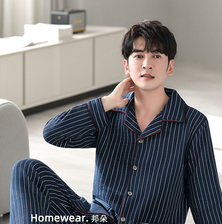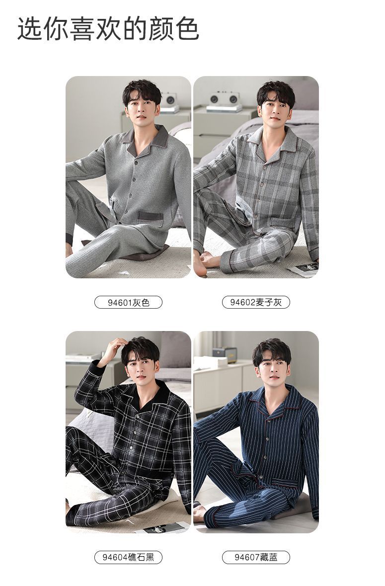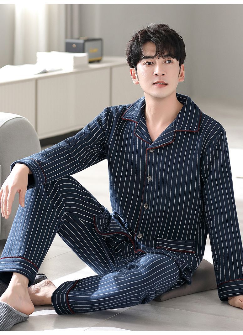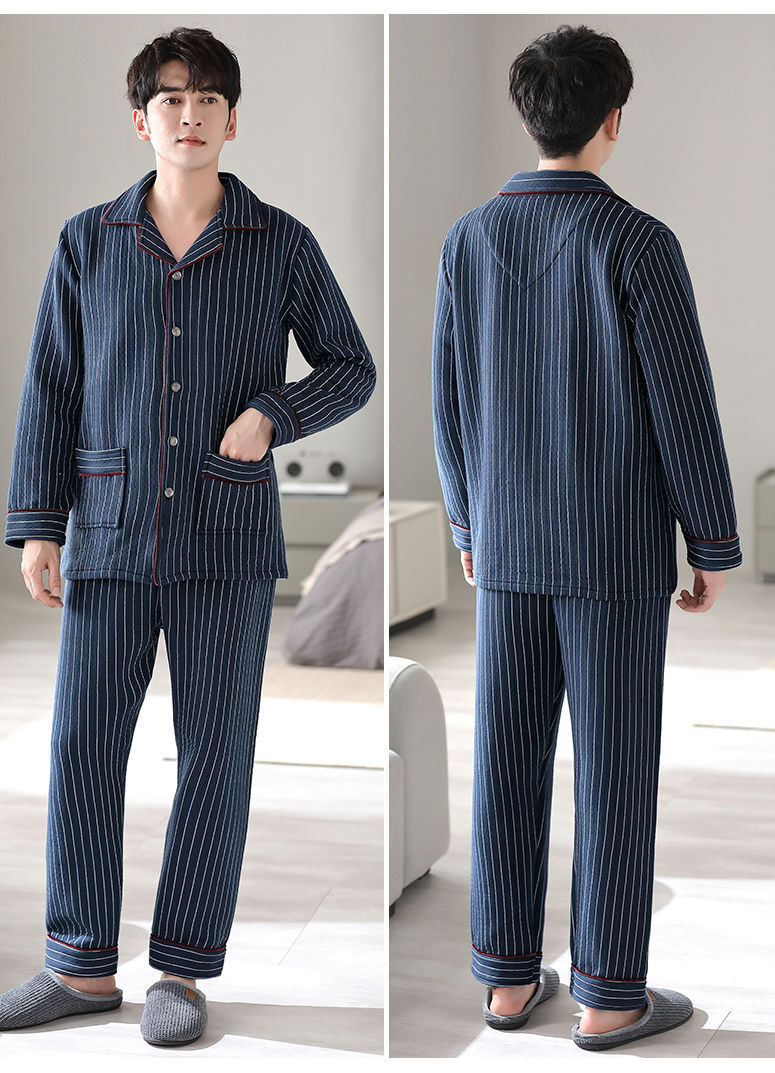 Pijamas de algodón puro para hombres de primavera y otoño engrosado de manga larga para hombres de otoño e invierno ropa de hogar de invierno para hombres acolchada fina